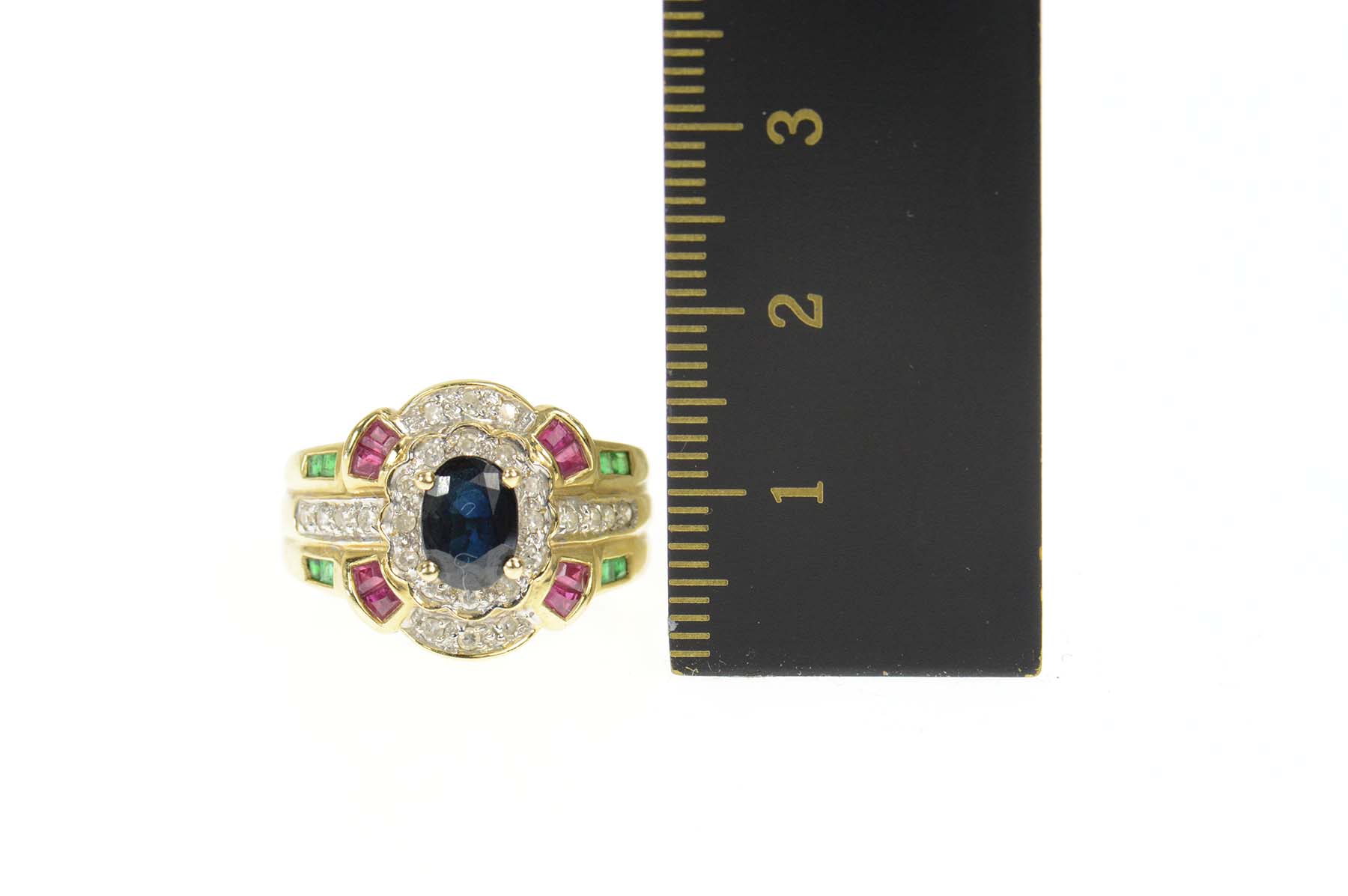14K 1.99 Ctw Sapphire Ruby Diamond Engagement Yellow Gold Ring, Size 6