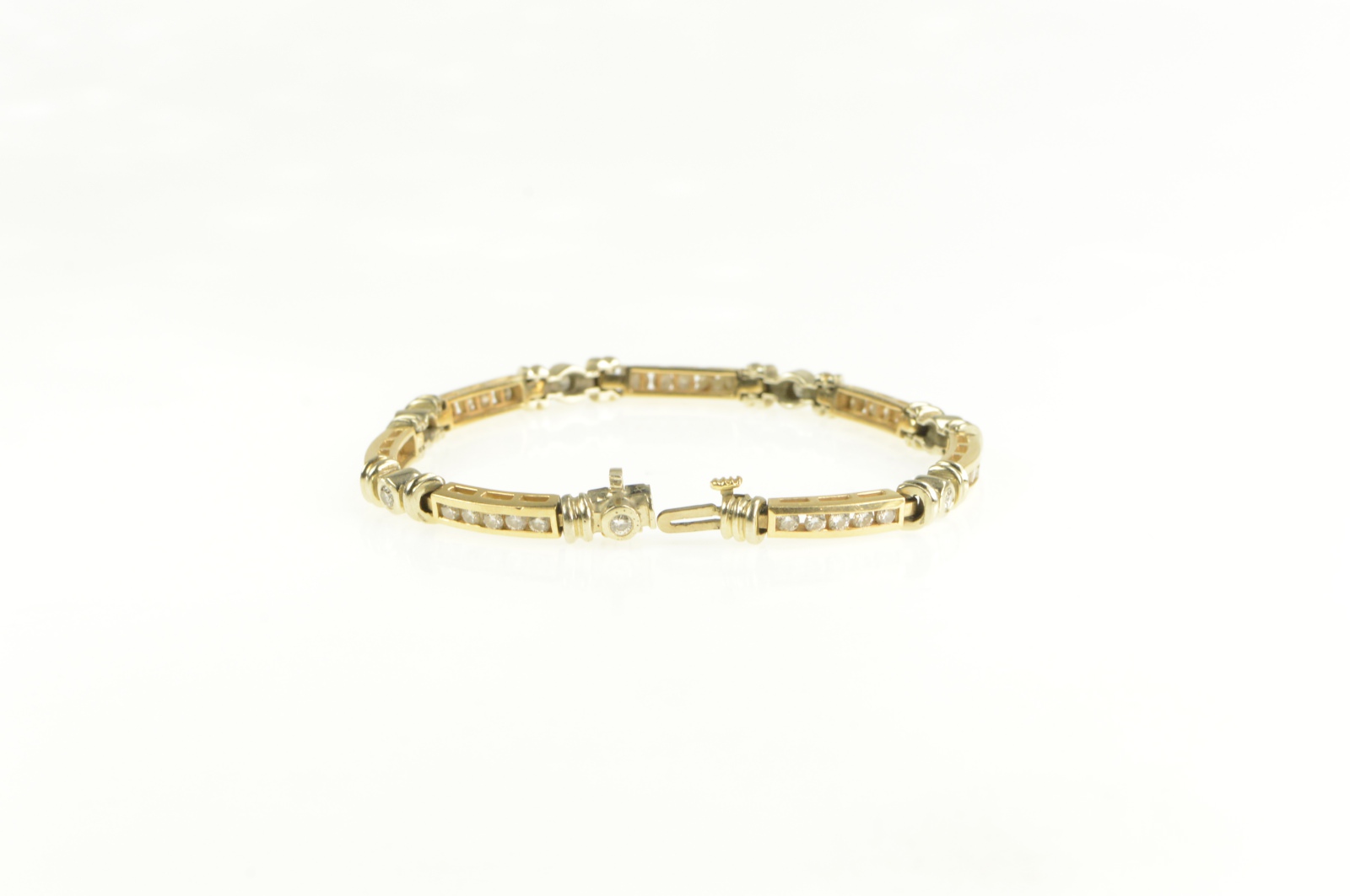 Item:  14K 2.00 Ctw Diamond Squared Classic Tennis Yellow Gold Bracelet 7"