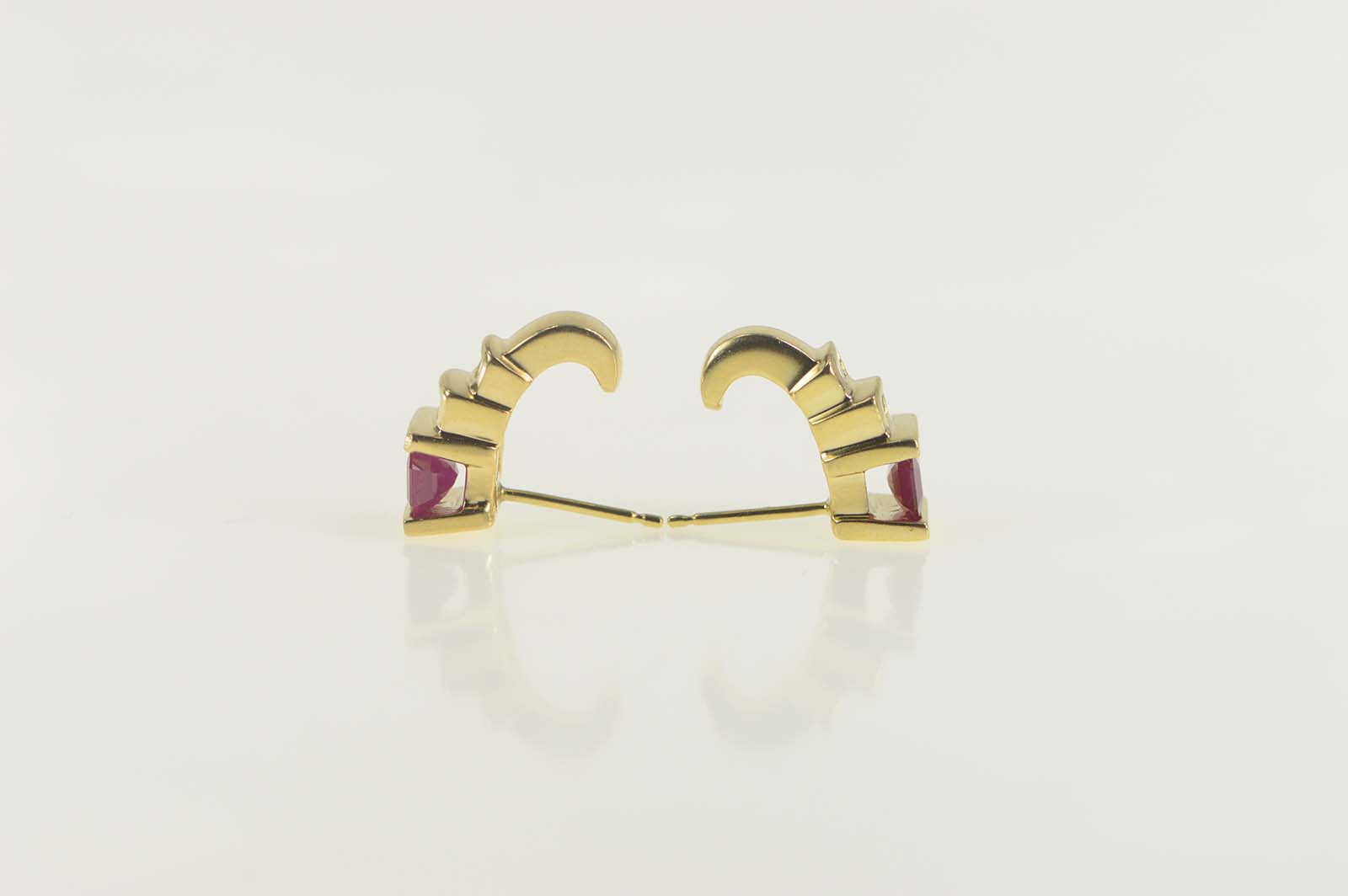 14K 2.00 Ctw Emerald Cut Ruby Diamond Stud Yellow Gold Earrings