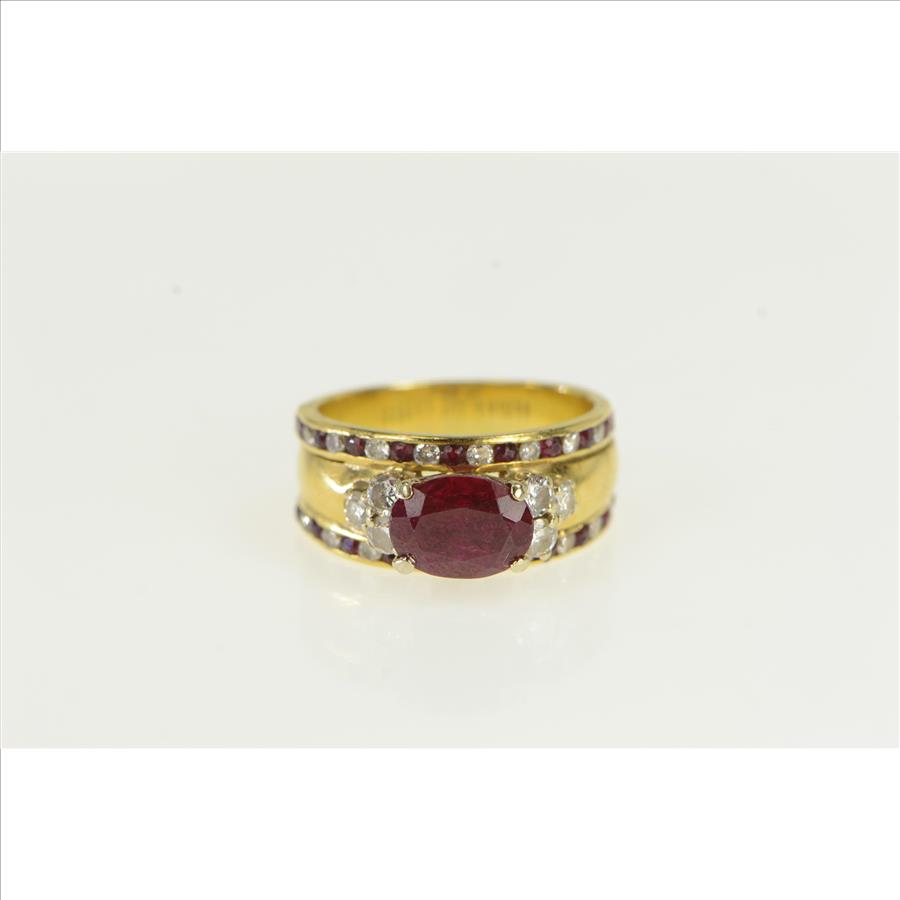 Item:  14K 2.25 Ctw Ruby Diamond Engagement Yellow Gold Ring, Size 4.5