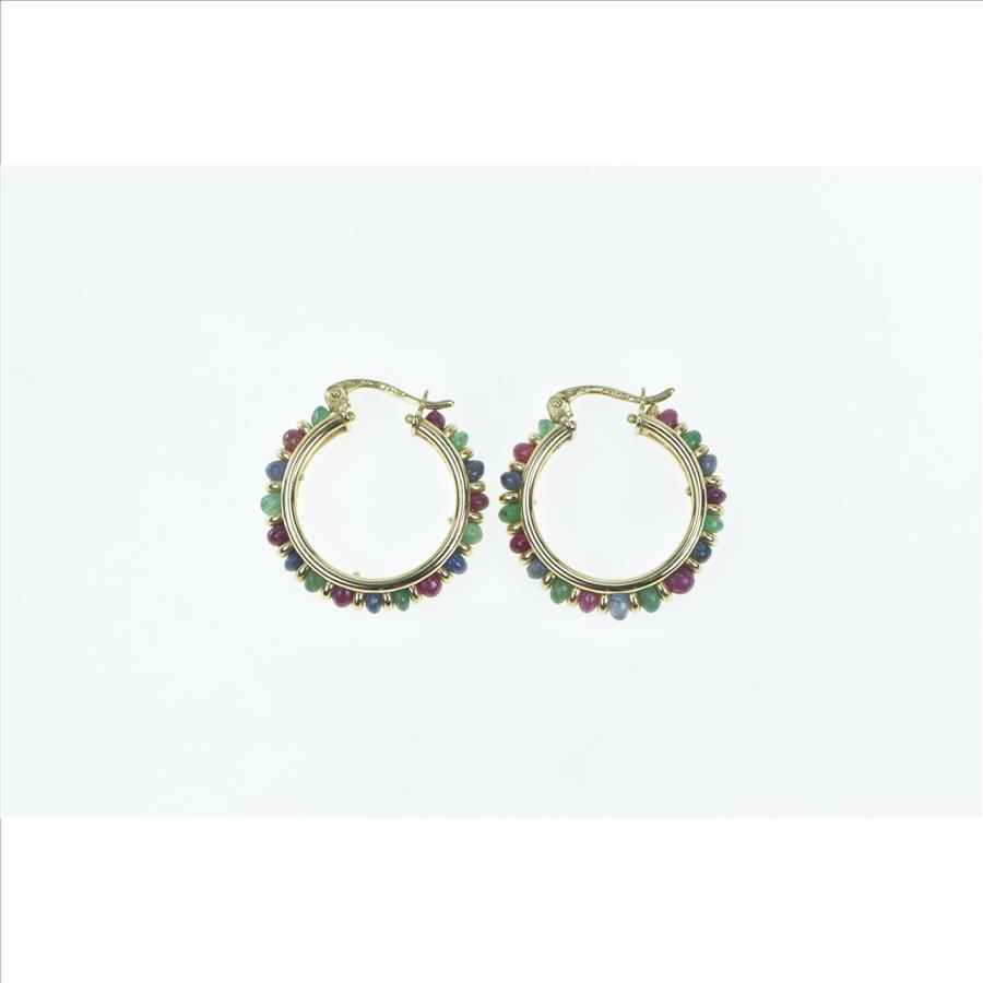 Item:  14K 22mm Ruby Emerald Sapphire Vintage Hoop Yellow Gold Earrings