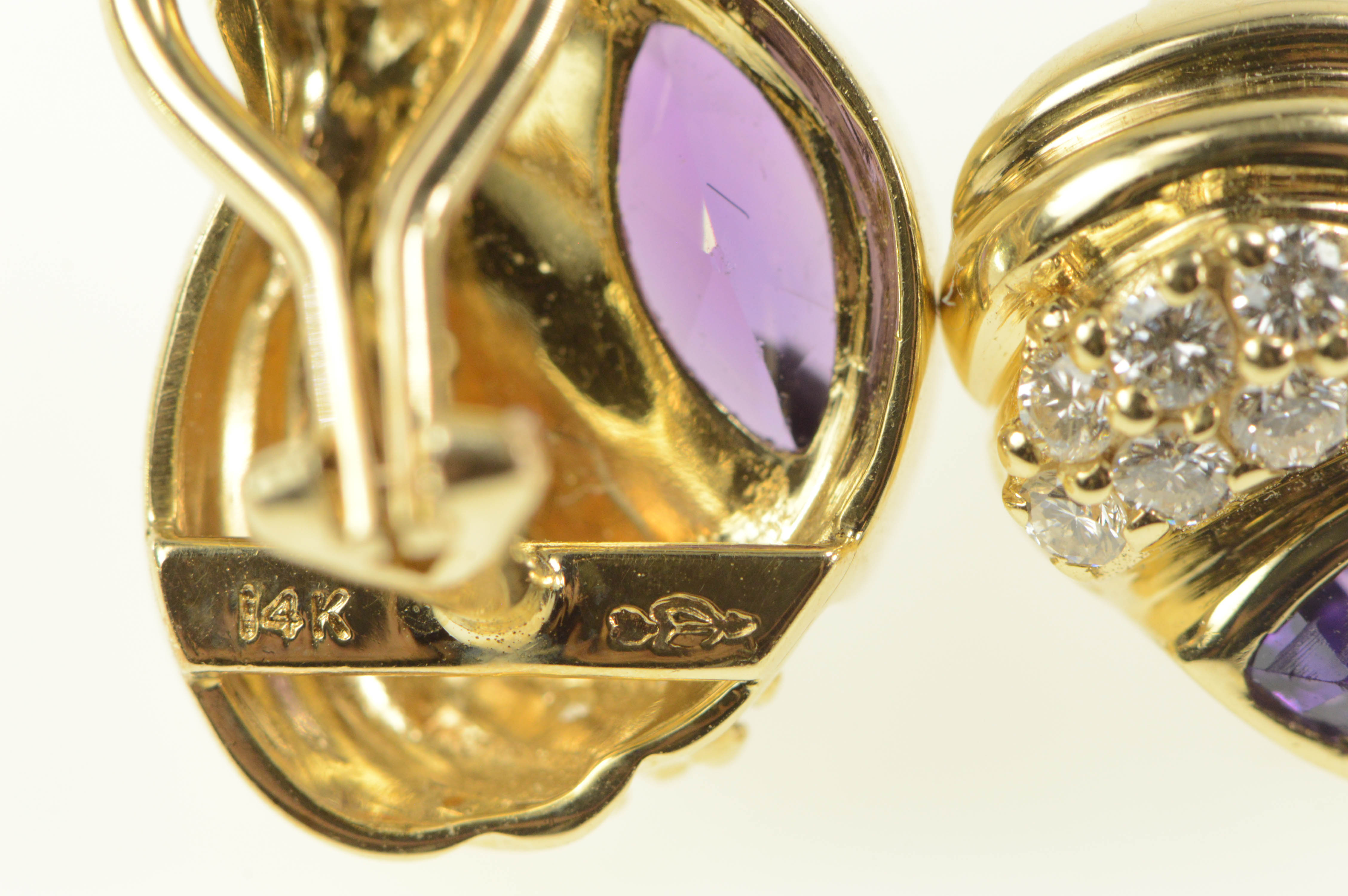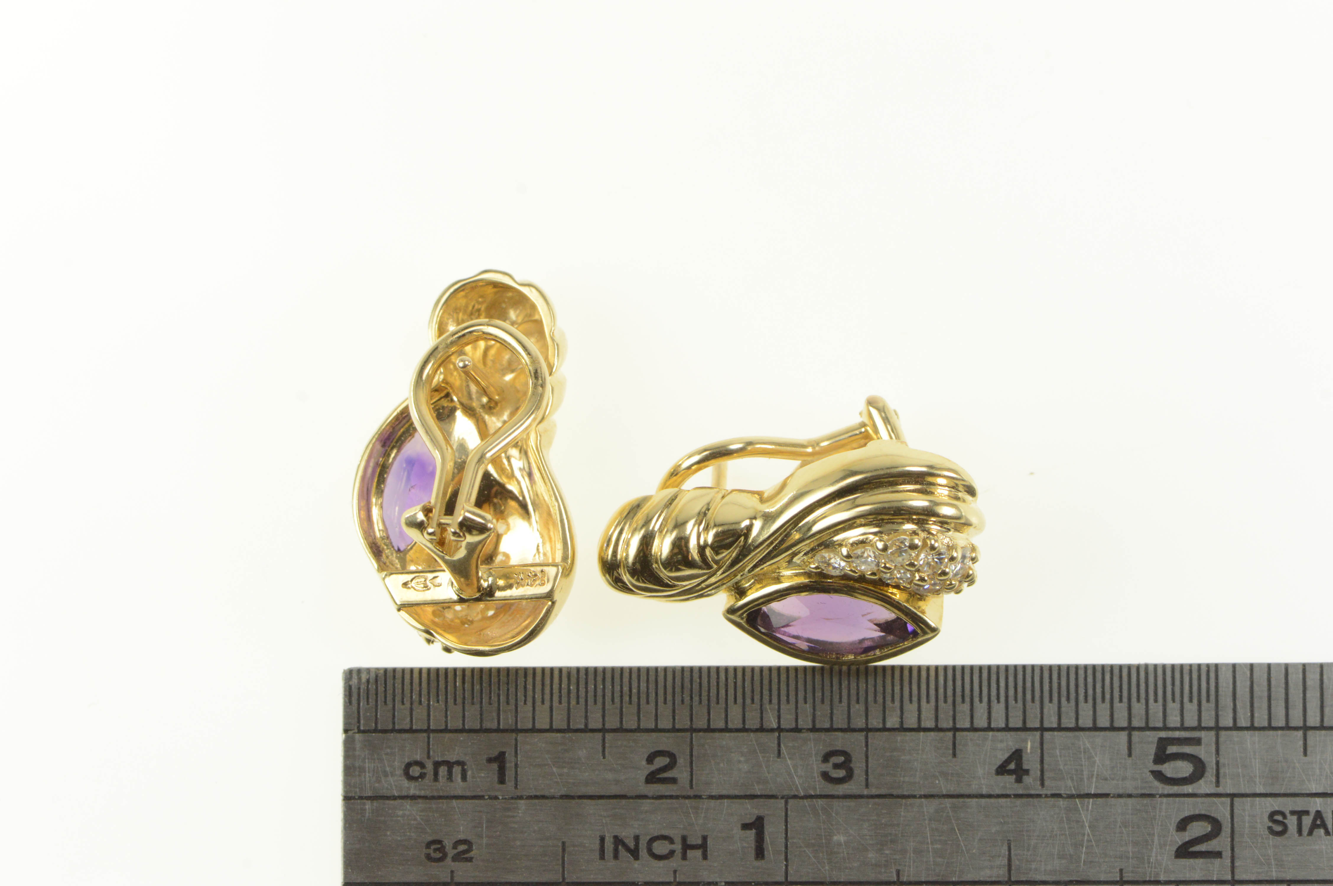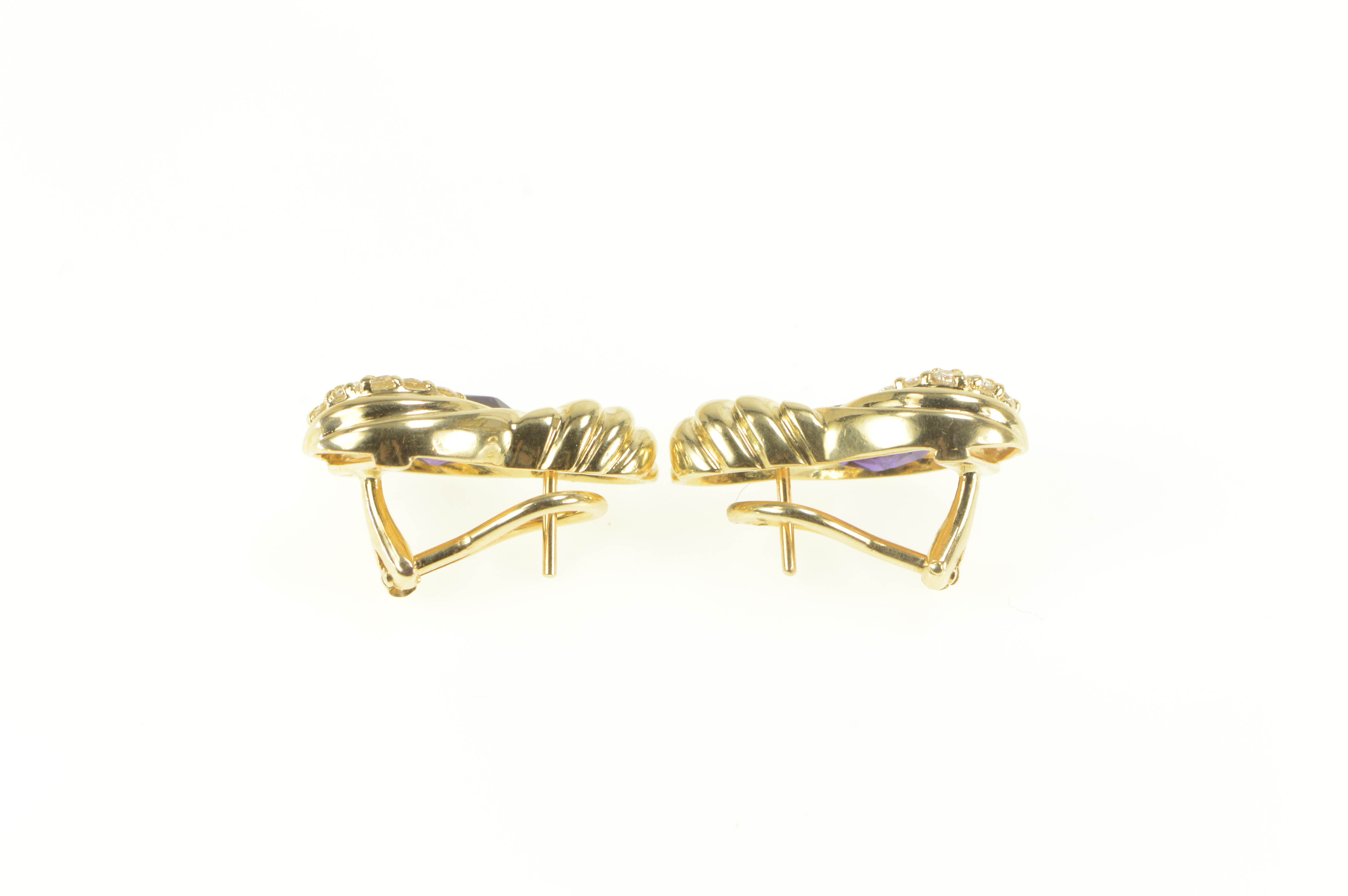 Item:  14K 2.48 Ctw Amethyst Diamond Grooved French Clip Yellow Gold Earrings