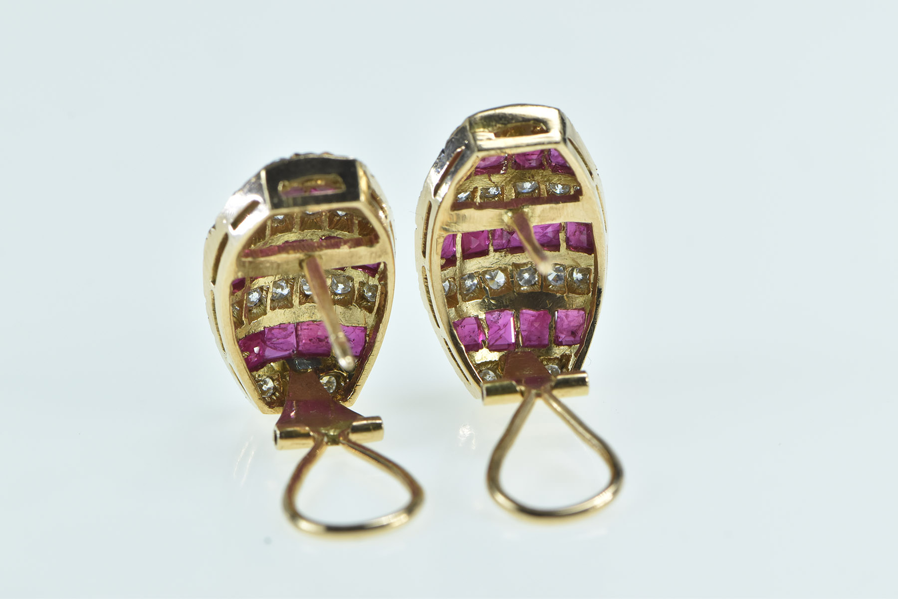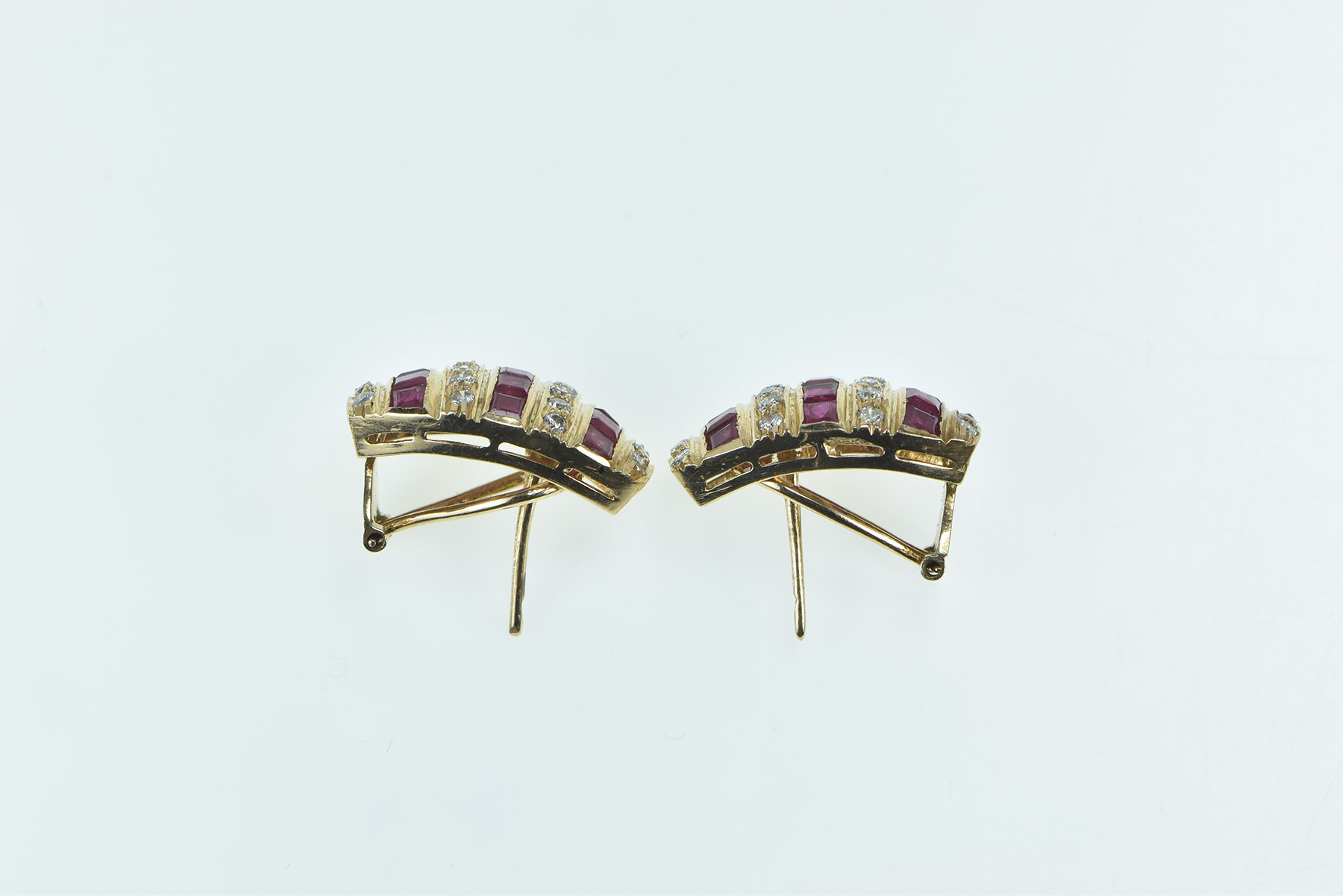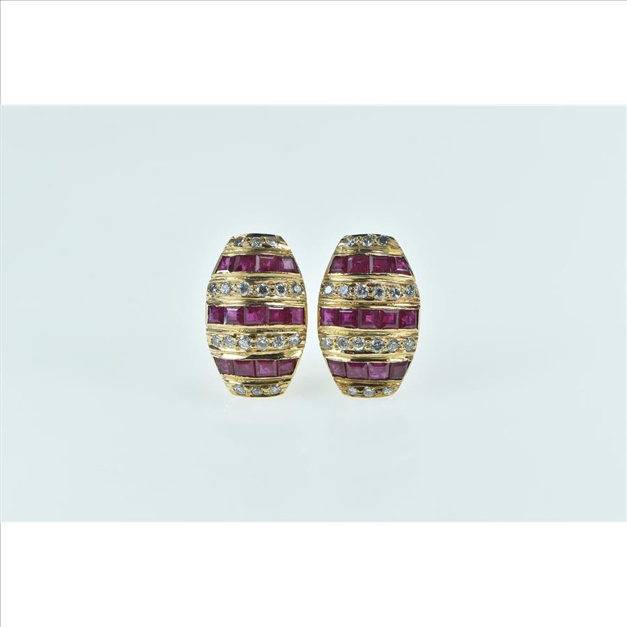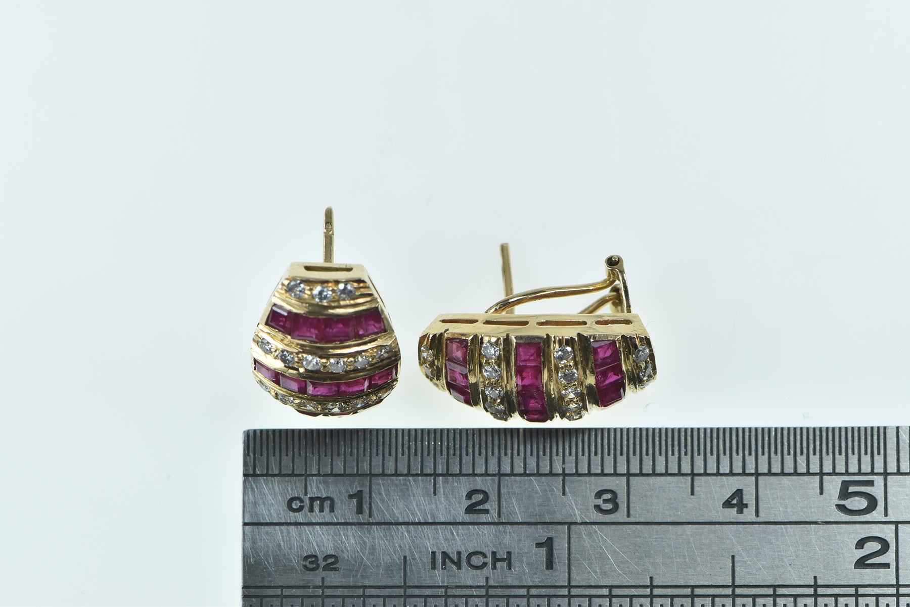 Item:  14K 2.83 Ctw Princess Syn. Ruby Diamond Striped Yellow Gold Earrings