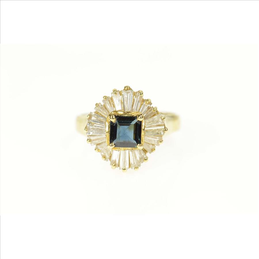 14K 2.84 Ctw Sapphire Ballerina Diamond Halo Yellow Gold Ring, Size 6.75