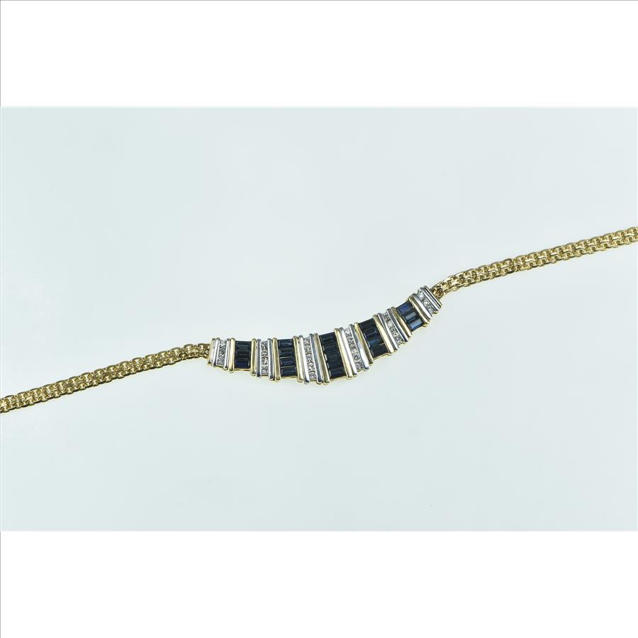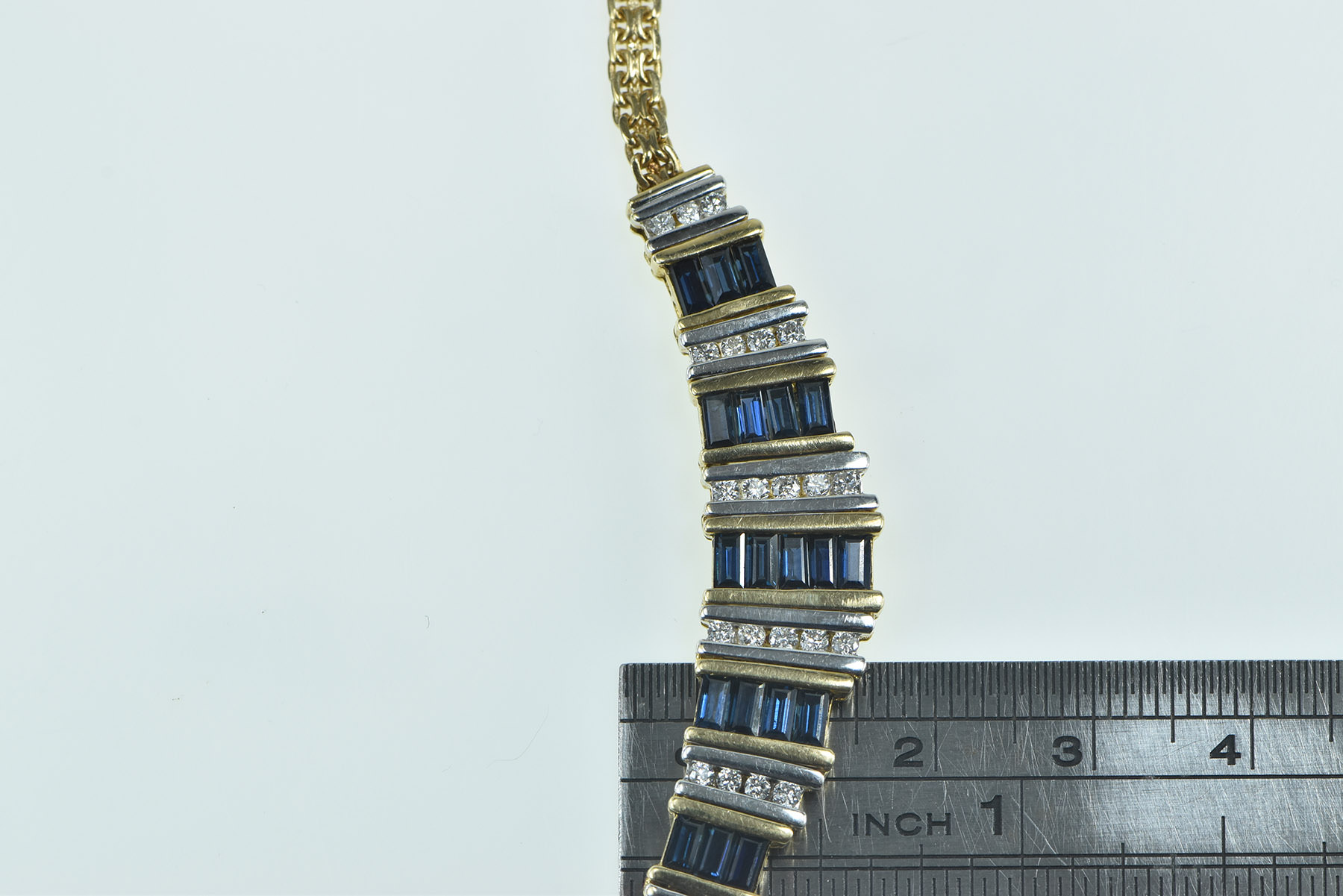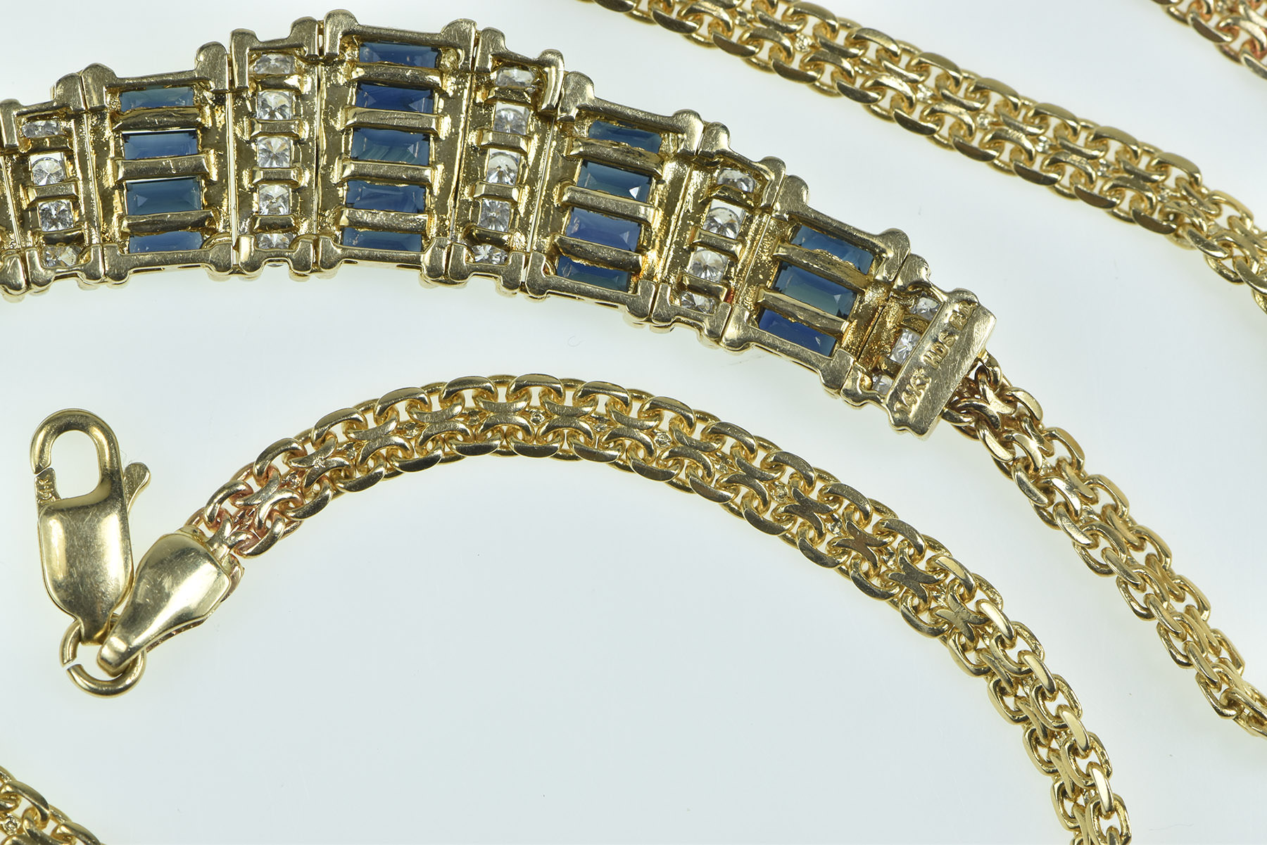 14K 3.00 Ctw Baguette Sapphire Diamond Chain Yellow Gold Necklace 17.75"