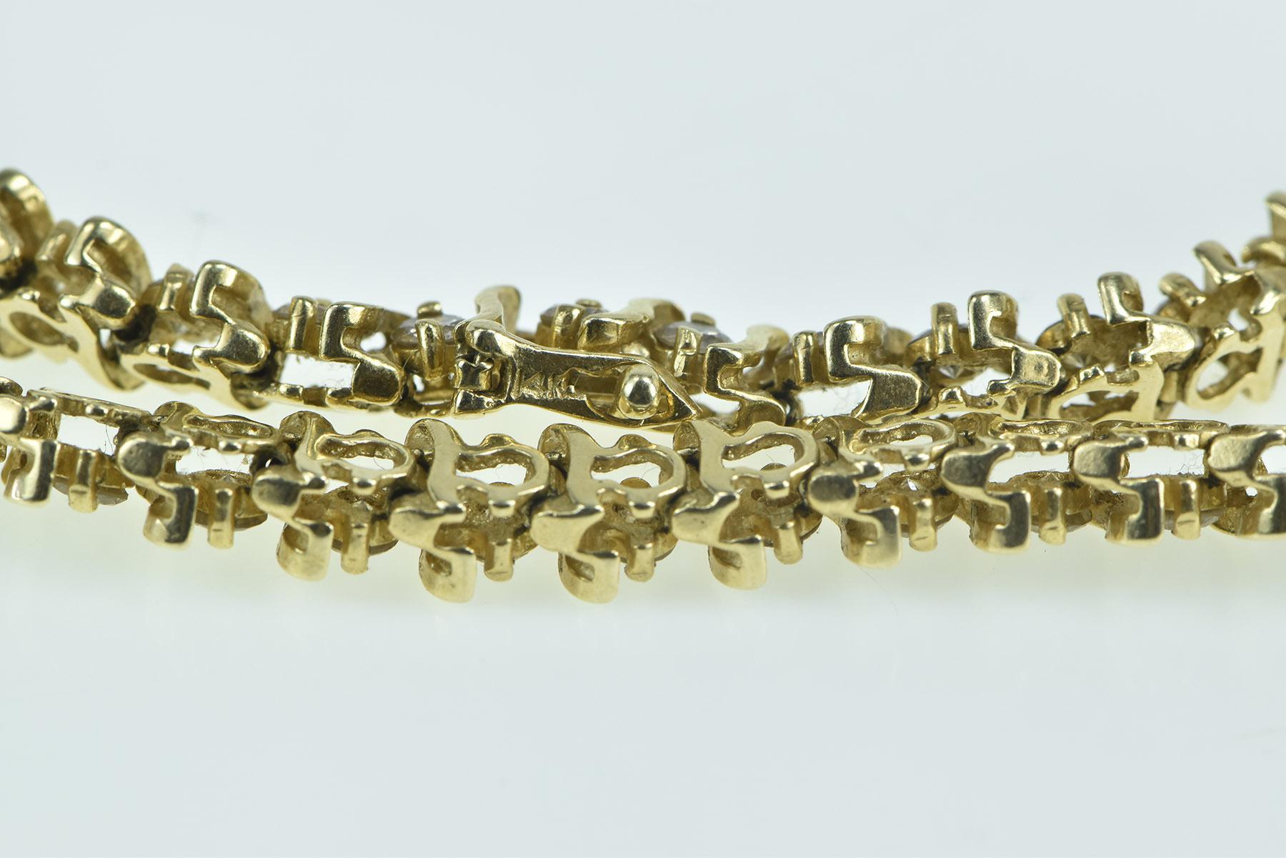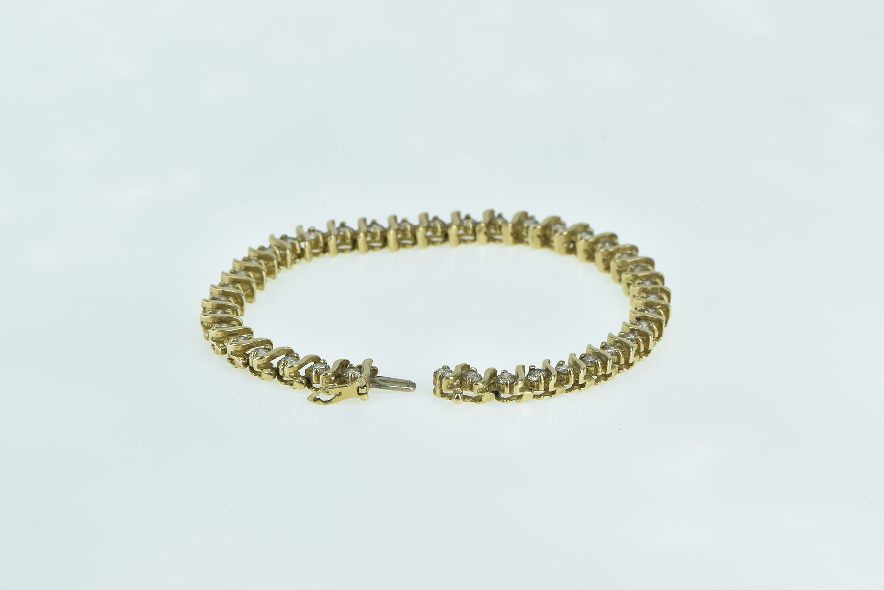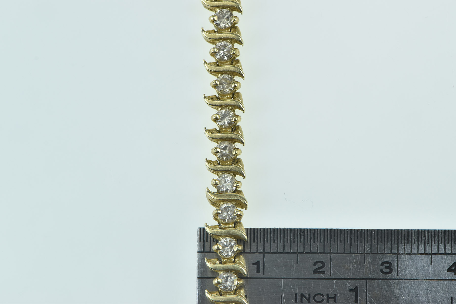 14K 3.00 Ctw Round Diamond Classic Wavy Tennis Yellow Gold Bracelet 7"
