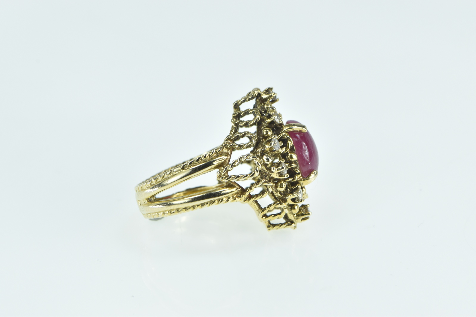 14K 3.77 Ctw Oval Ruby Diamond Statement Yellow Gold Ring, Size 6.5