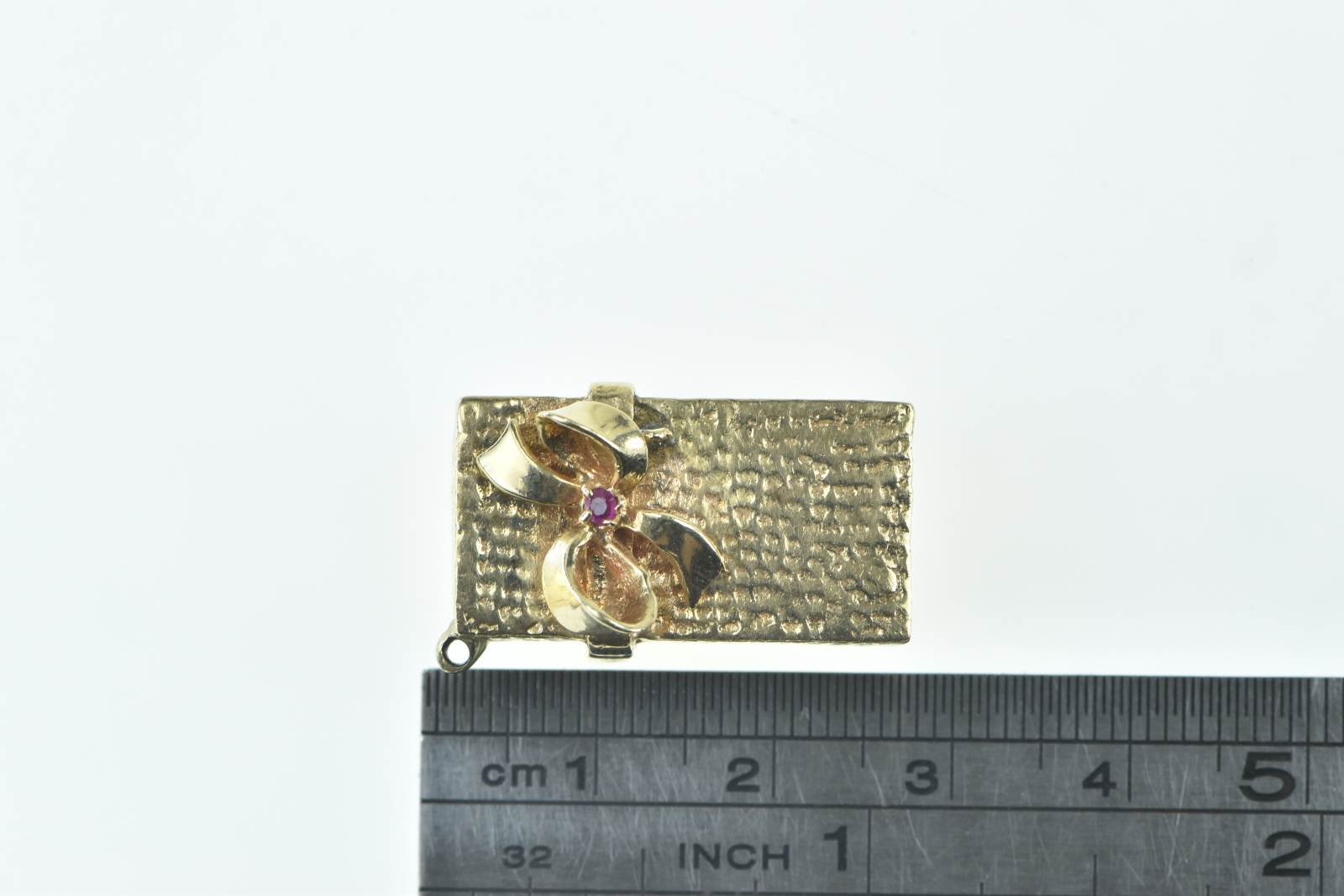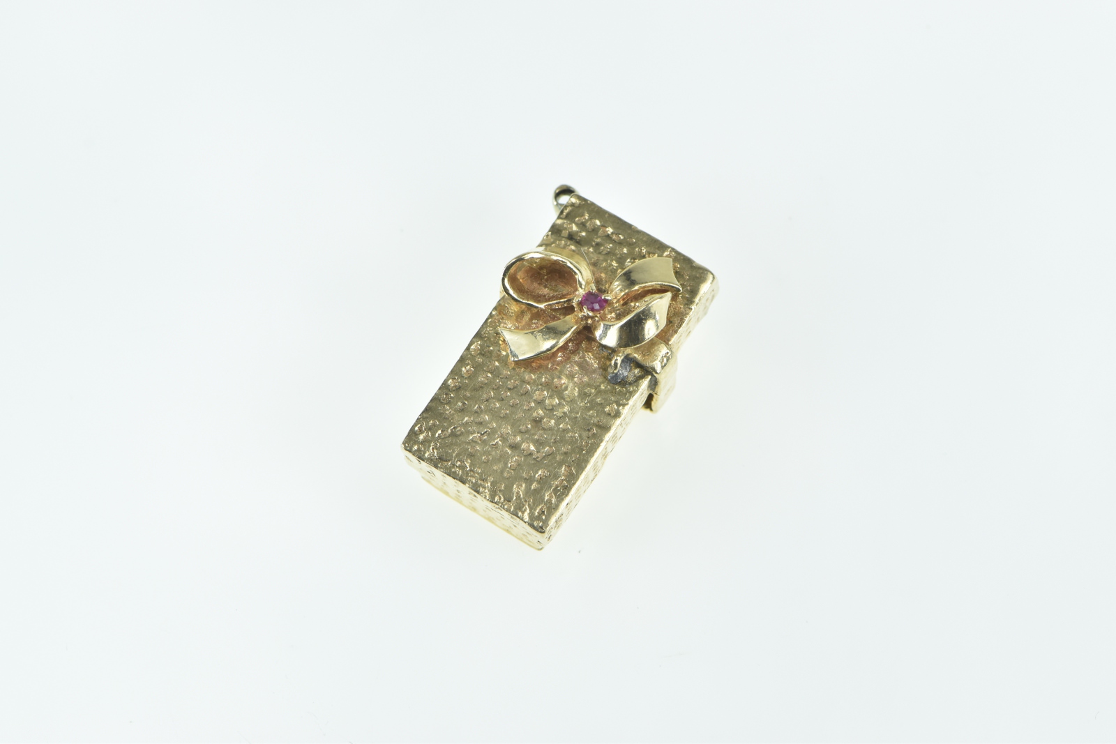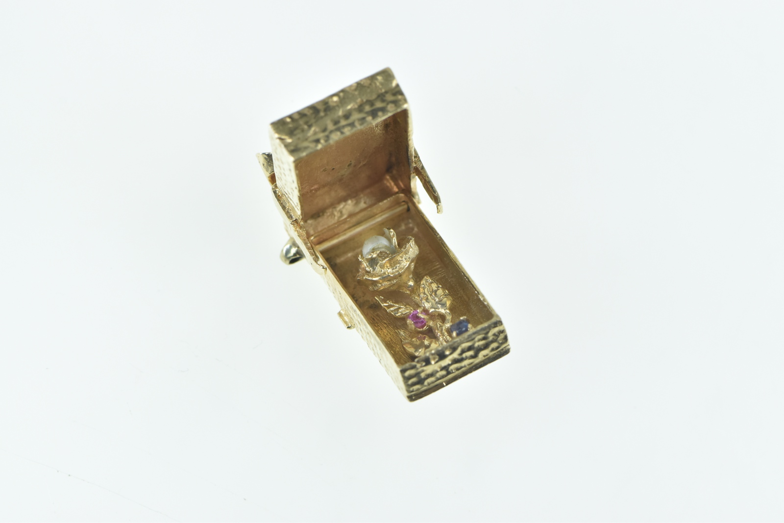 14K 3D Articulated Gift Box Rose Pearl Flower Yellow Gold Pendant