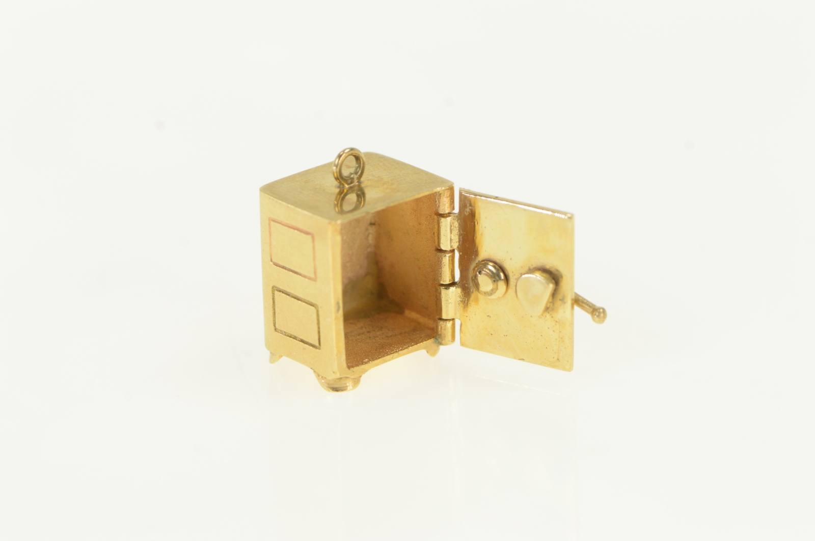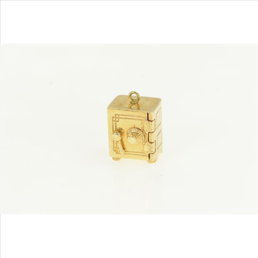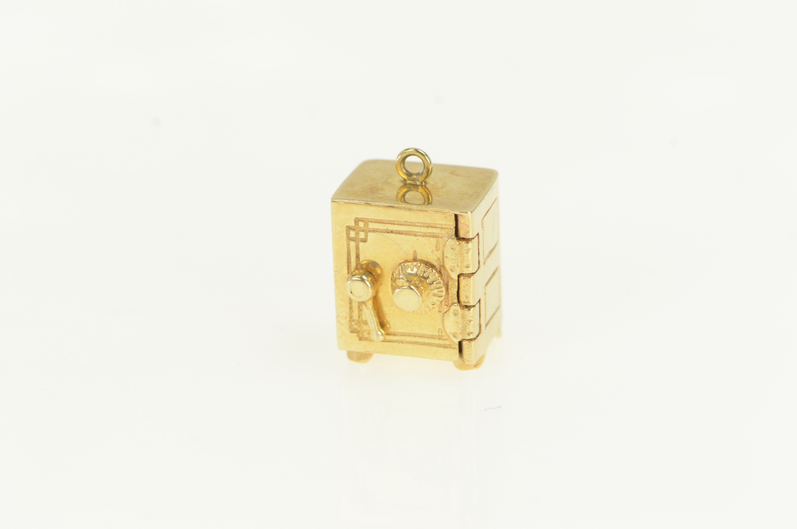 Item:  14K 3D Articulated Safe Vault Mini Bank Yellow Gold Charm/Pendant
