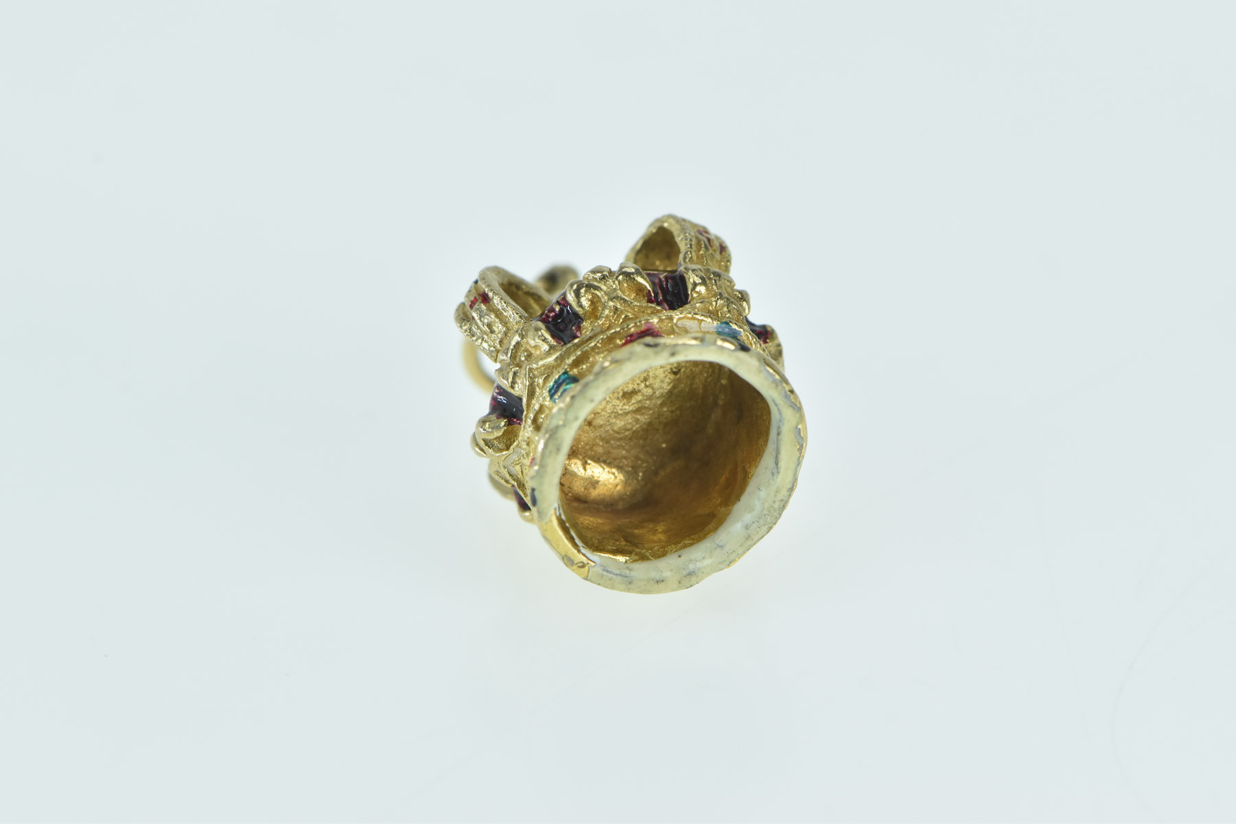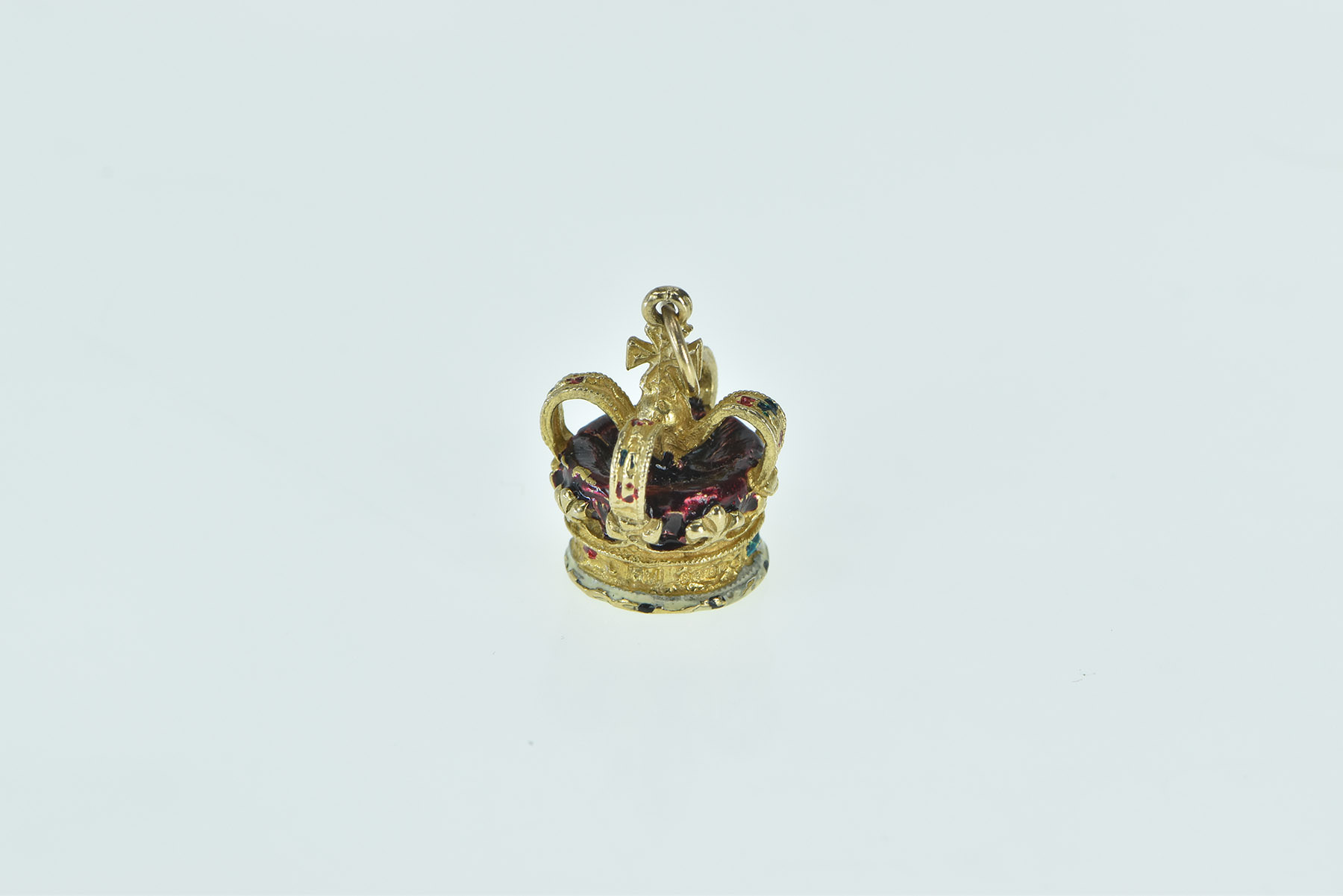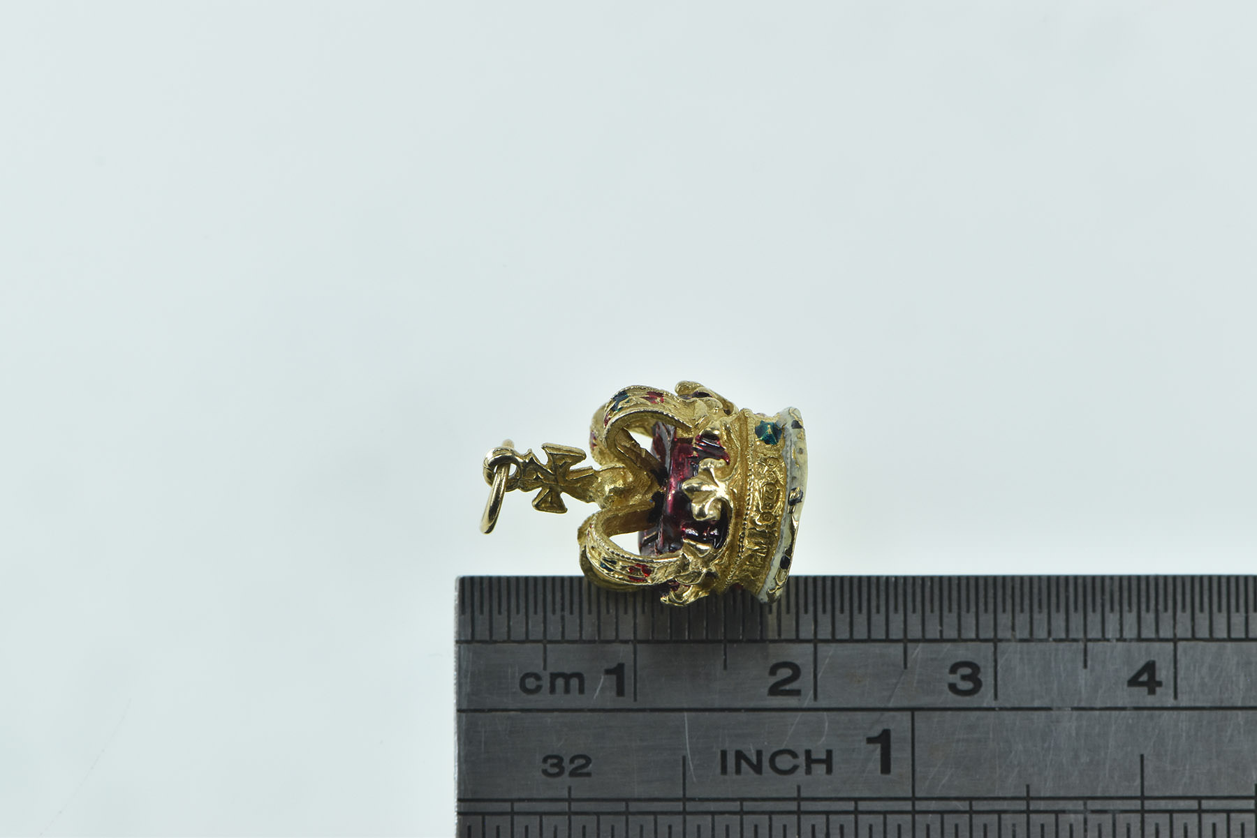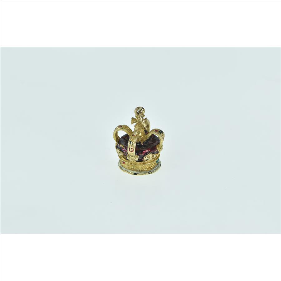 Item:  14K 3D Enamel Crown Jewels King Queen Royal Yellow Gold Charm/Pendant