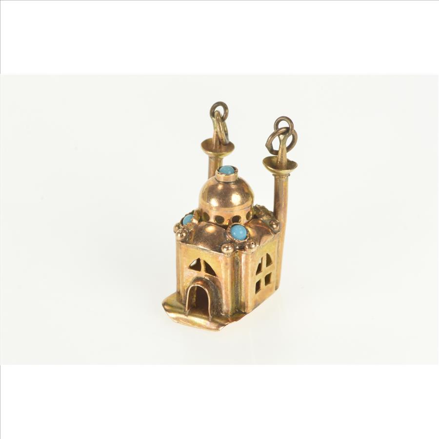 Item:  14K 3D Victorian Turquoise Taj Mahal Souvenir Yellow Gold Charm/Pendant
