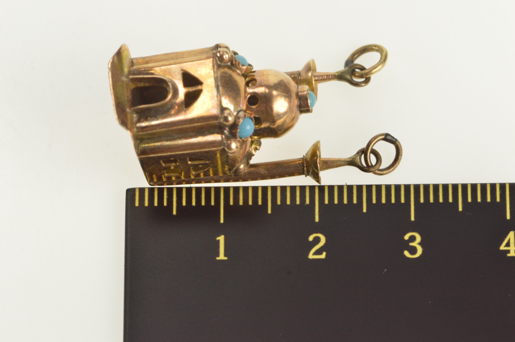14K 3D Victorian Turquoise Taj Mahal Souvenir Yellow Gold Charm/Pendant