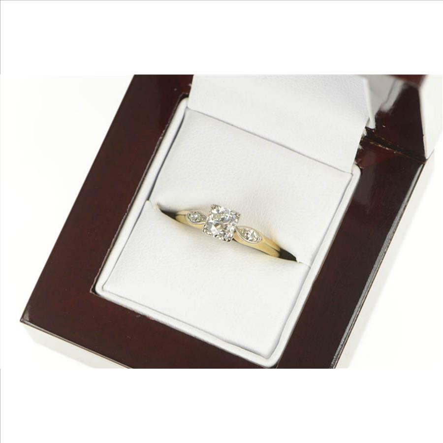 Item:  14K 40's 0.58 Ctw Old European Diamond Engagement Yellow Gold Ring, Size 6.75