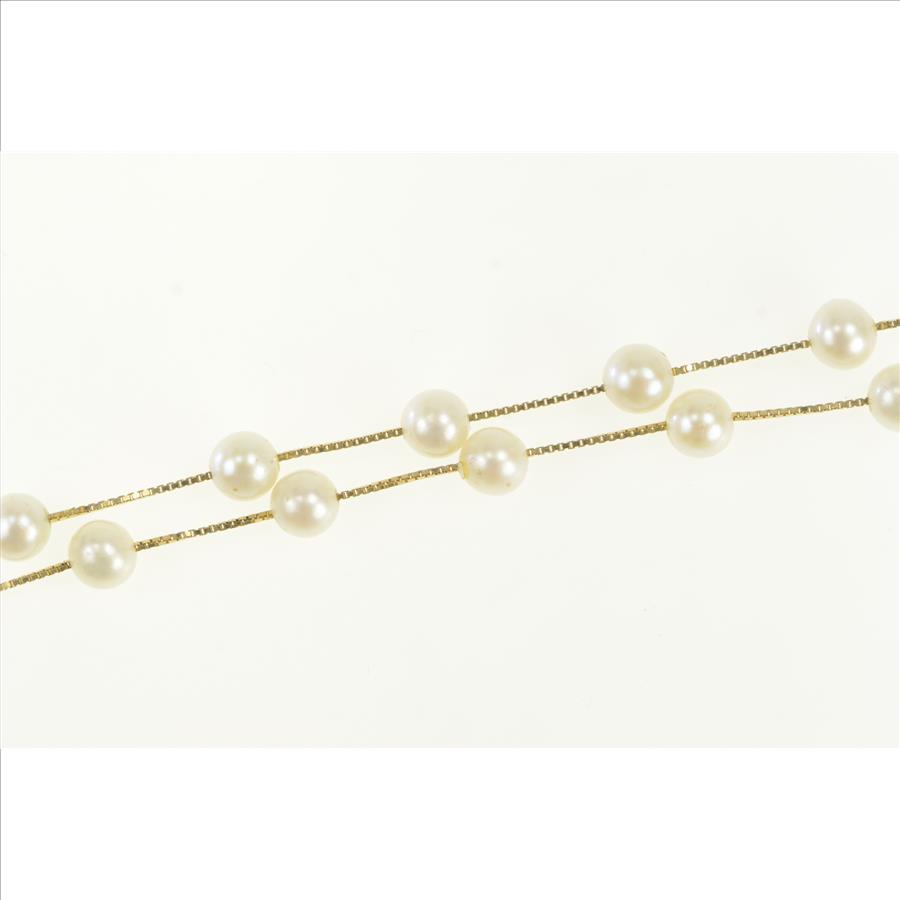 14K 5.5mm Pearl Vintage Beaded Box Chain Yellow Gold Necklace 17.25"