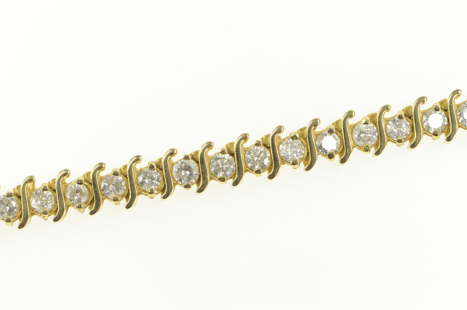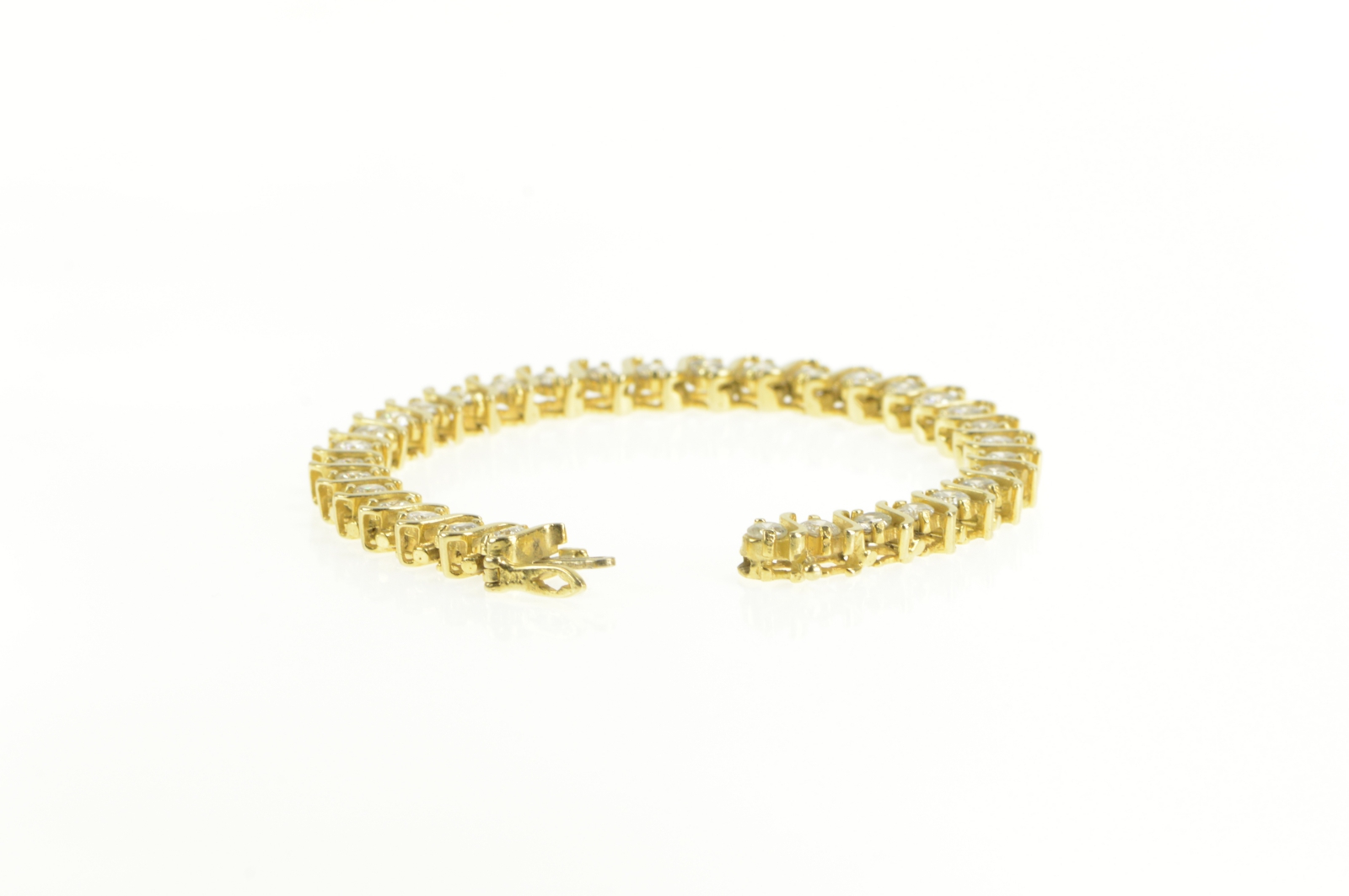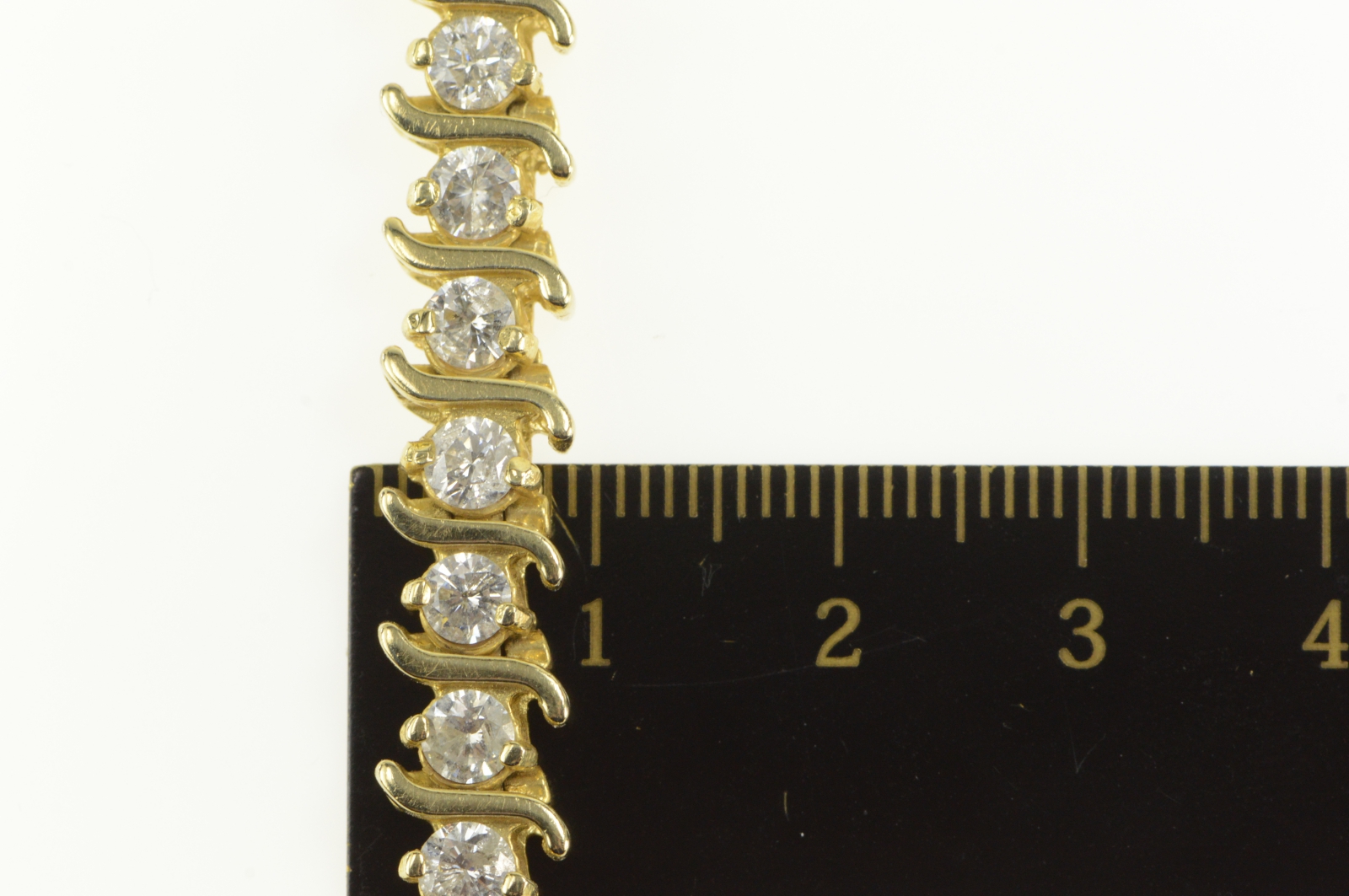 Item:  14K 6.50 Ctw Diamond Scroll Wavy Curvy Tennis Yellow Gold Bracelet 7"