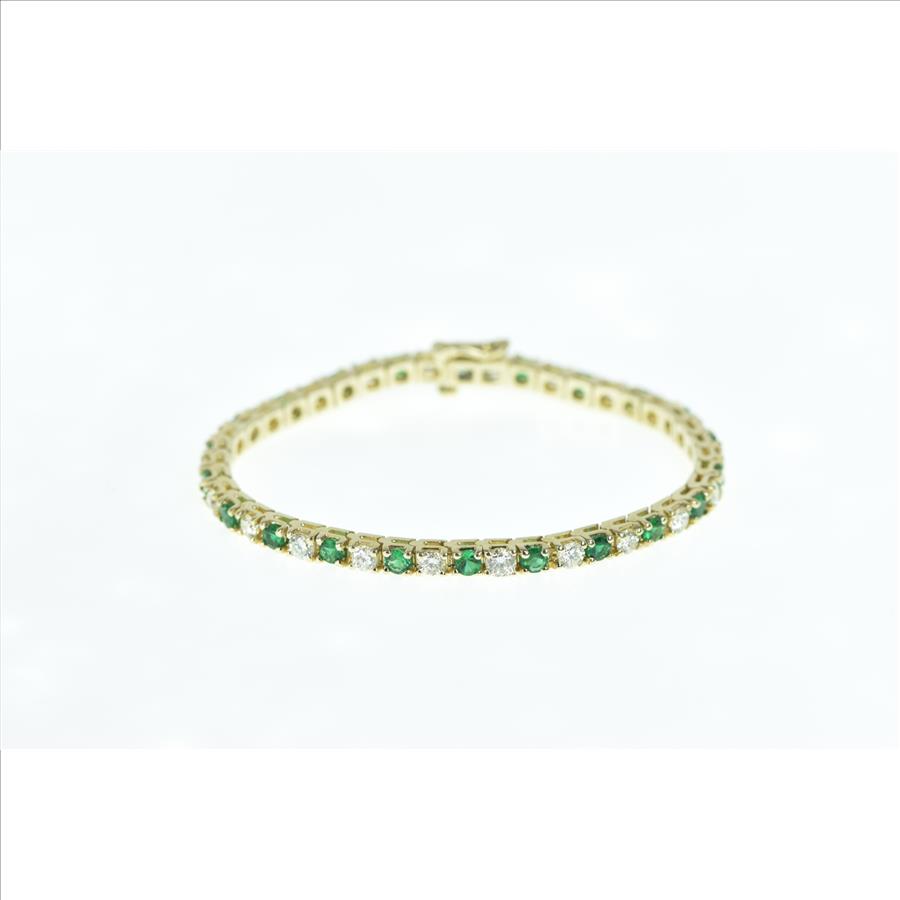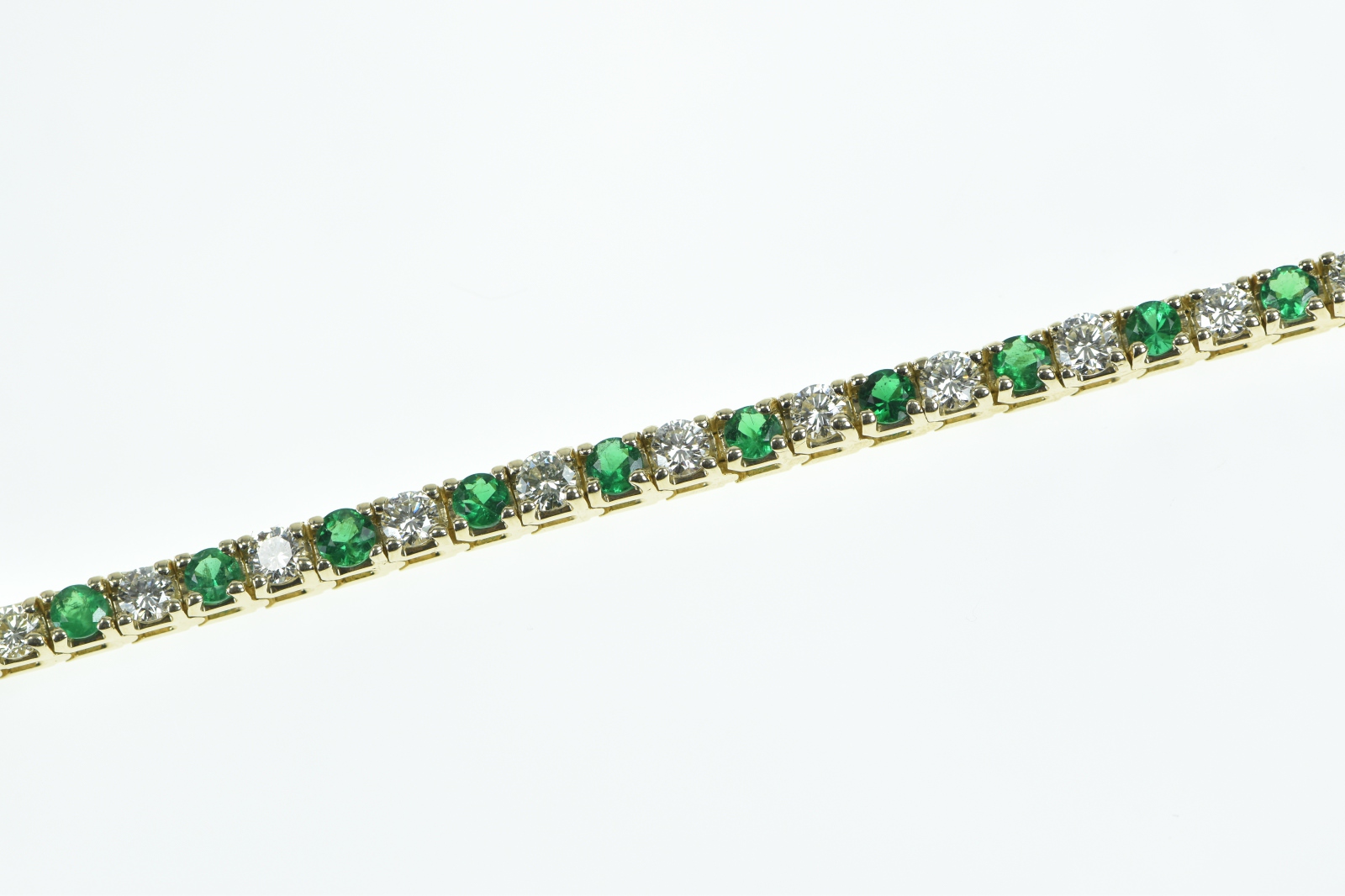 Item:  14K 6.50 Ctw Emerald VS Diamond Tennis Yellow Gold Bracelet 7"