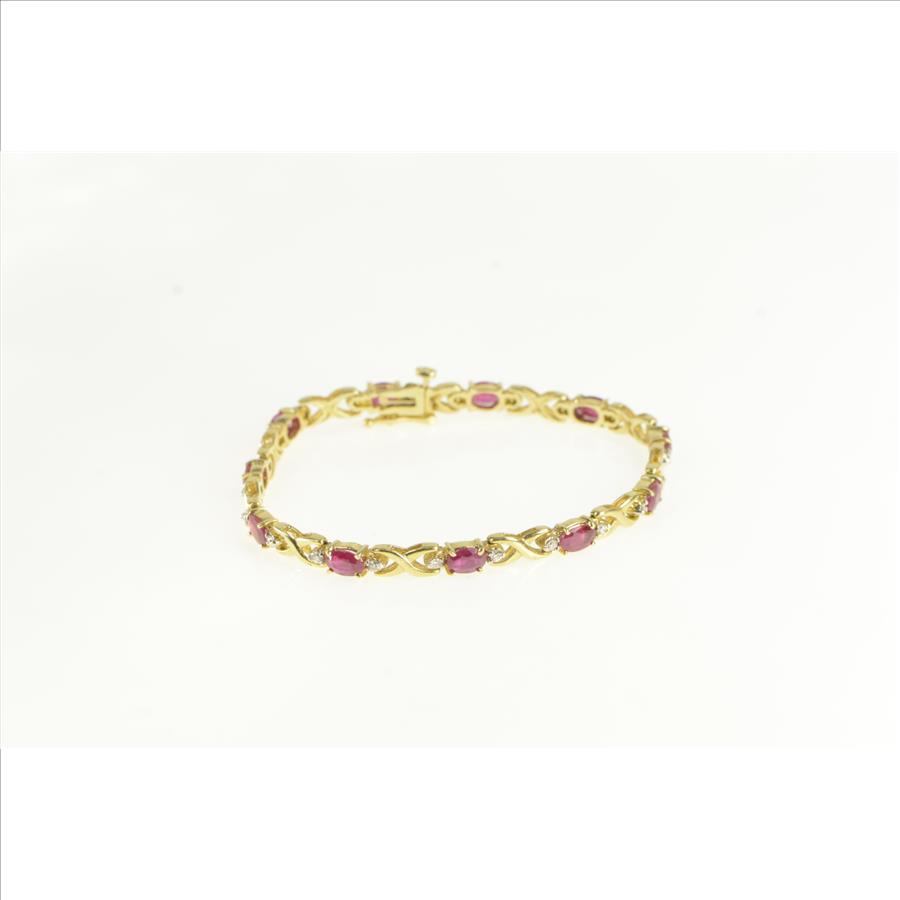 Item:  14K 6.50 Ctw Oval Ruby Diamond Vintage Tennis Yellow Gold Bracelet 7"
