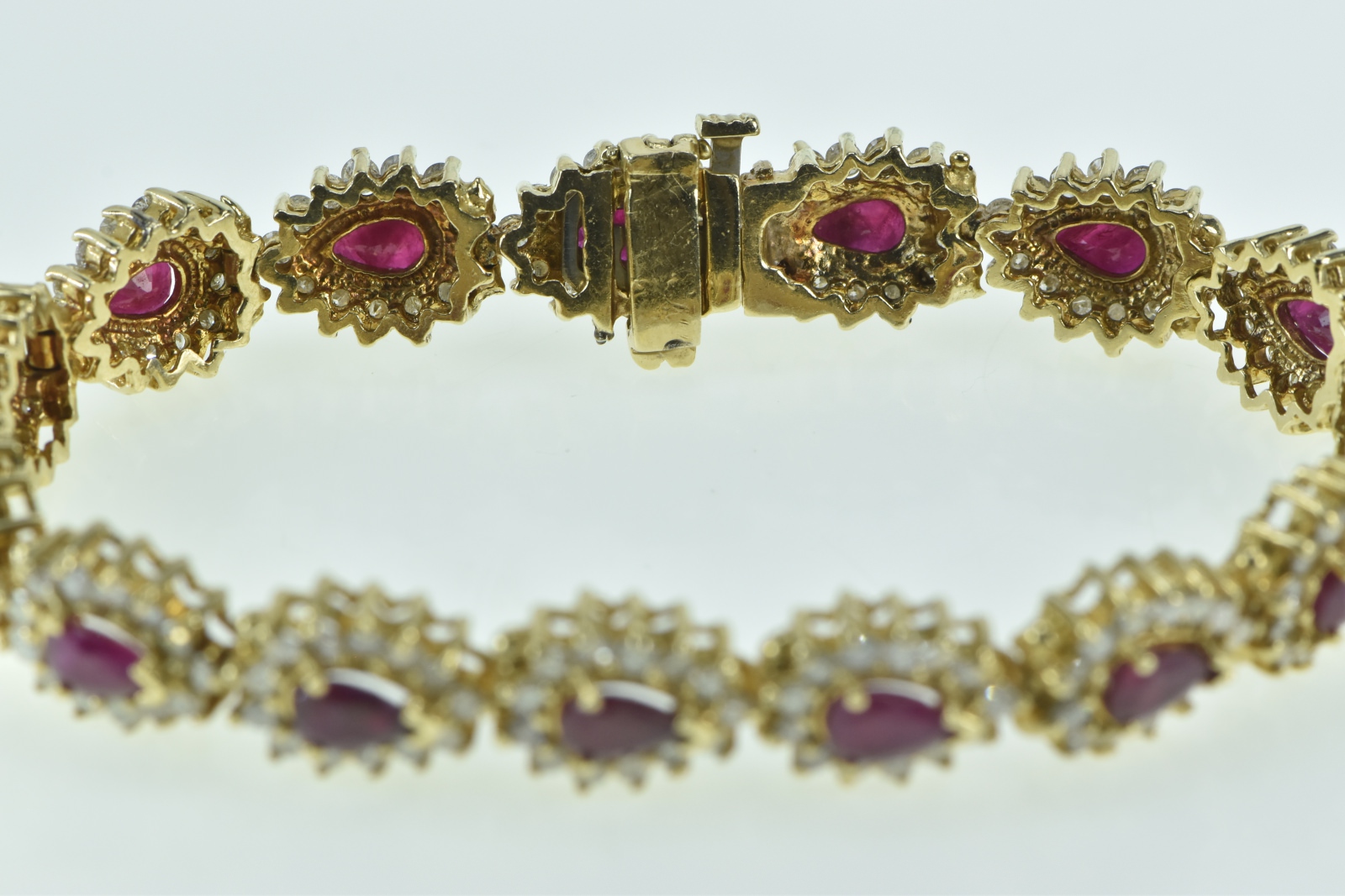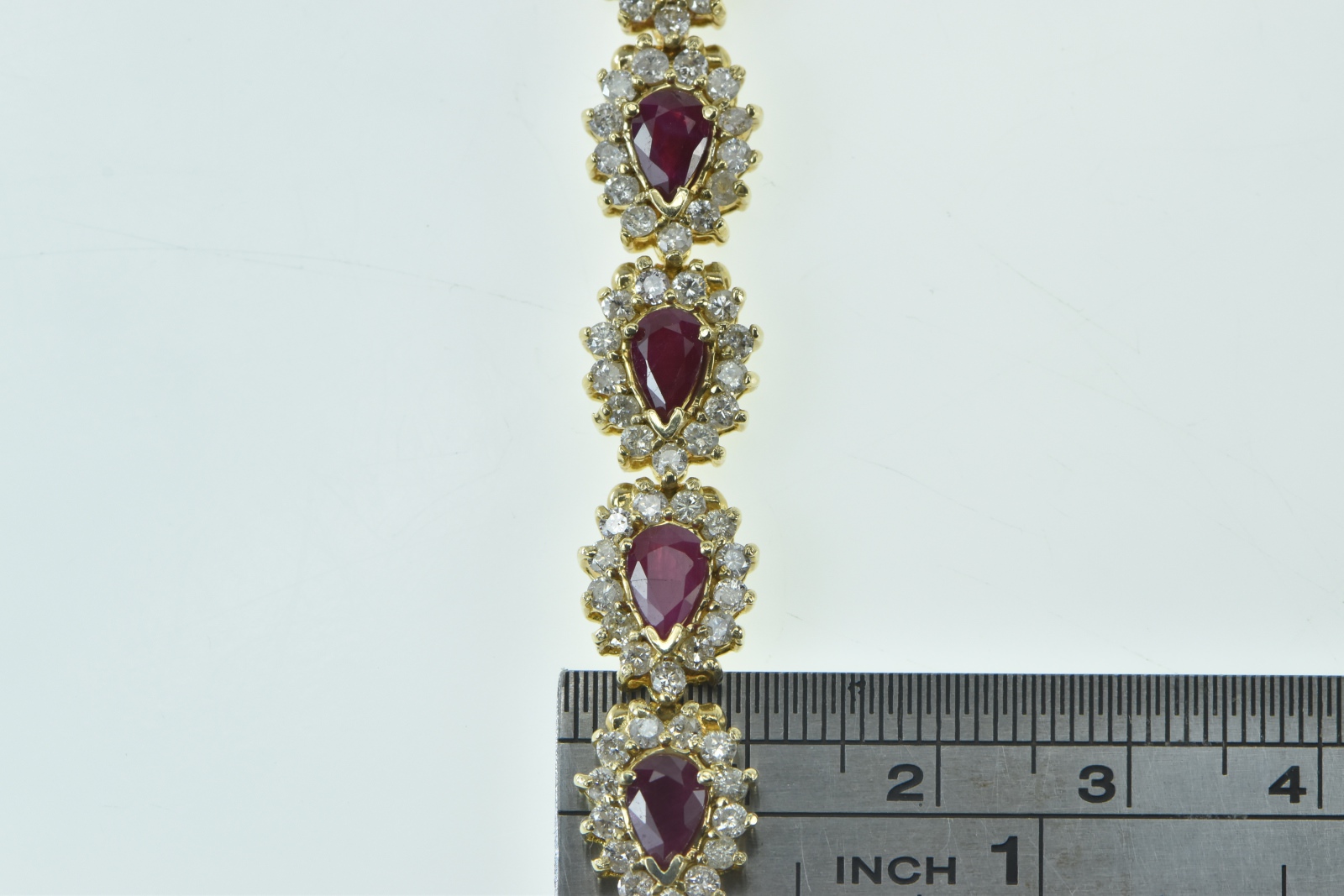 14K 9.90 Ctw Pear Ruby Diamond Halo Tennis Yellow Gold Bracelet 7"