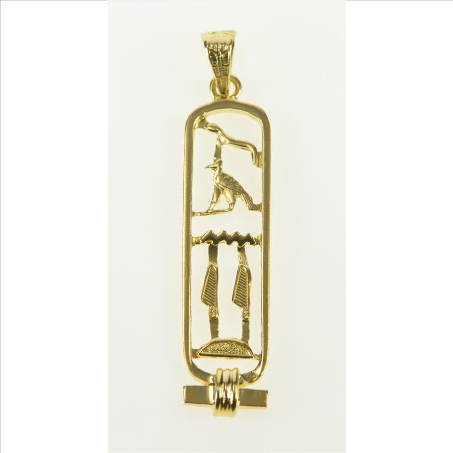 14K Ancient Egyptian Hieroglyphics Ornate Bar Yellow Gold Pendant