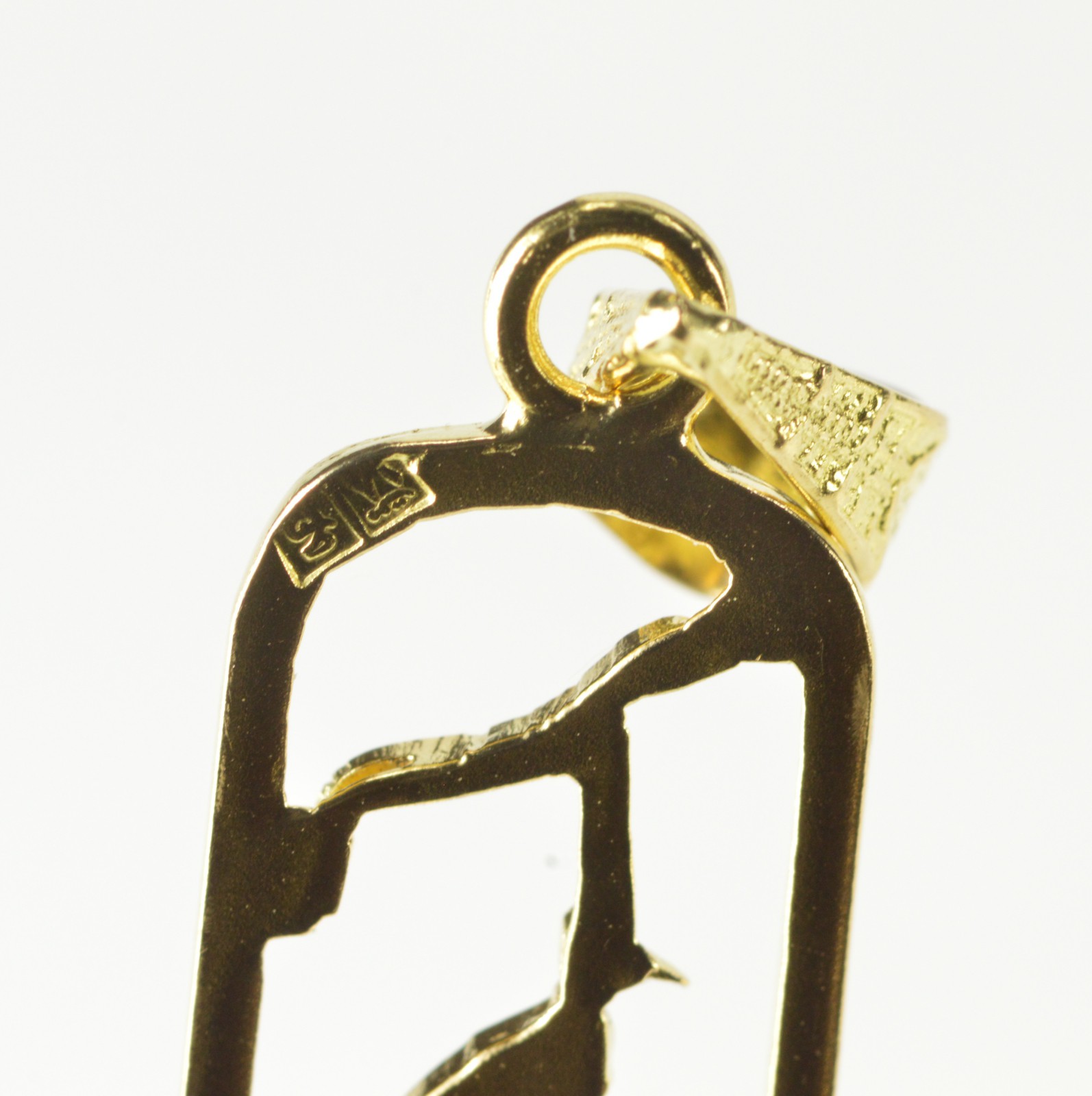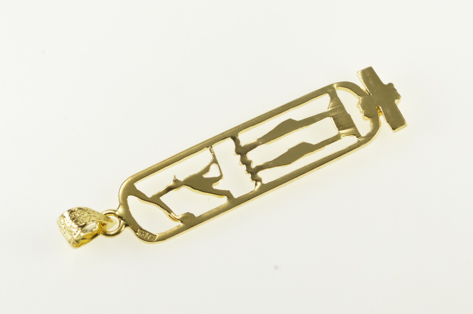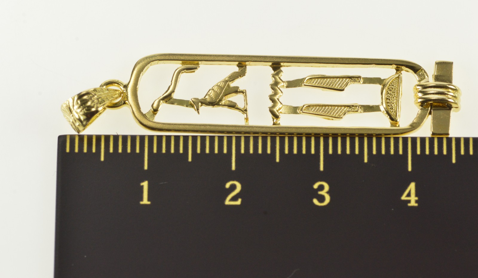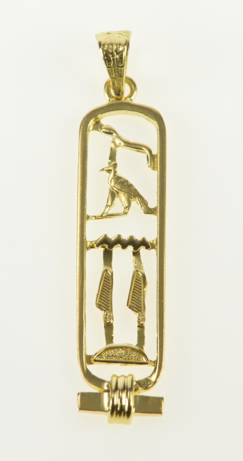 Item:  14K Ancient Egyptian Hieroglyphics Ornate Bar Yellow Gold Pendant