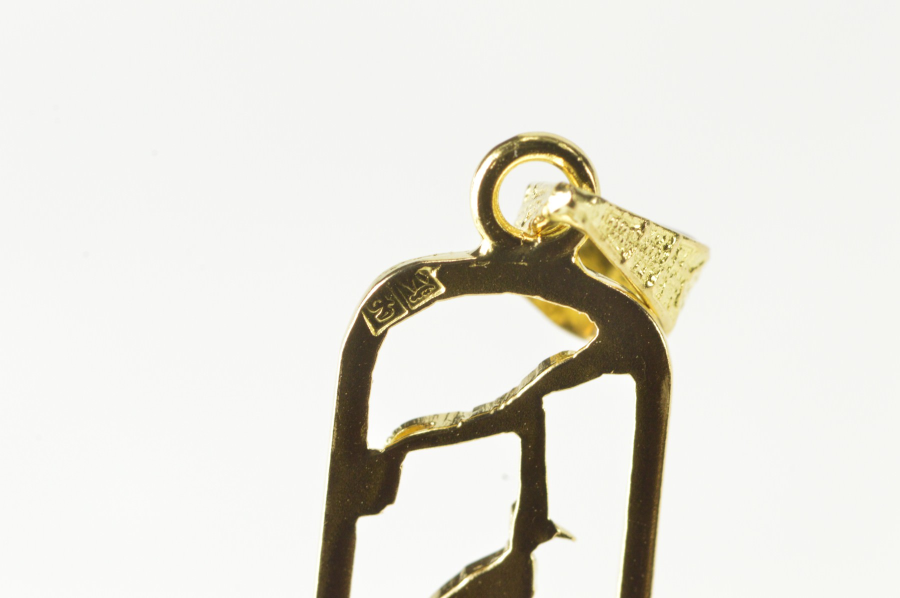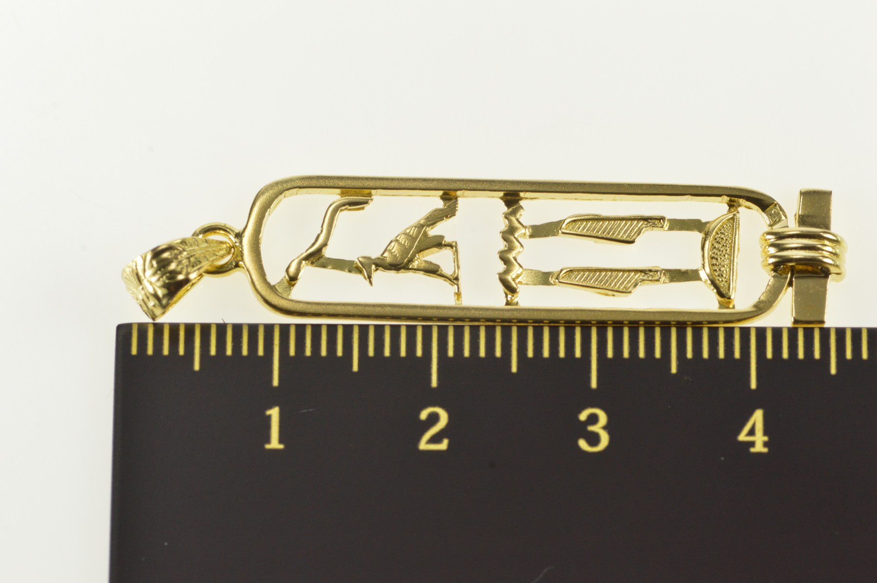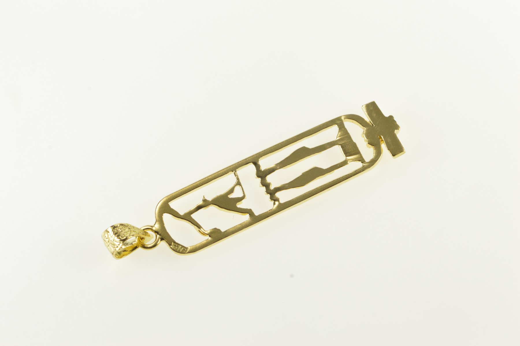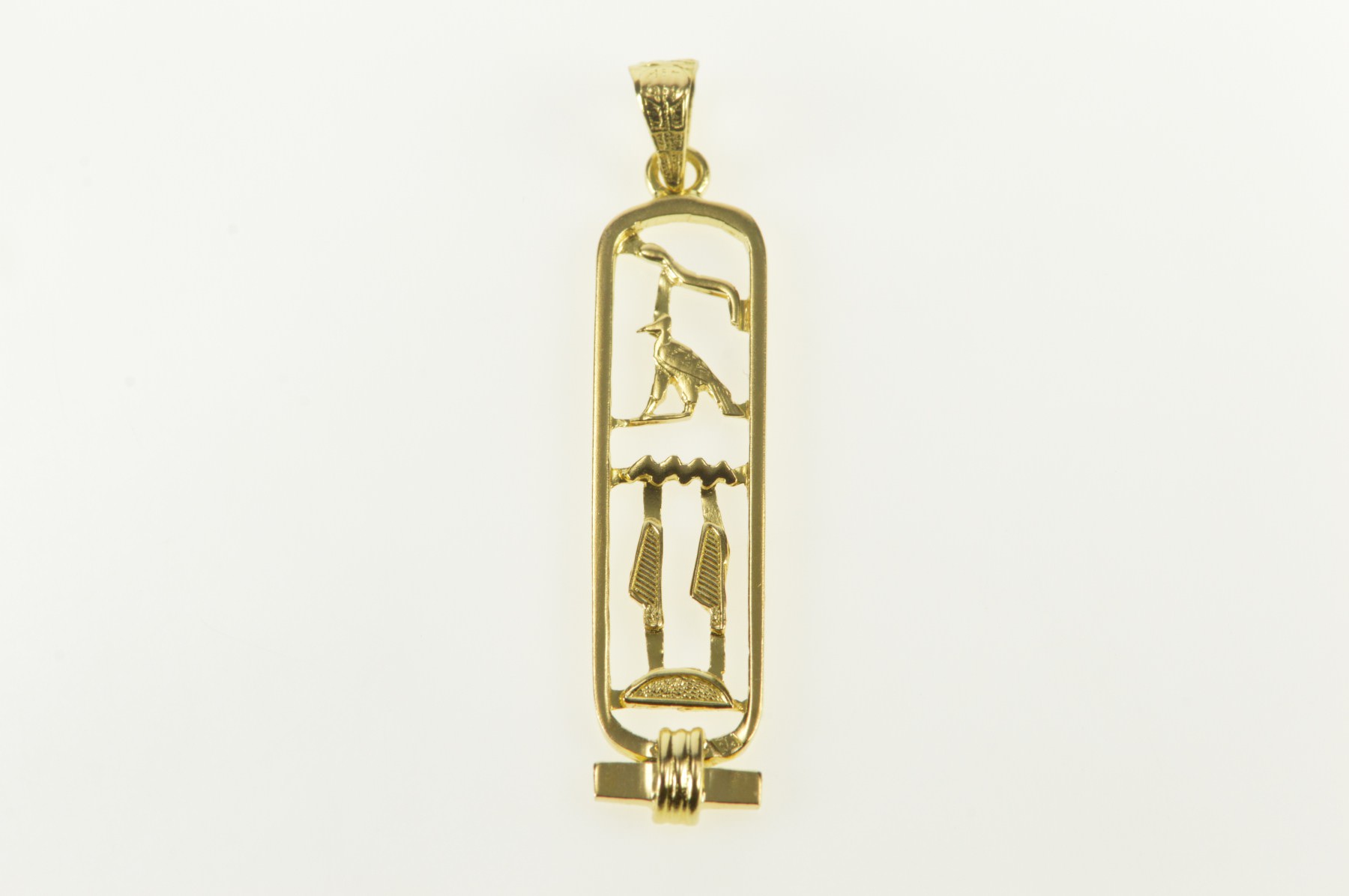 Item:  14K Ancient Egyptian Hieroglyphics Ornate Bar Yellow Gold Pendant