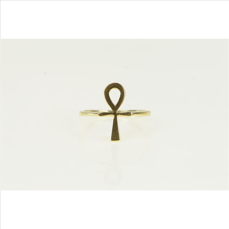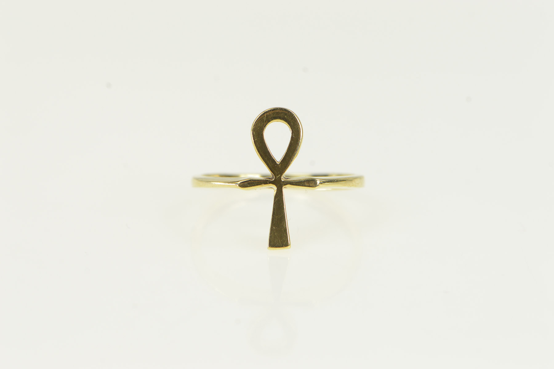 Item:  14K Ankh Ancient Egyptian Life Symbol African Yellow Gold Ring, Size 3.75