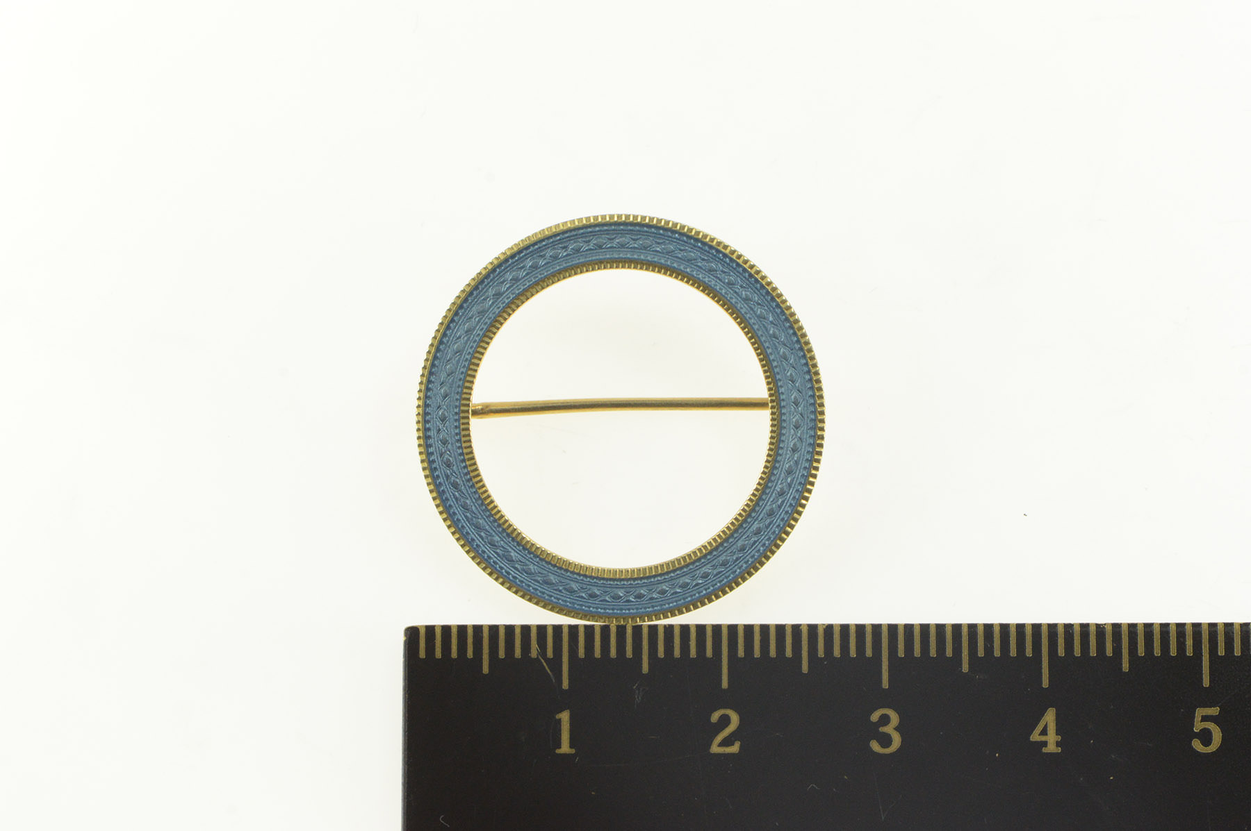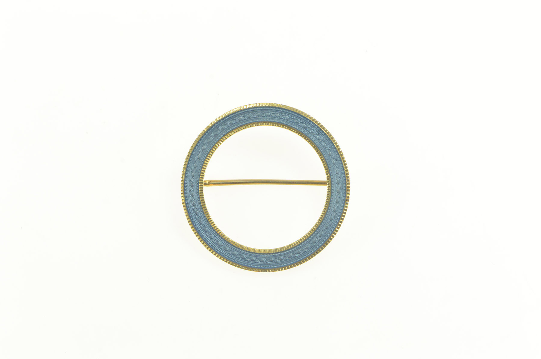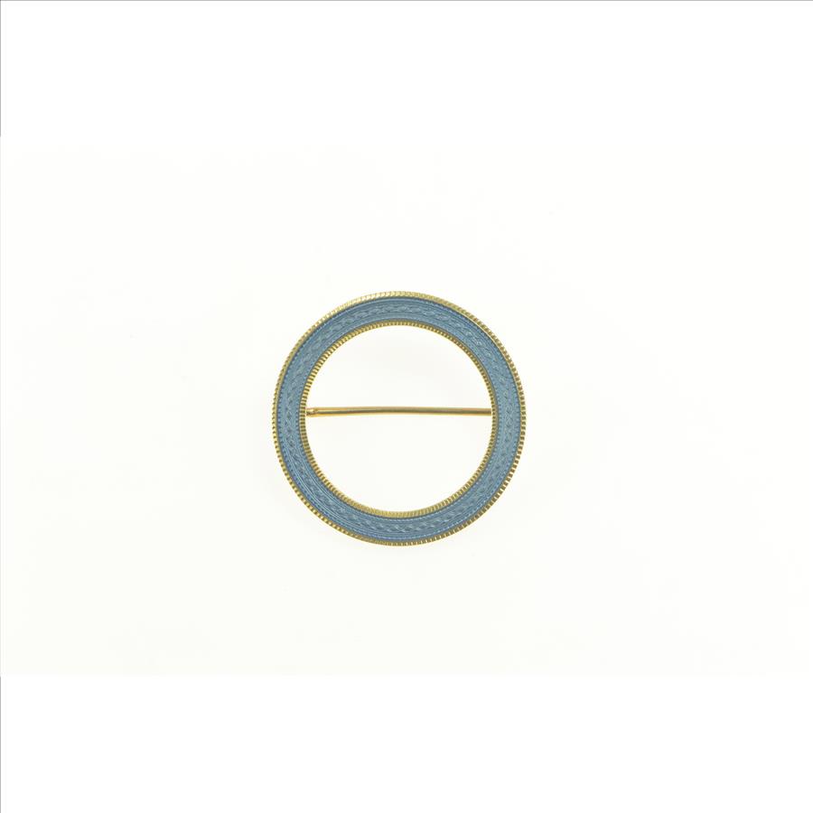 14K Art Deco Light Blue Enamel Circle Round Yellow Gold Pin/Brooch