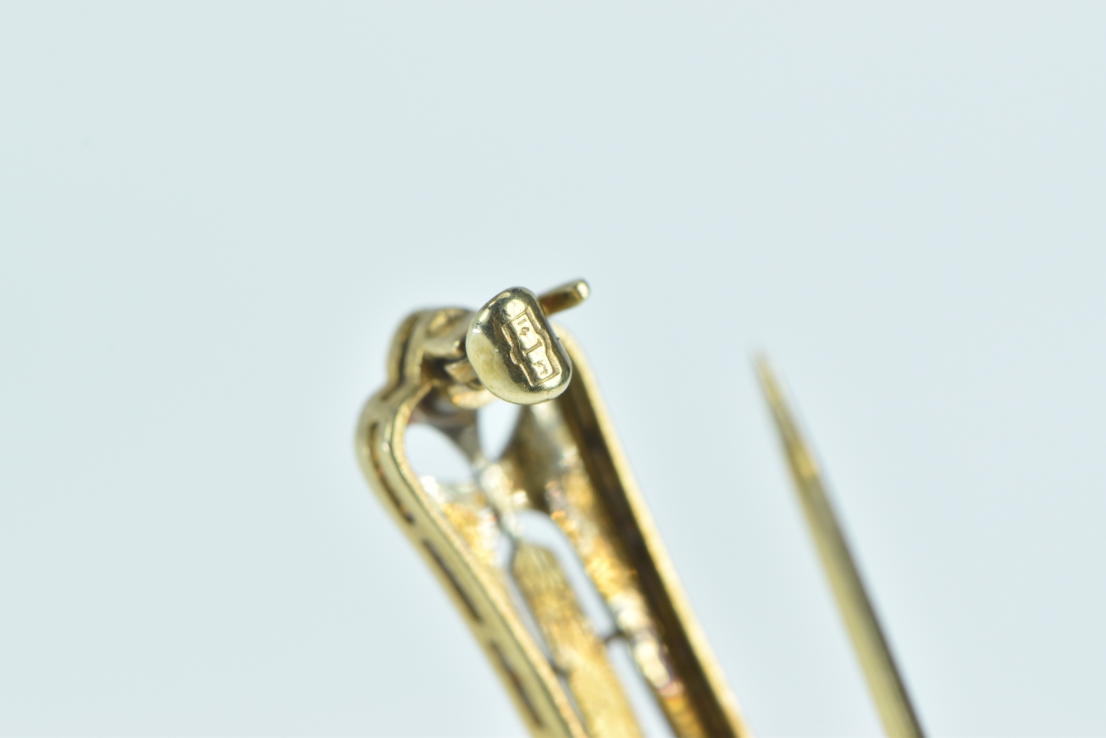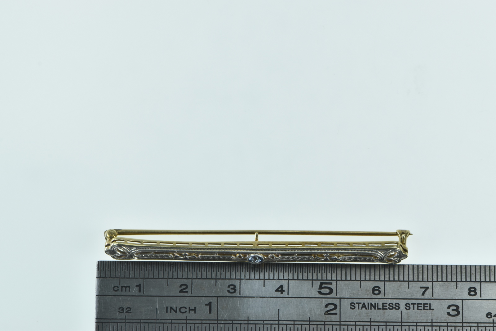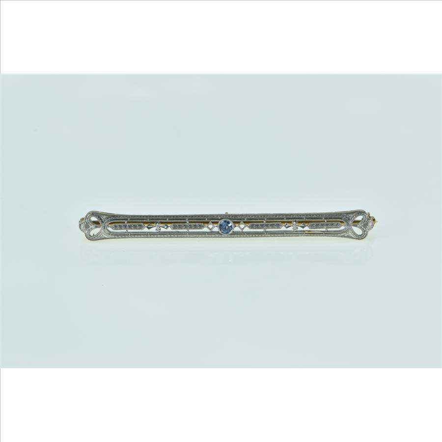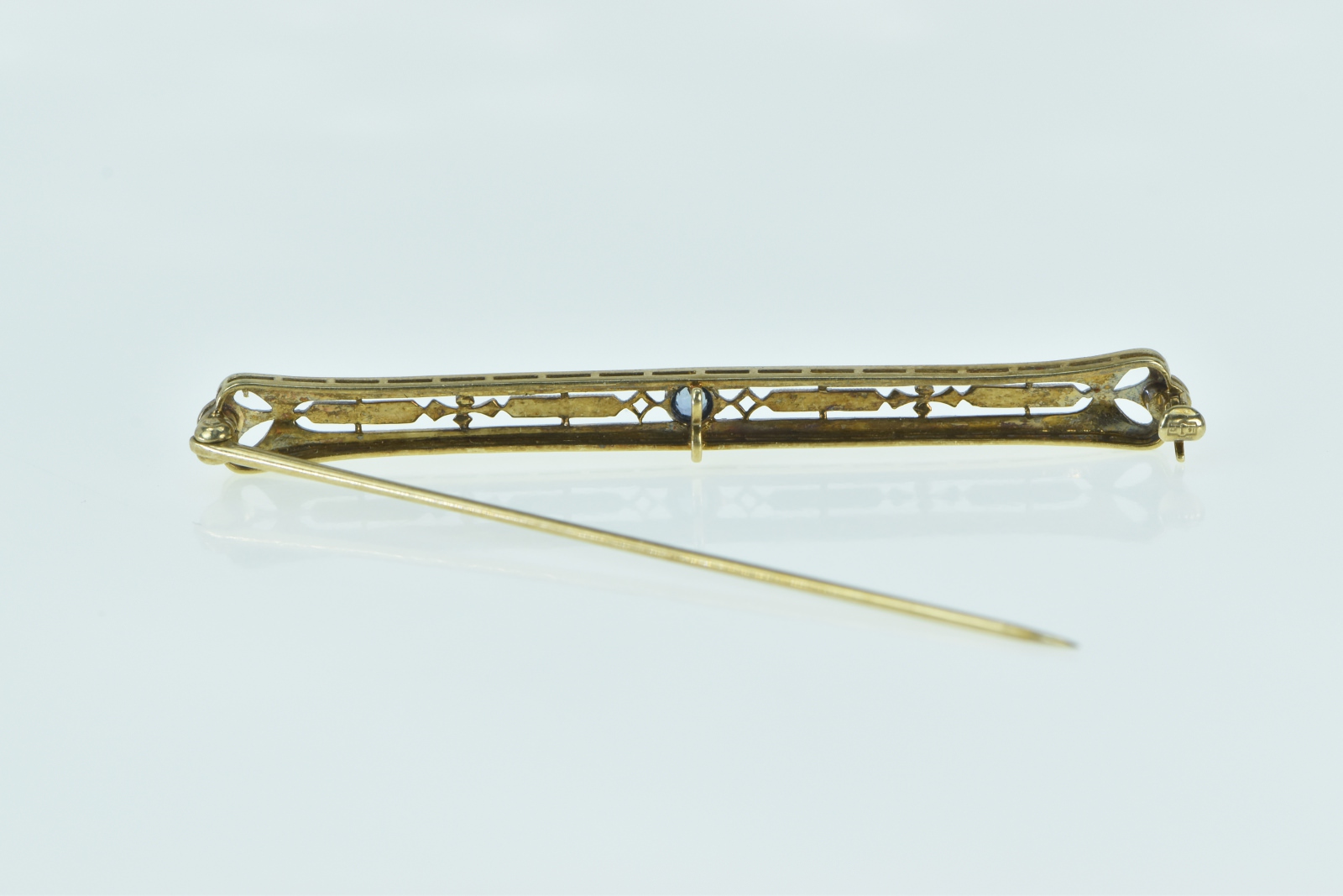14K Art Deco Ornate Filigree Syn. Sapphire Bar Yellow Gold Pin/Brooch