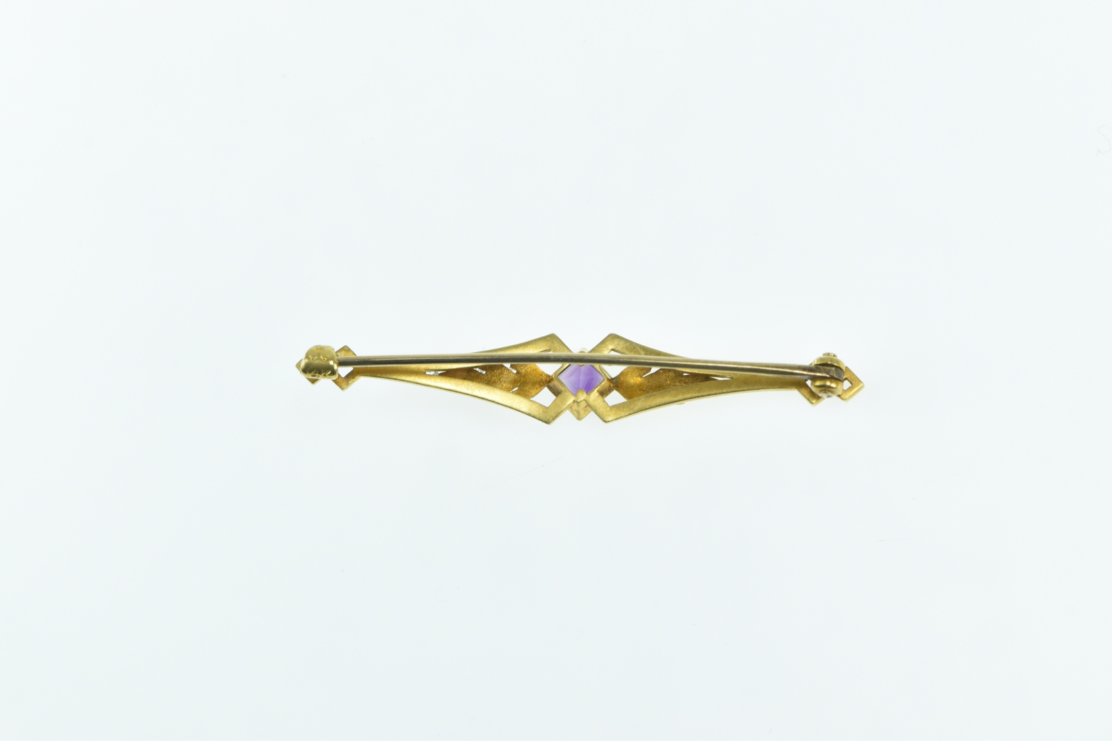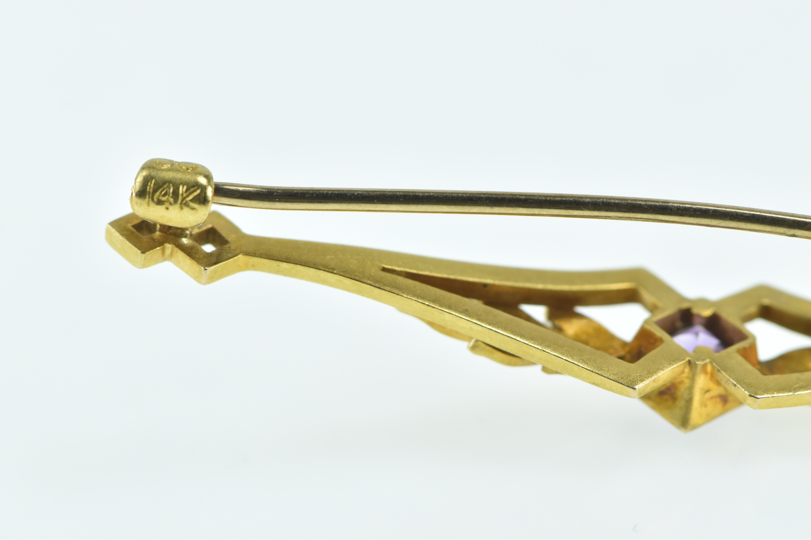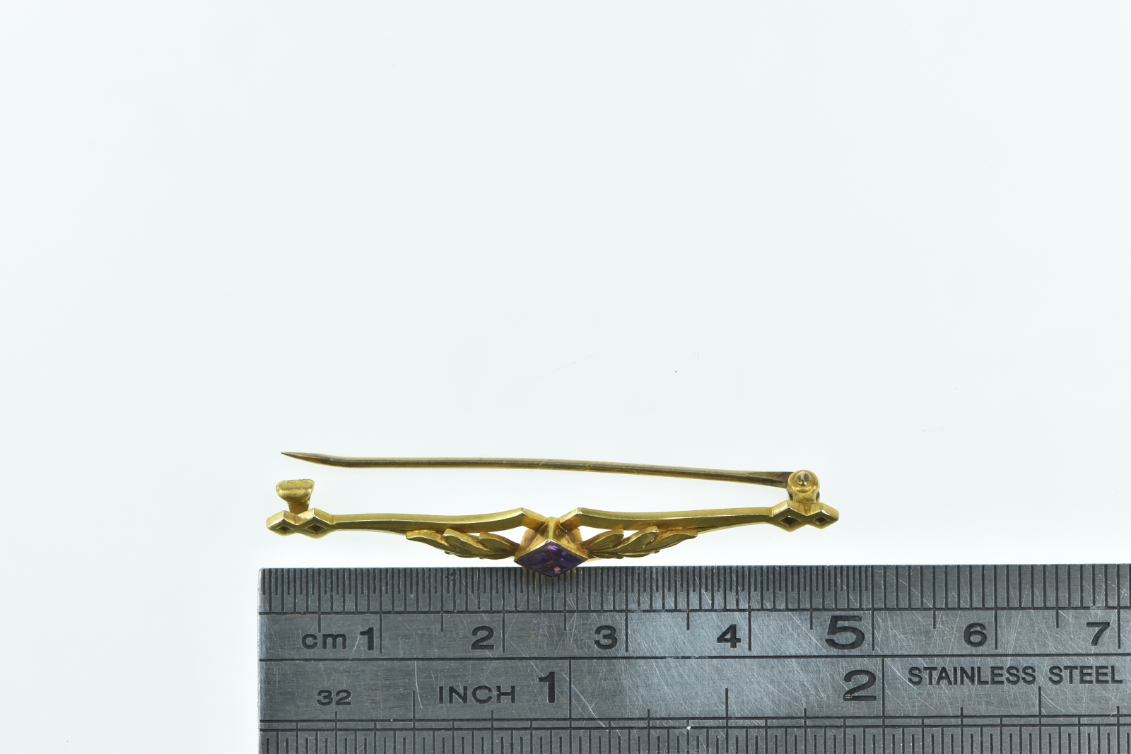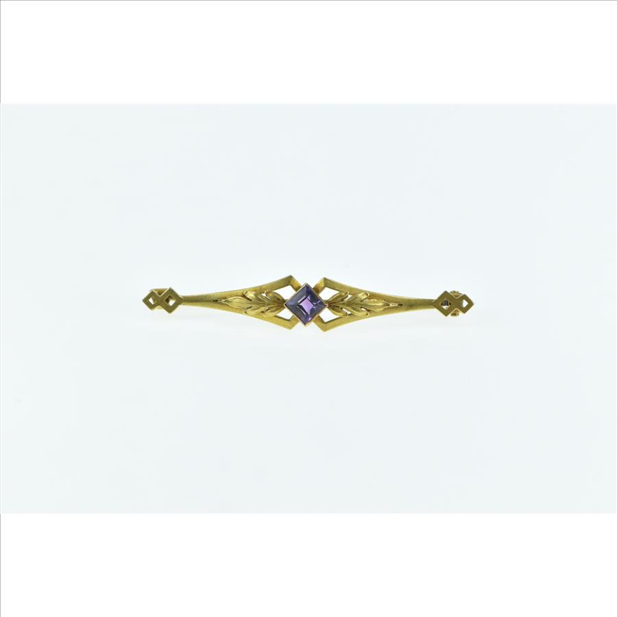 Item:  14K Art Nouveau Princess Amethyst Floral Leaf Yellow Gold Pin/Brooch