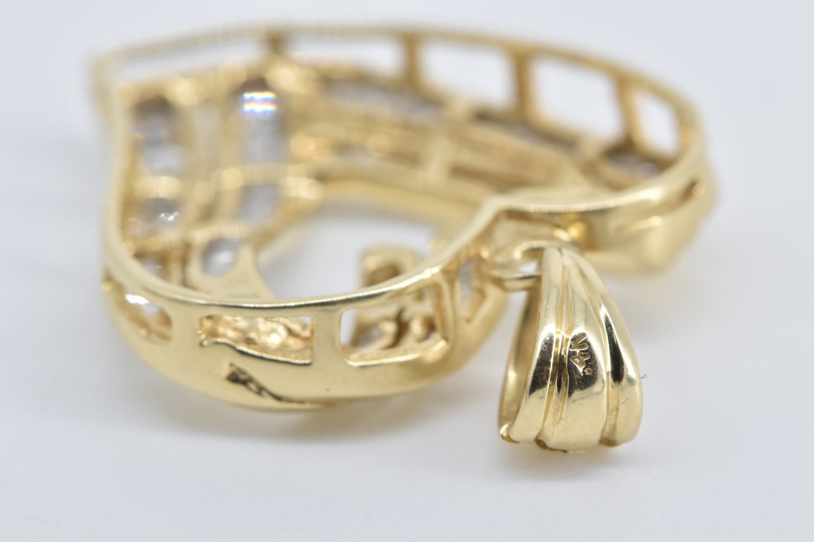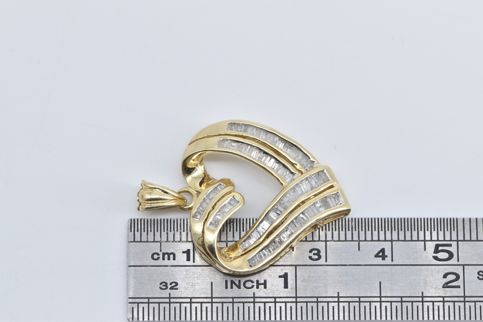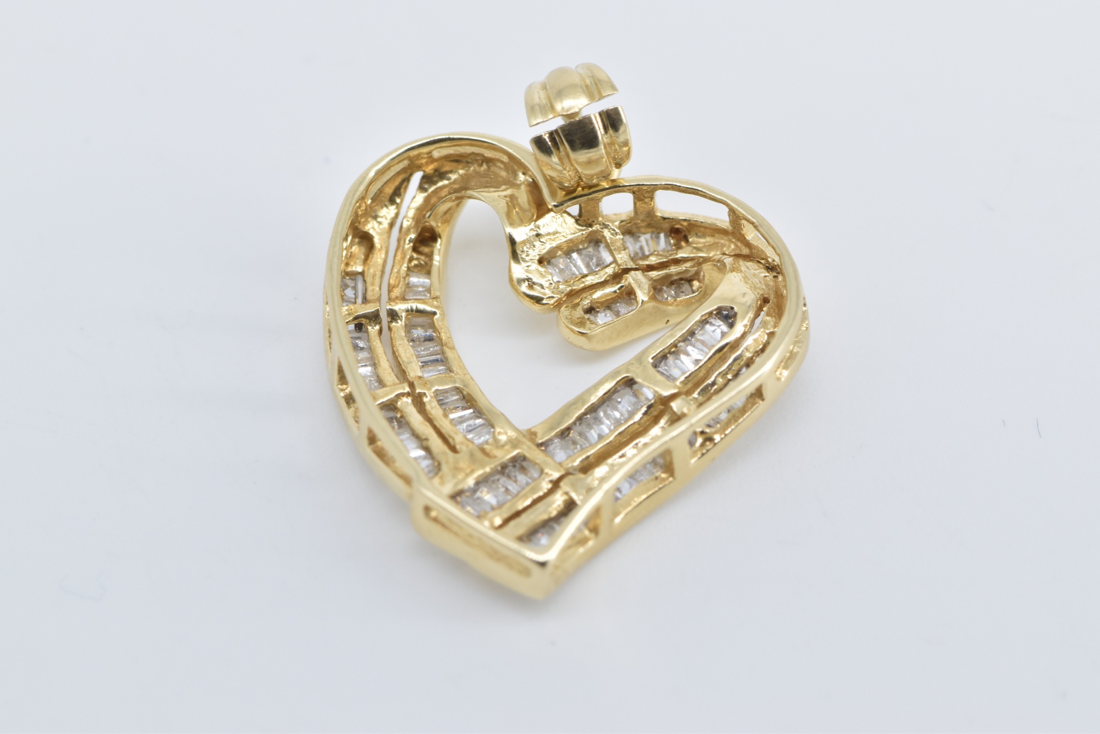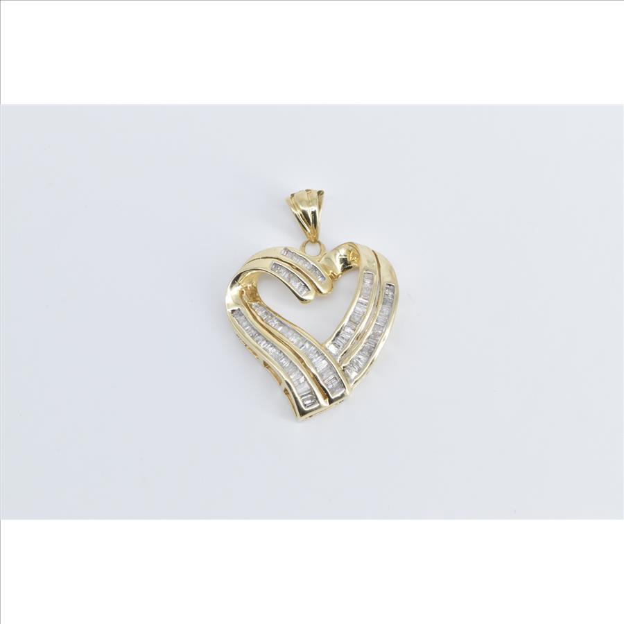Item:  14K Baguette Diamond Heart Love Symbol Yellow Gold Pendant