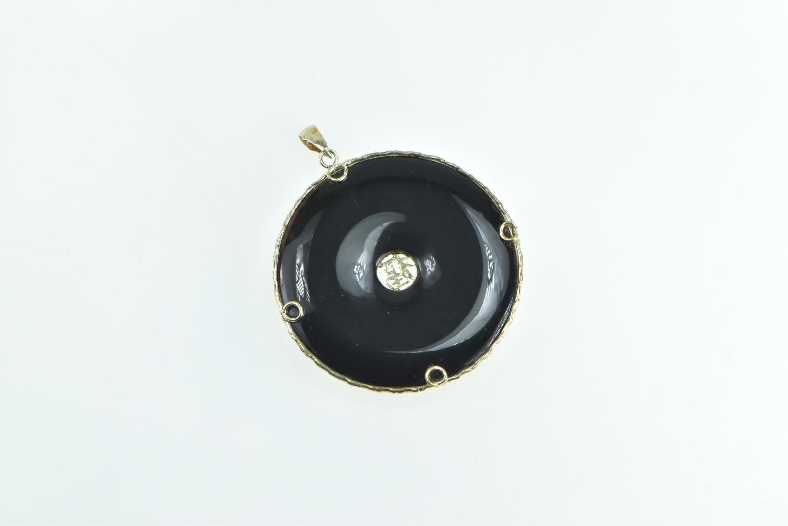 14K Black Onyx Chinese Dragon Bi Ornate Yellow Gold Pendant