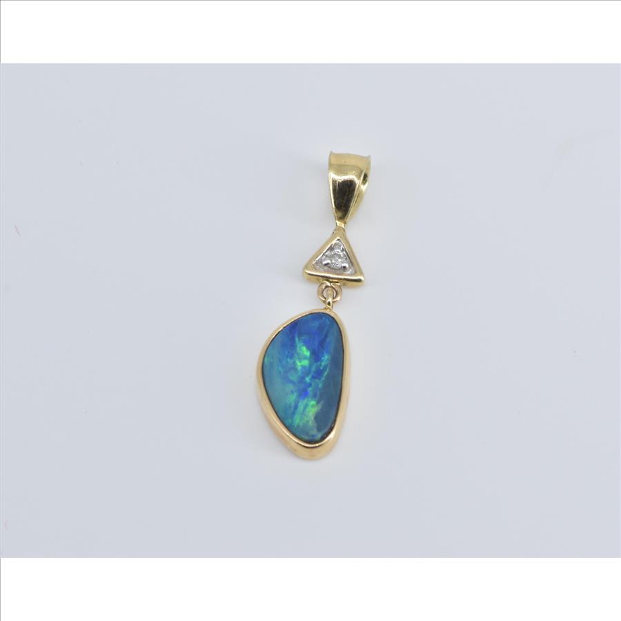 Item:  14K Black Opal Diamond Accent Vintage Statement Yellow Gold Pendant