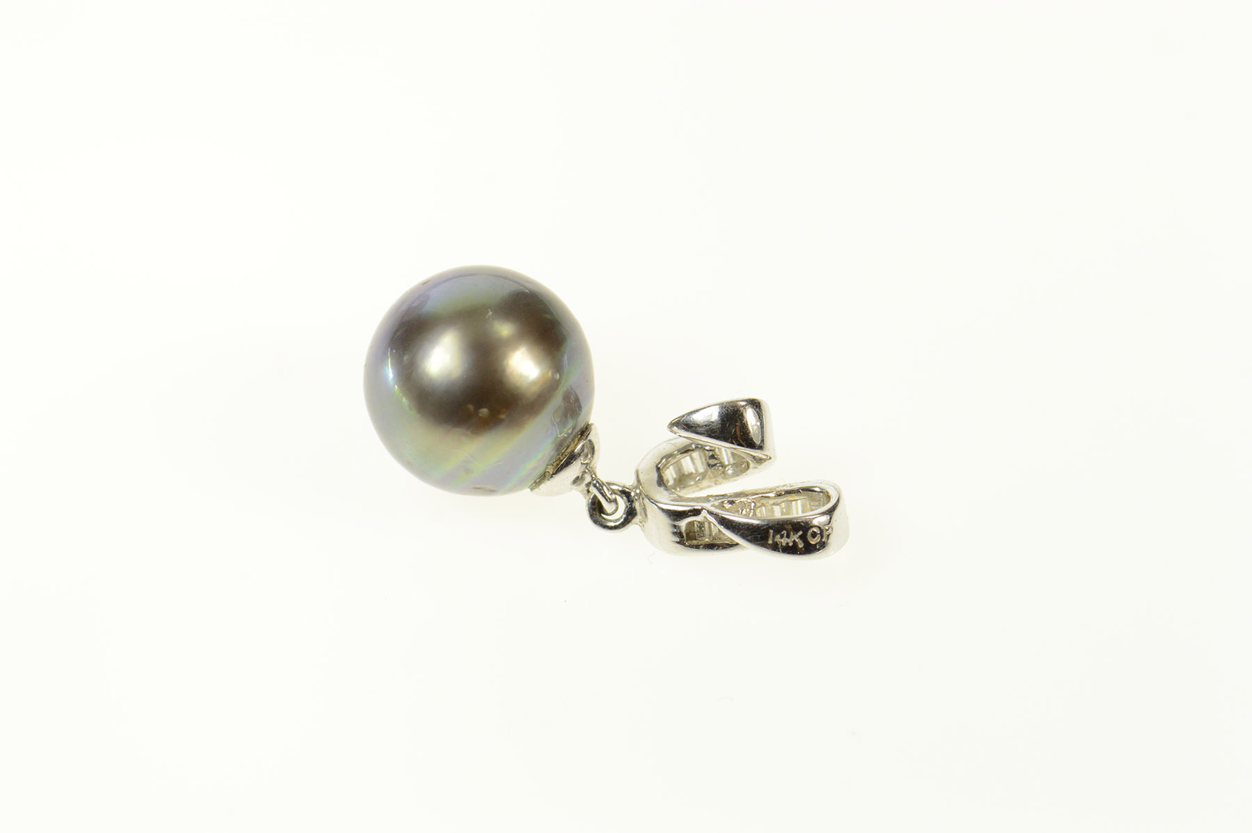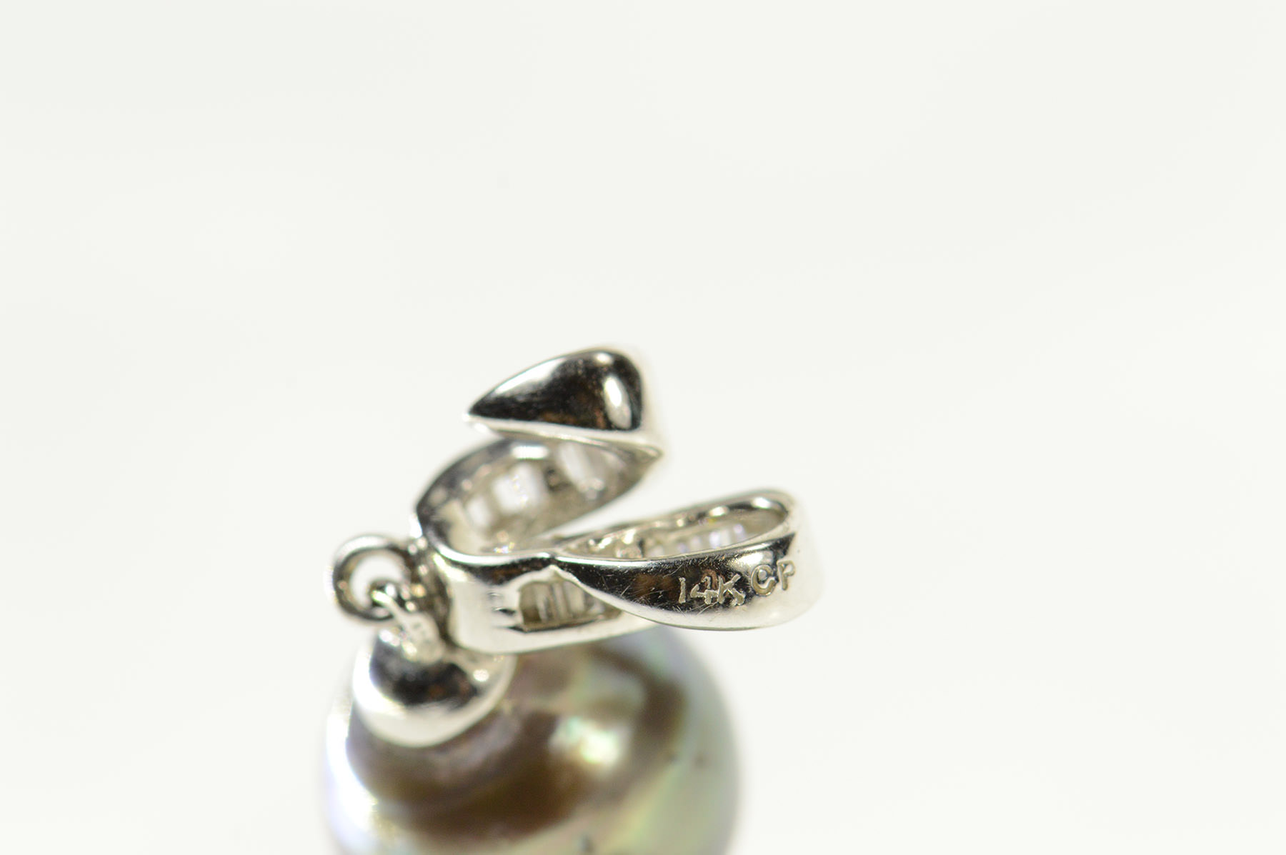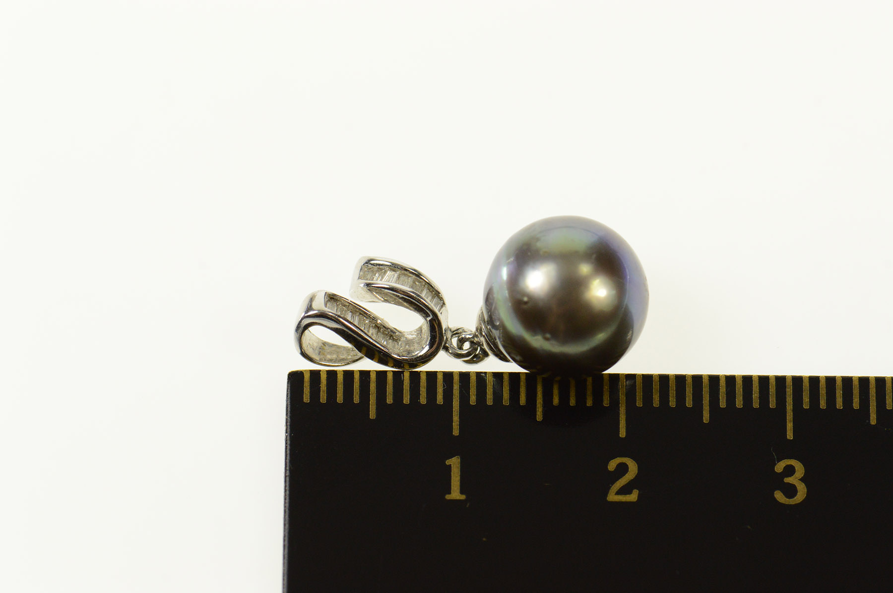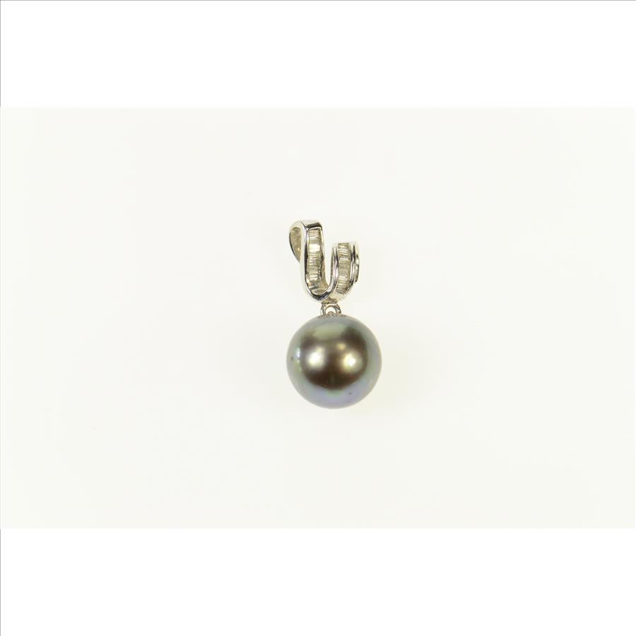 Item:  14K Black Pearl Baguette Diamond Wavy Statement White Gold Pendant