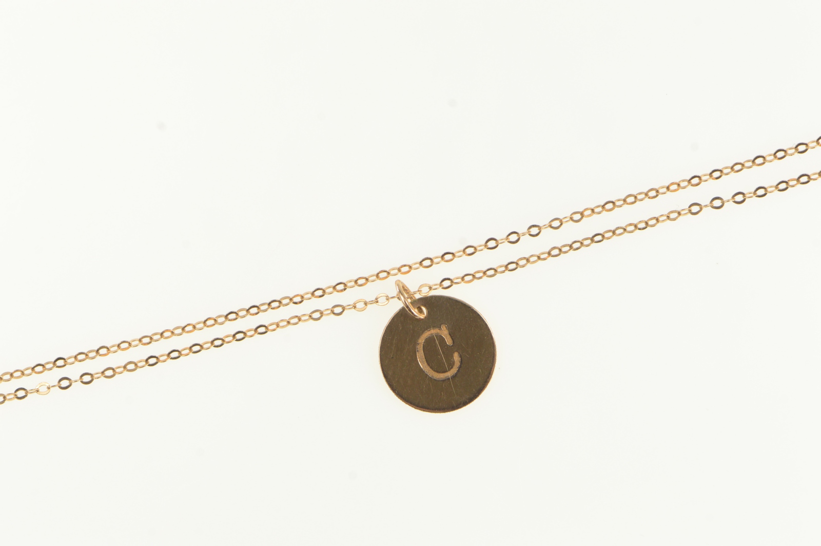 14K C Engraved Monogram Cable Chain Link Rose Gold Necklace 18"