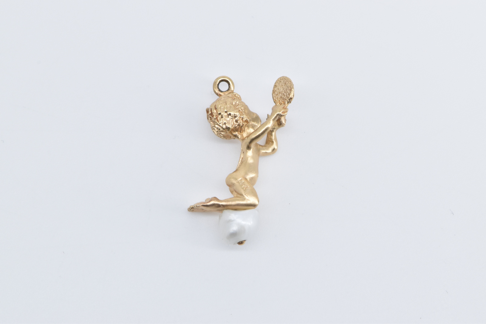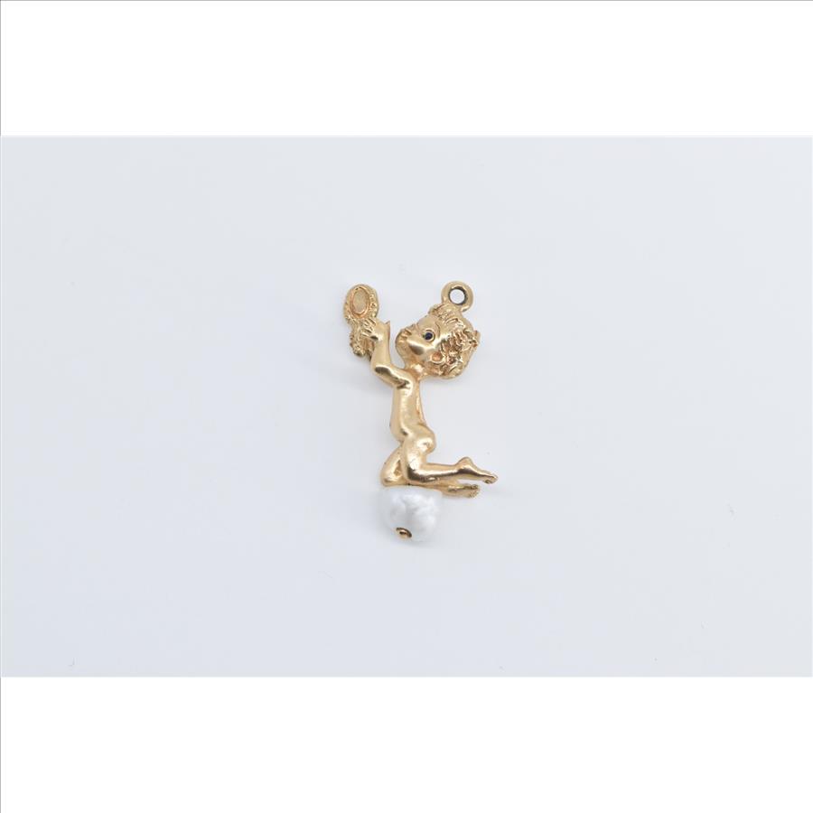 Item:  14K Cherub Cupid Pearl Baby Angel Valentine Yellow Gold Charm/Pendant