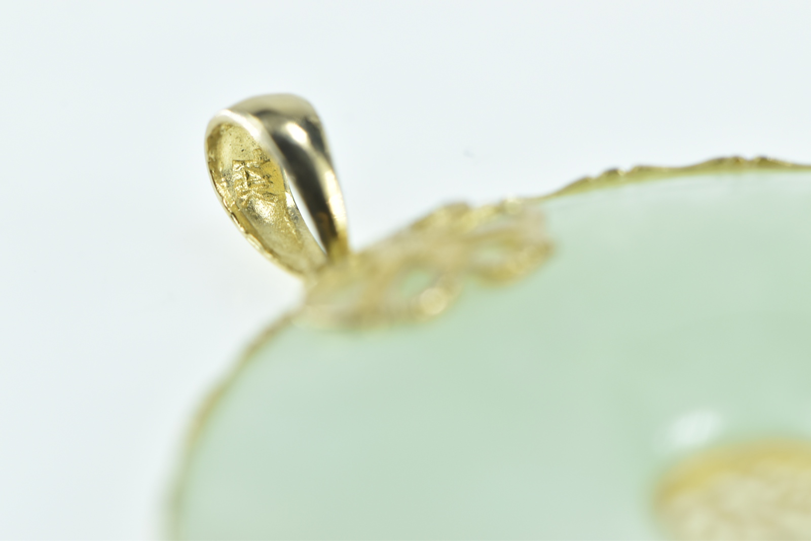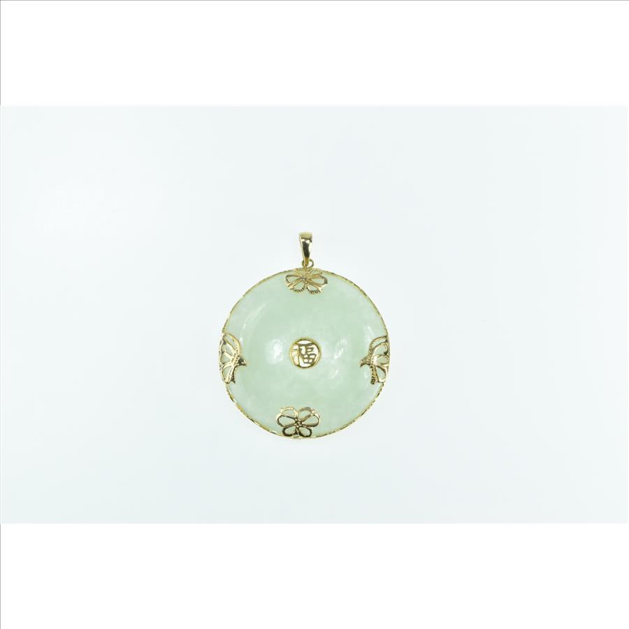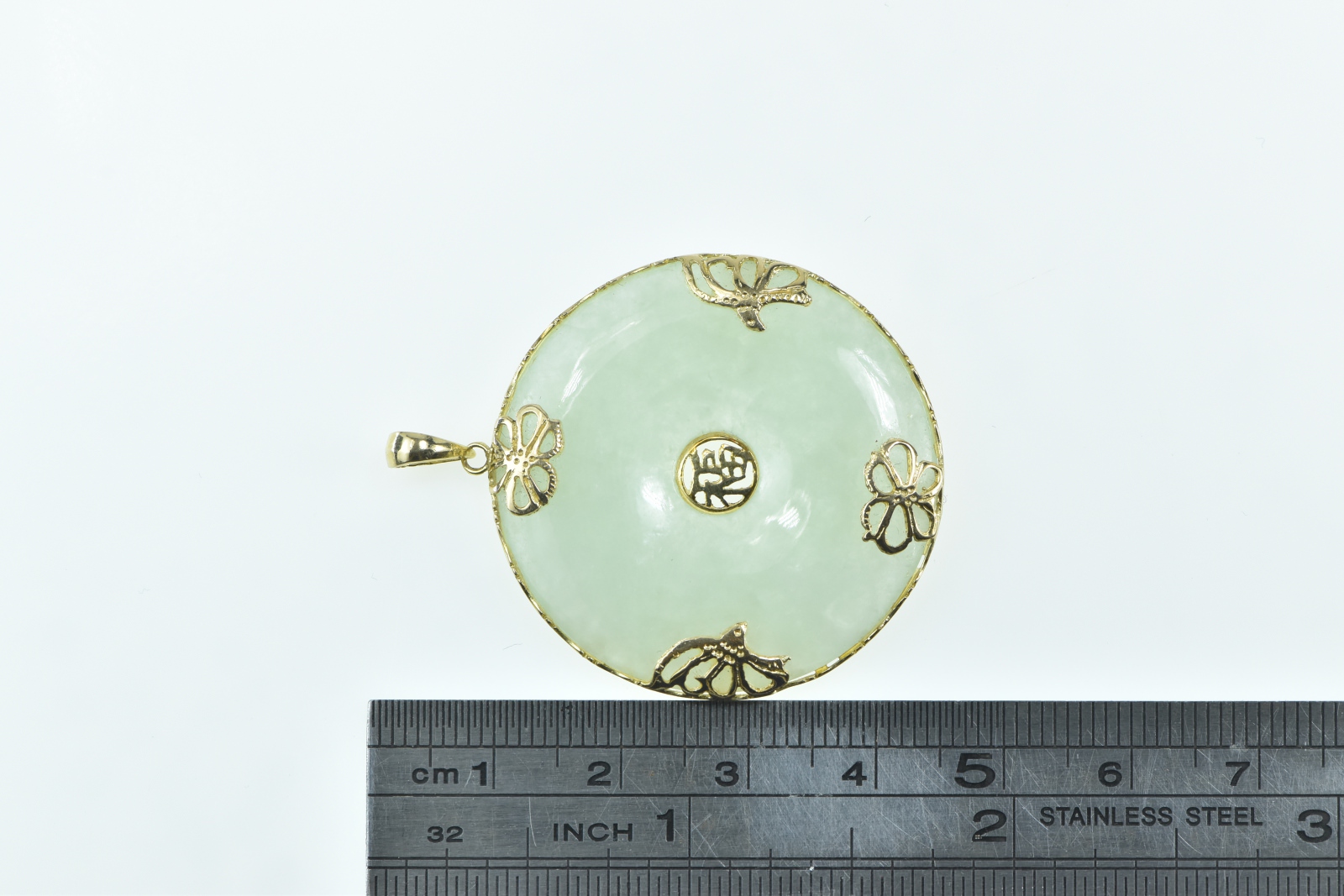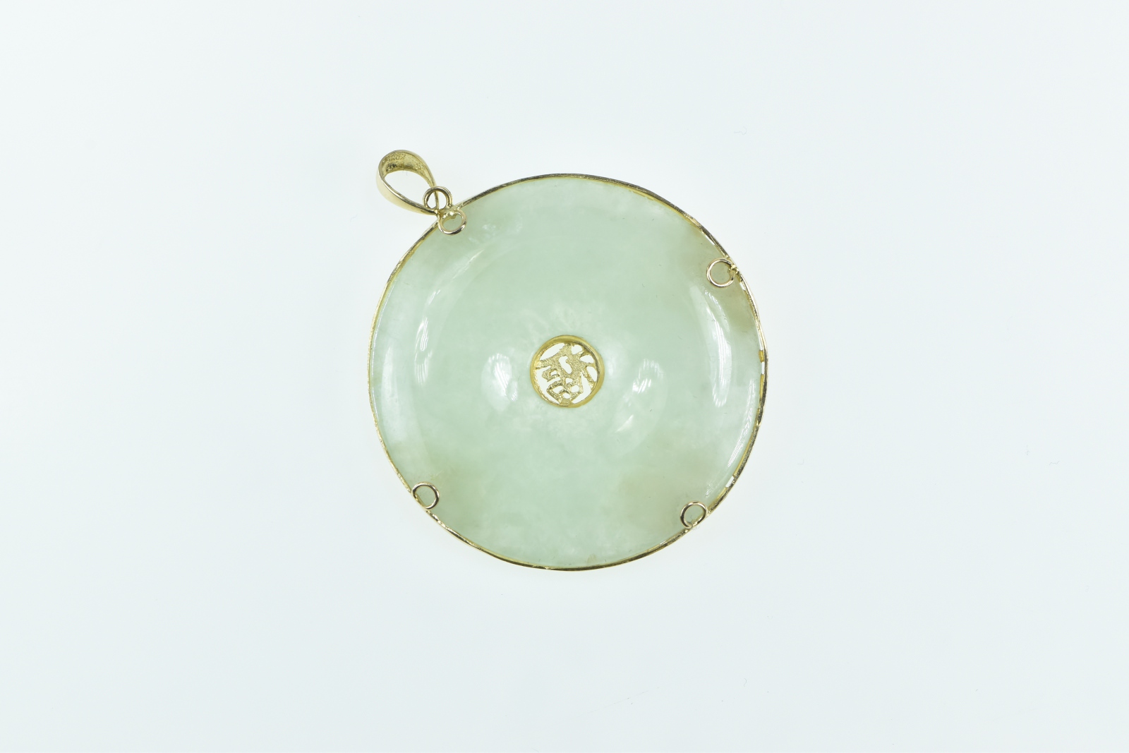14K Chinese Jade Bi Happiness Fortune Round Yellow Gold Pendant