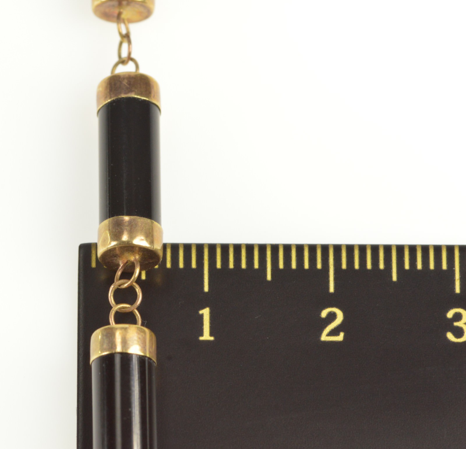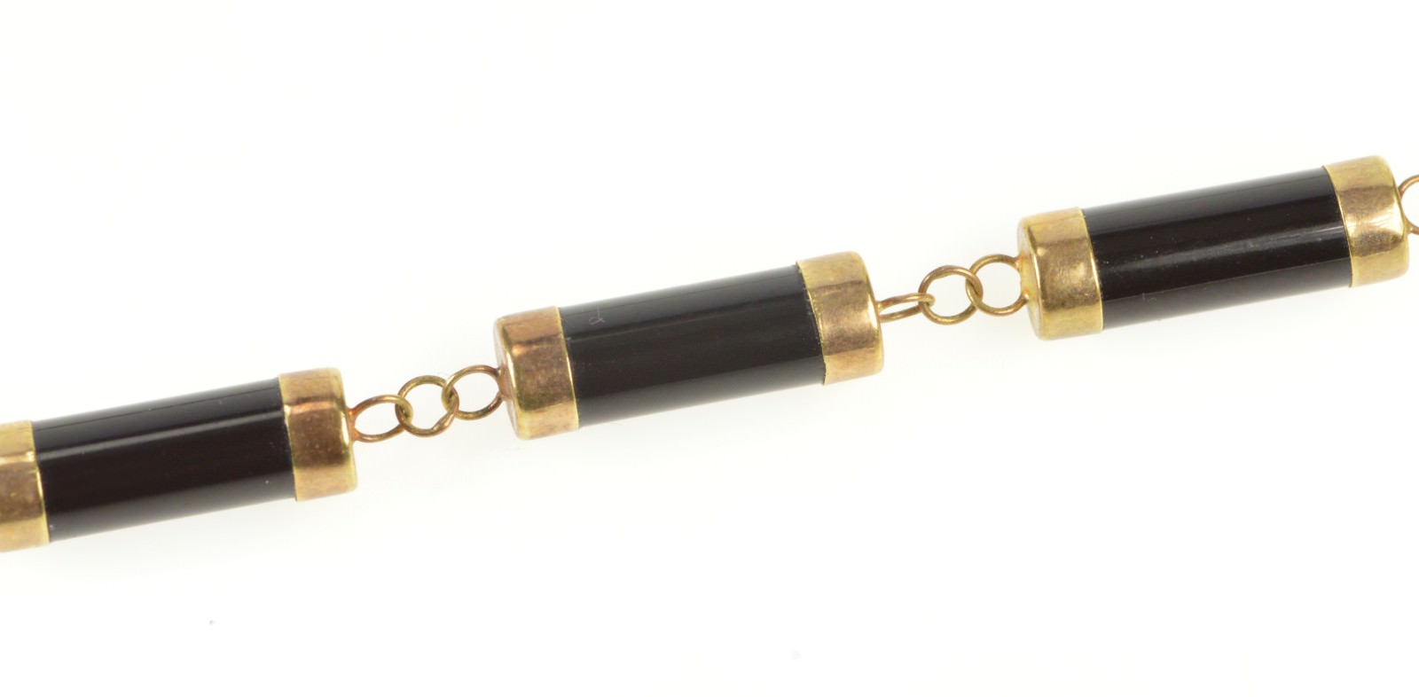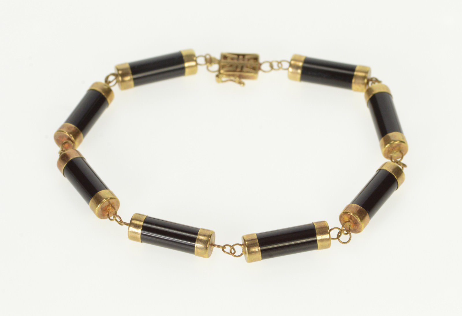 Item:  14K Chinese Motif Black Onyx Pillar Bar Yellow Gold Bracelet 7.5"