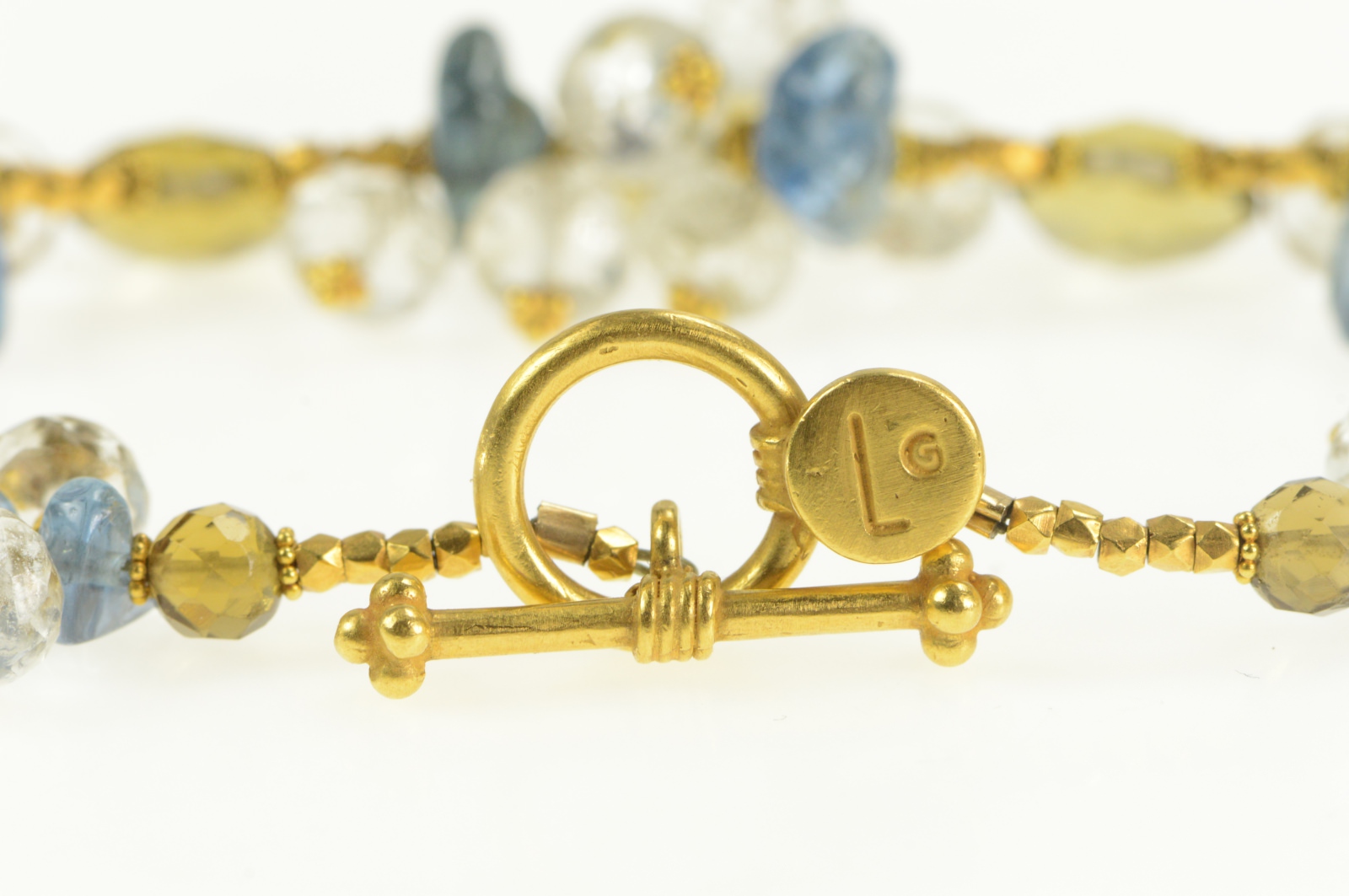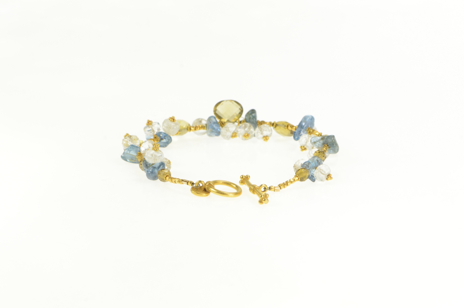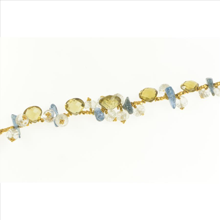 14K Citrine Smoky Quartz Blue Topaz Stone Yellow Gold Bracelet 6.75"