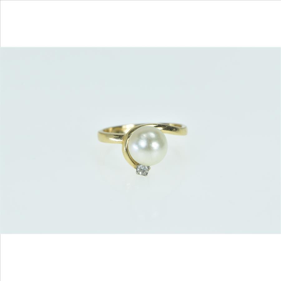 Item:  14K Cultured Pearl Diamond Ornate Curvy Vintage Yellow Gold Ring, Size 5.25
