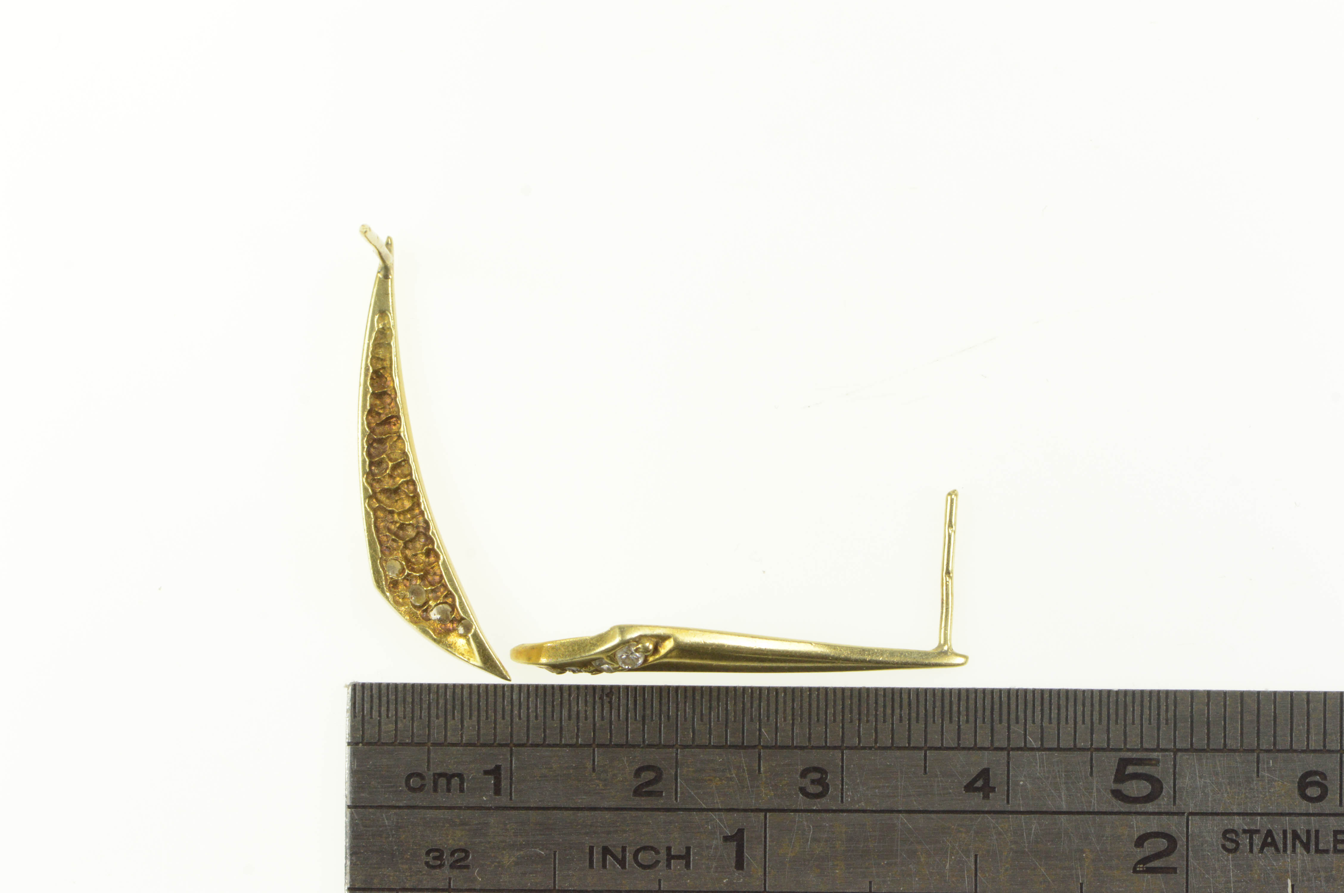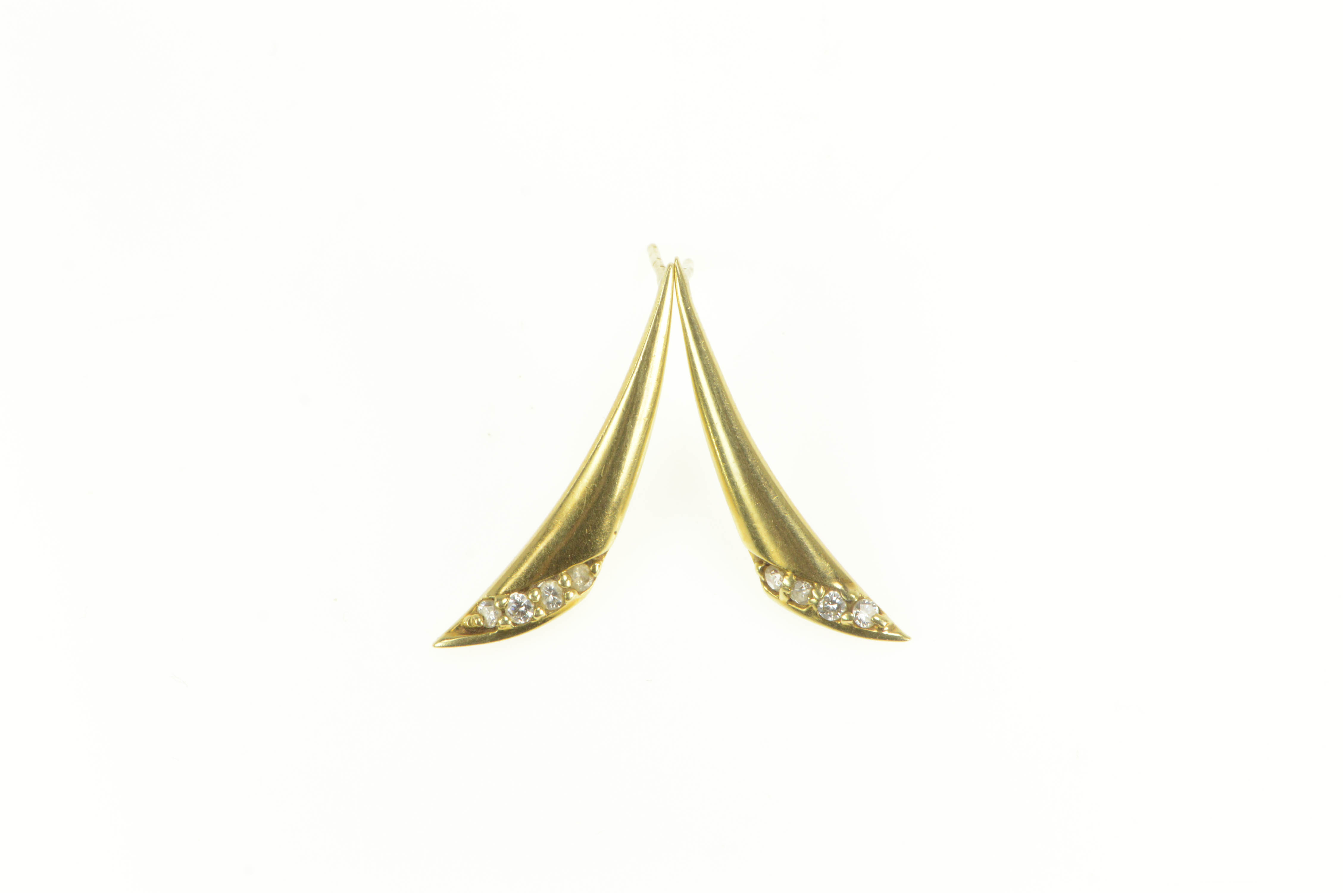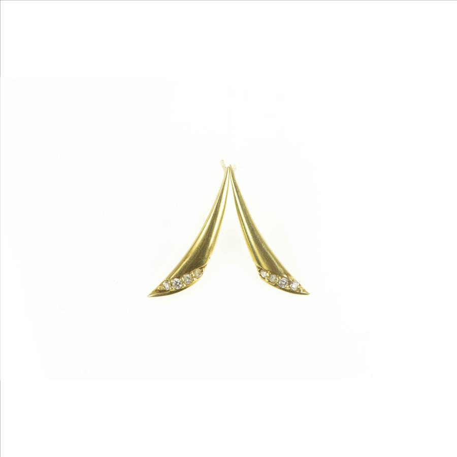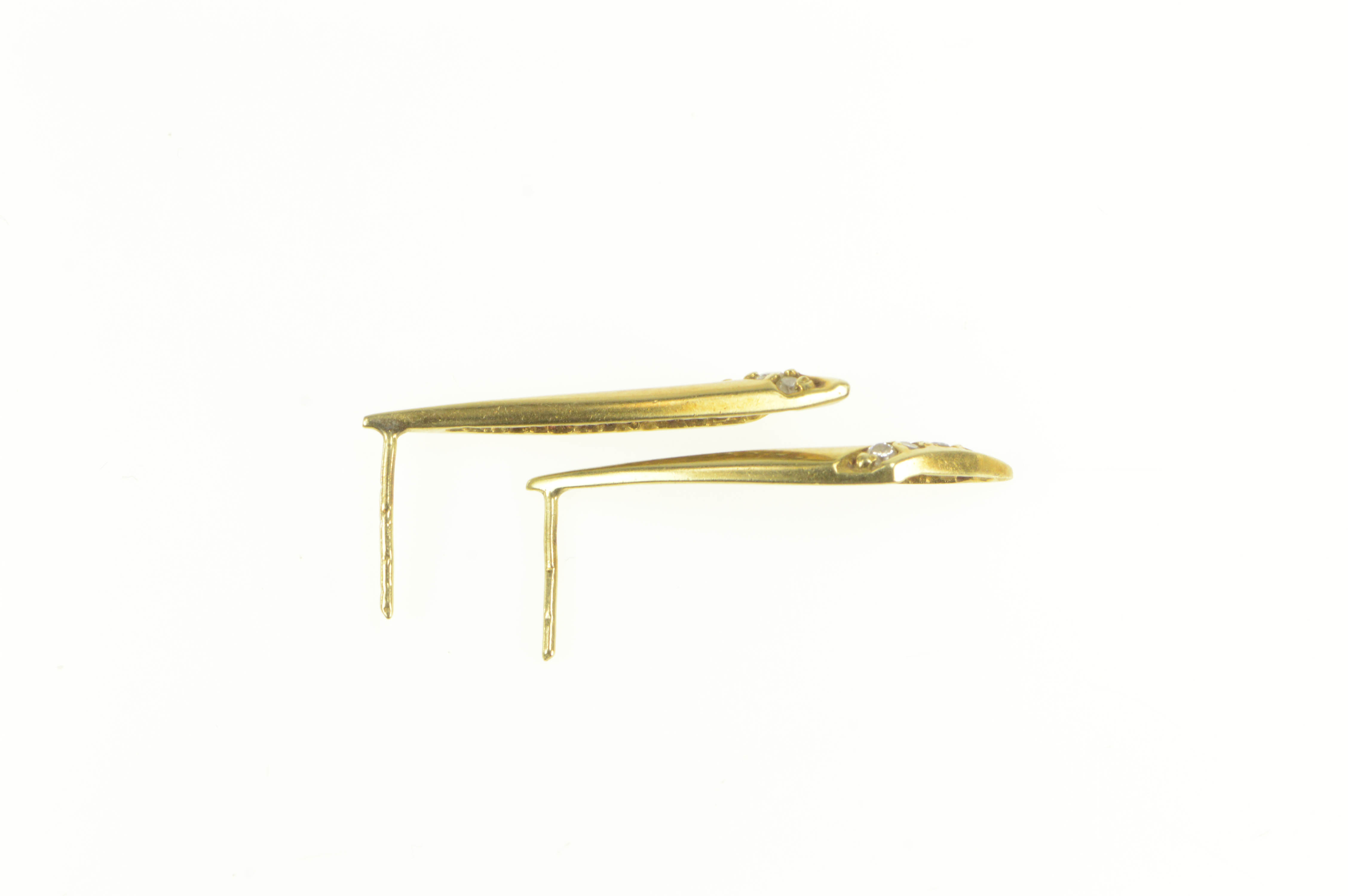 Item:  14K Curved Diamond Drop Dangle Bar Yellow Gold Earrings