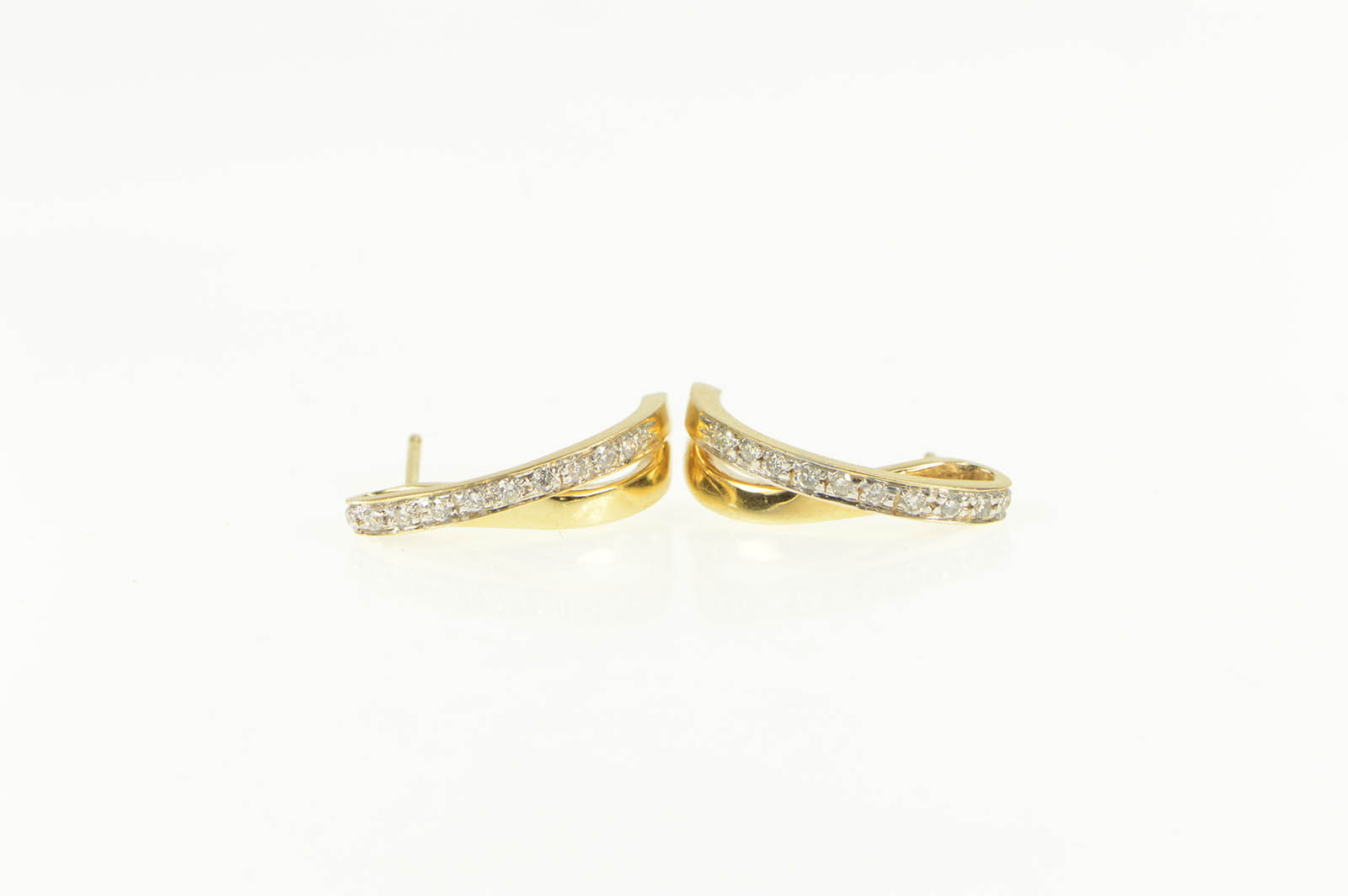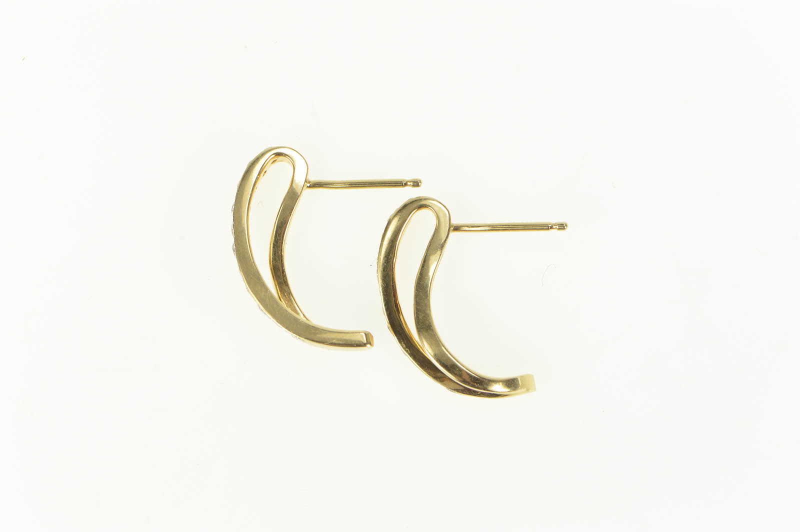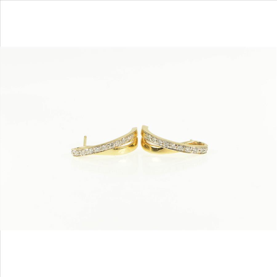 14K Diamond Curved Loop Bar Semi Hoop Fashion Yellow Gold Earrings