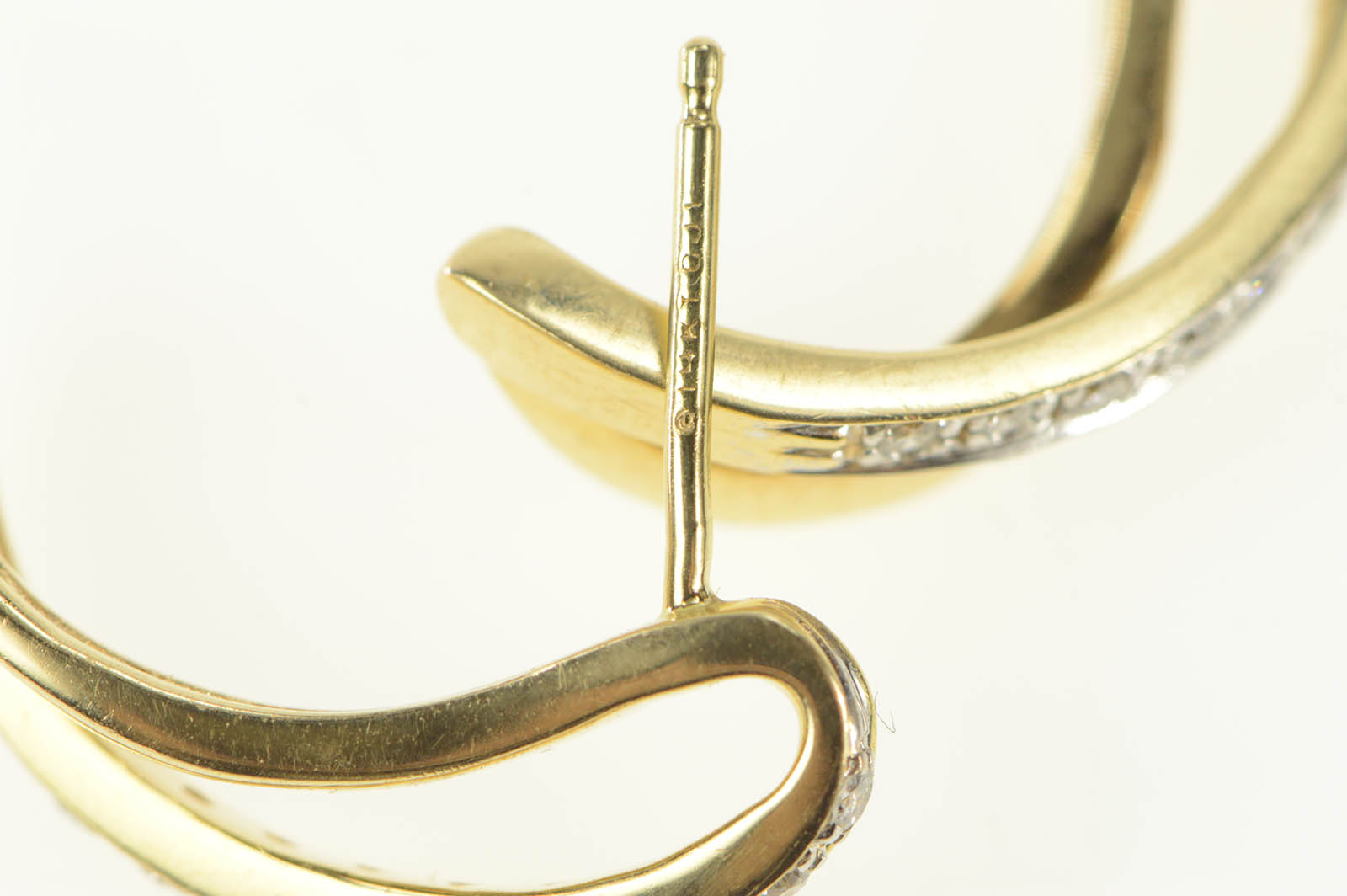 Item:  14K Diamond Curved Loop Bar Semi Hoop Fashion Yellow Gold Earrings