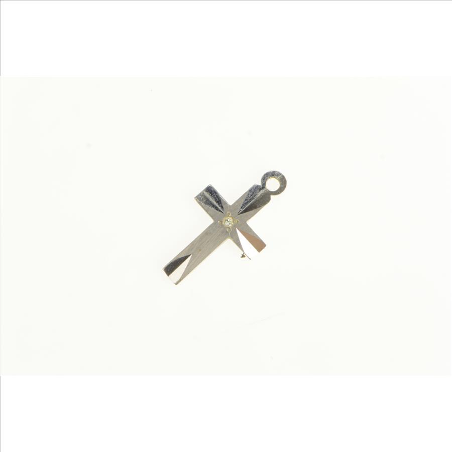 14K Diamond Cut Cross Christian Faith Symbol White Gold Charm/Pendant
