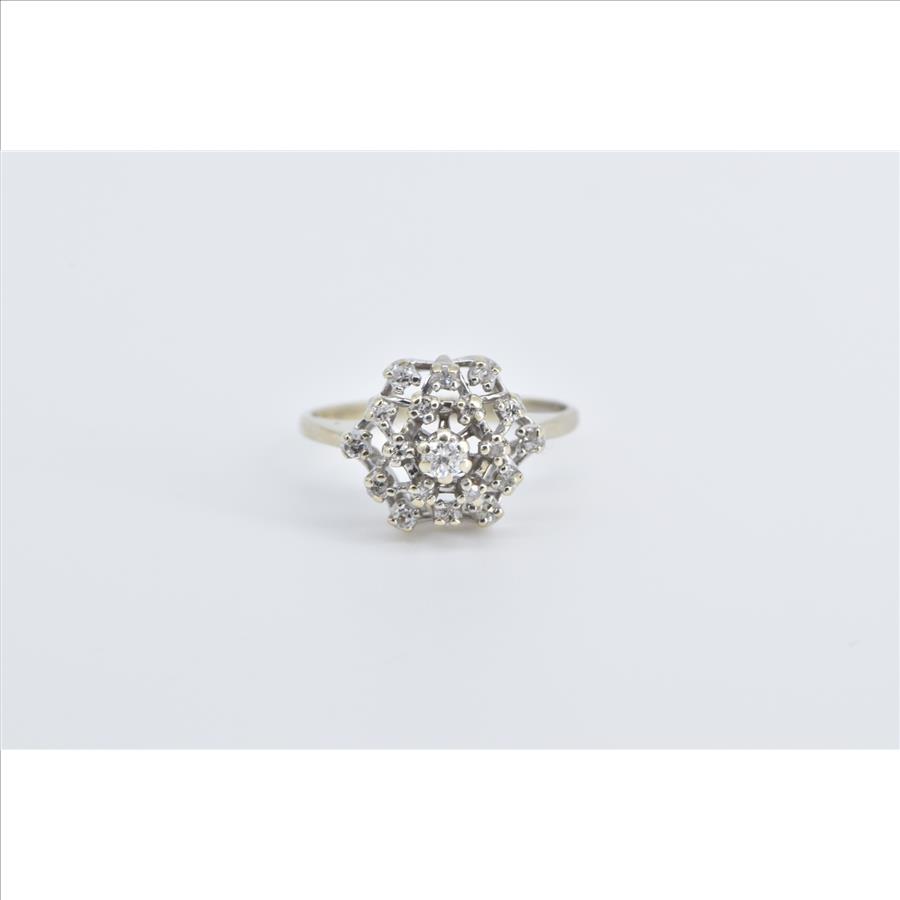Item:  14K Diamond Domed Vintage Cluster Statement White Gold Ring, Size 5.5