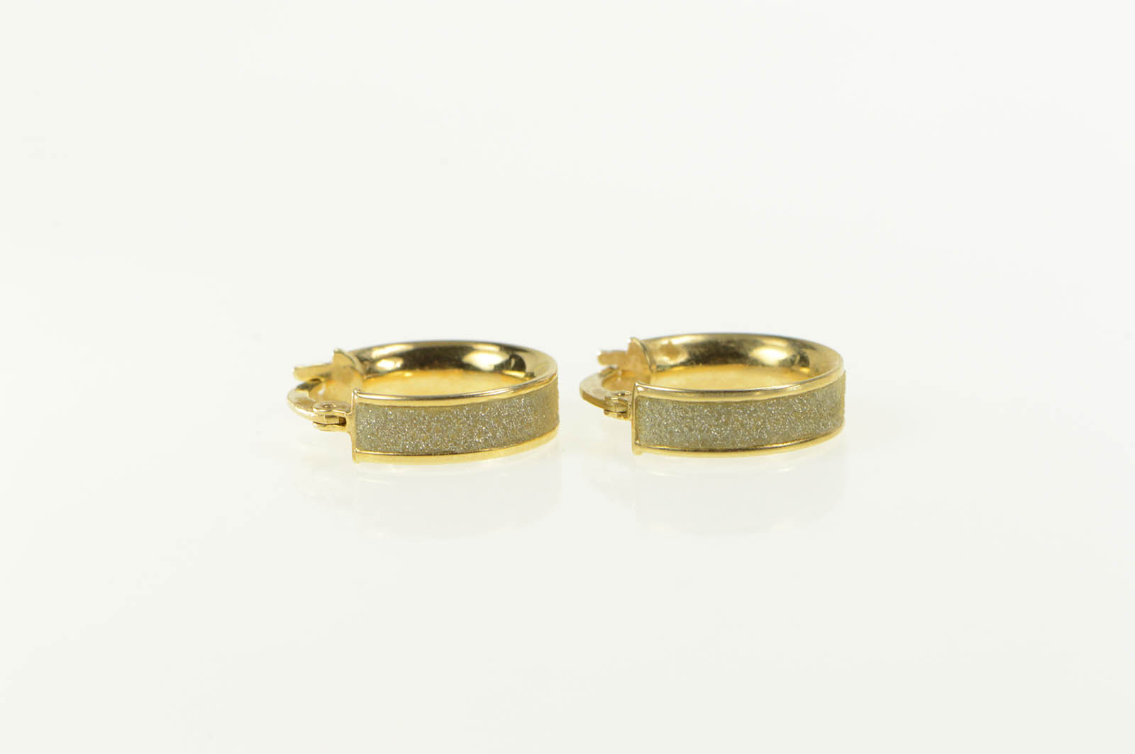 14K Diamond Dust Textured 13.3mm Hoop Yellow Gold Earrings