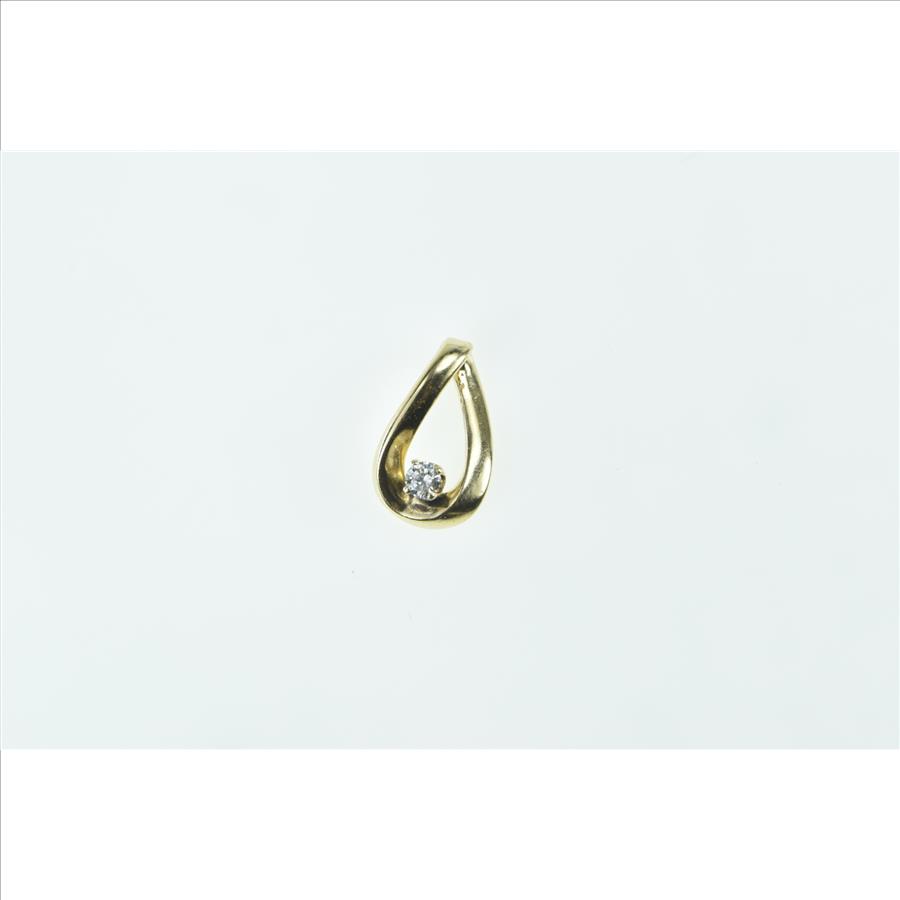 14K Diamond Inset Tear Drop Loop Vintage Yellow Gold Pendant