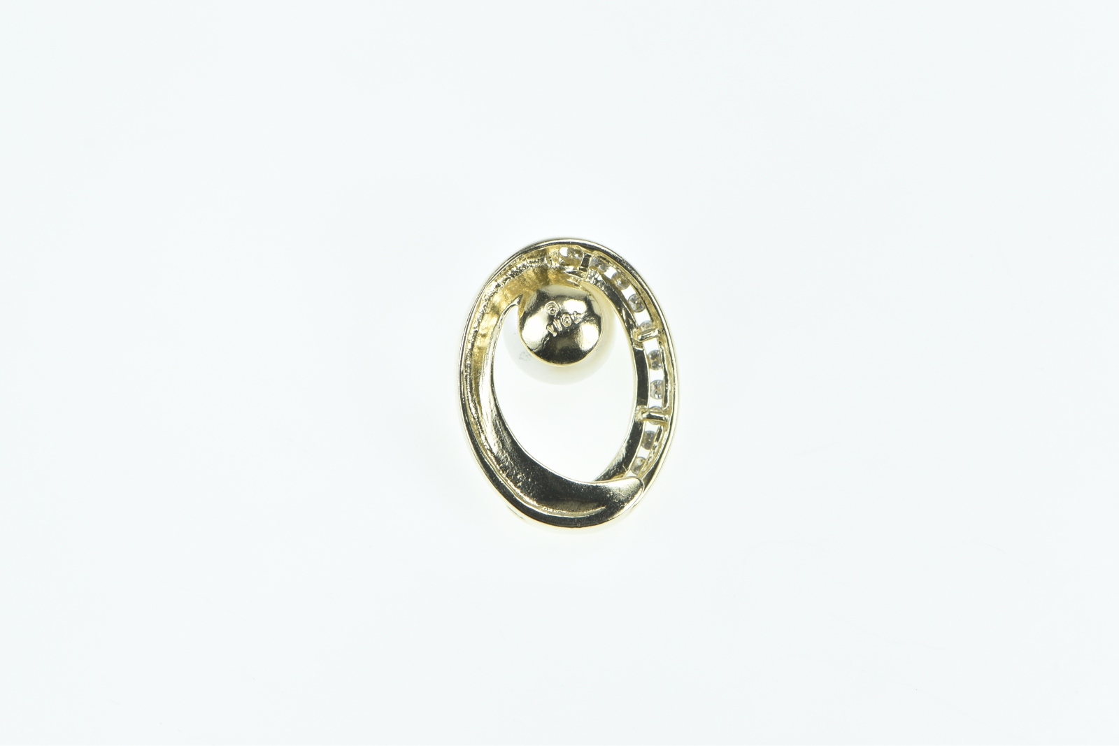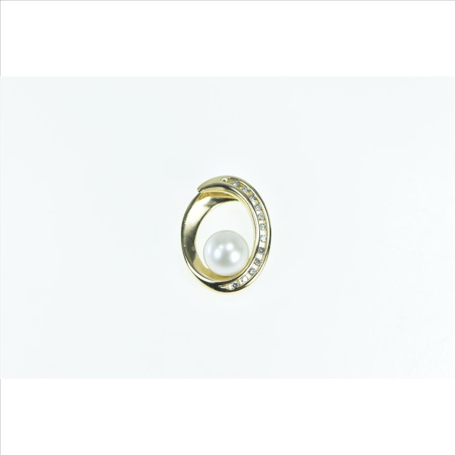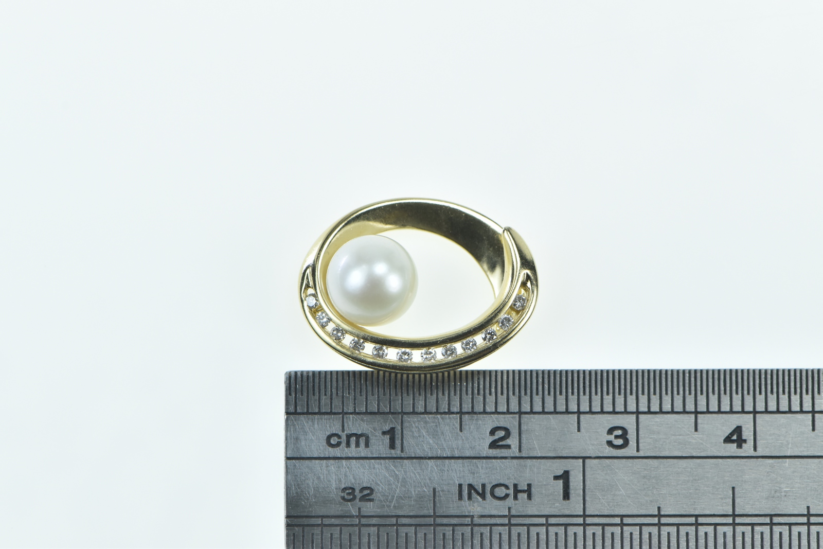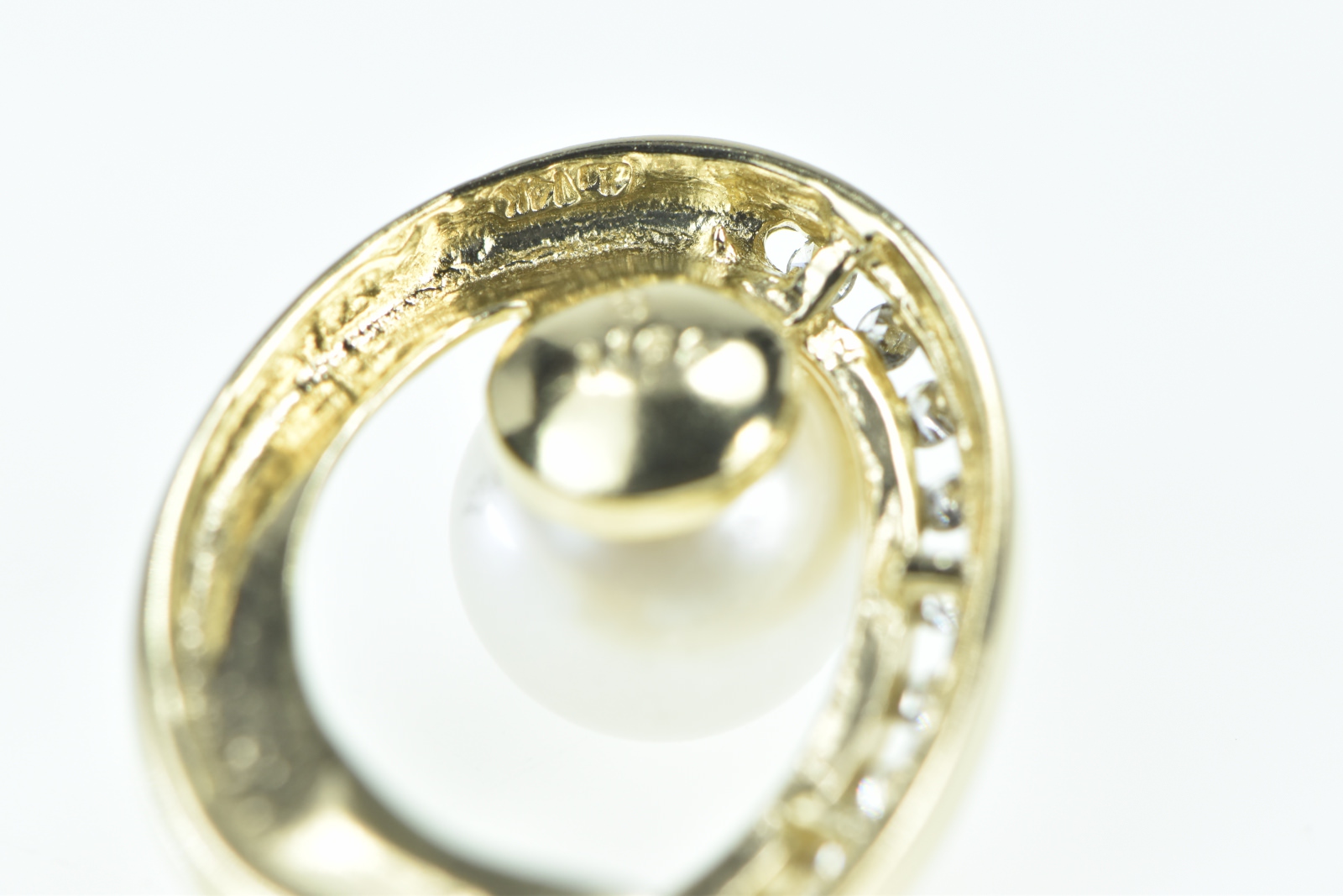 14K Diamond Oval 7.8mm Pearl Loop Statement Yellow Gold Pendant