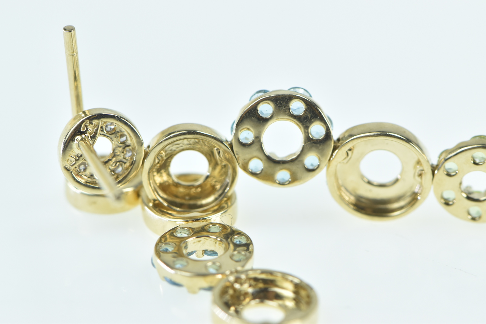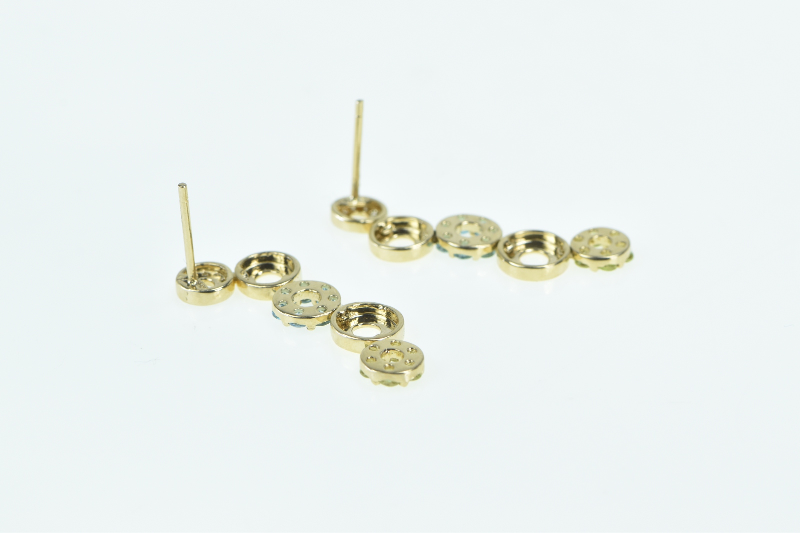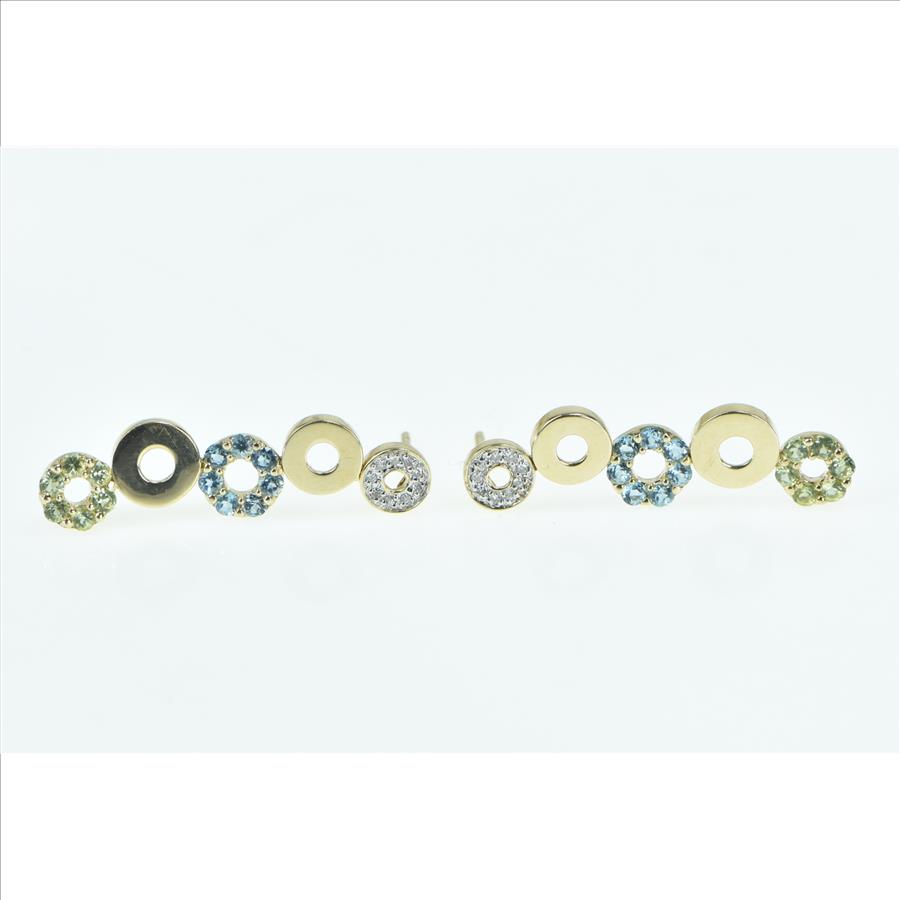 Item:  14K Diamond Peridot Blue Topaz Circle Dangle Yellow Gold Earrings
