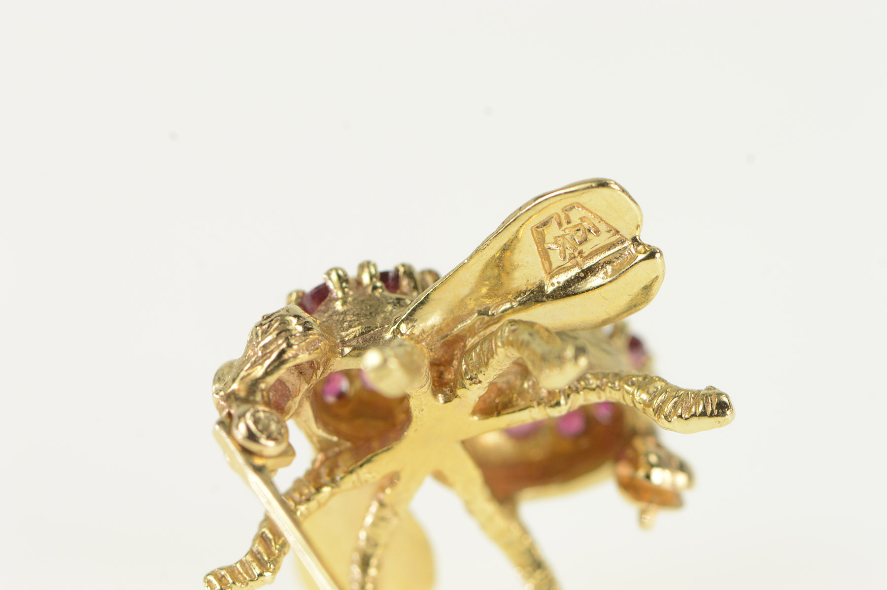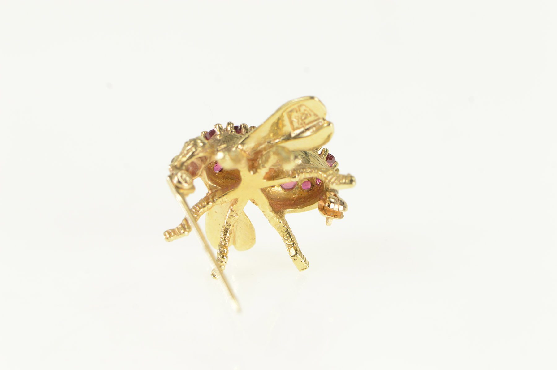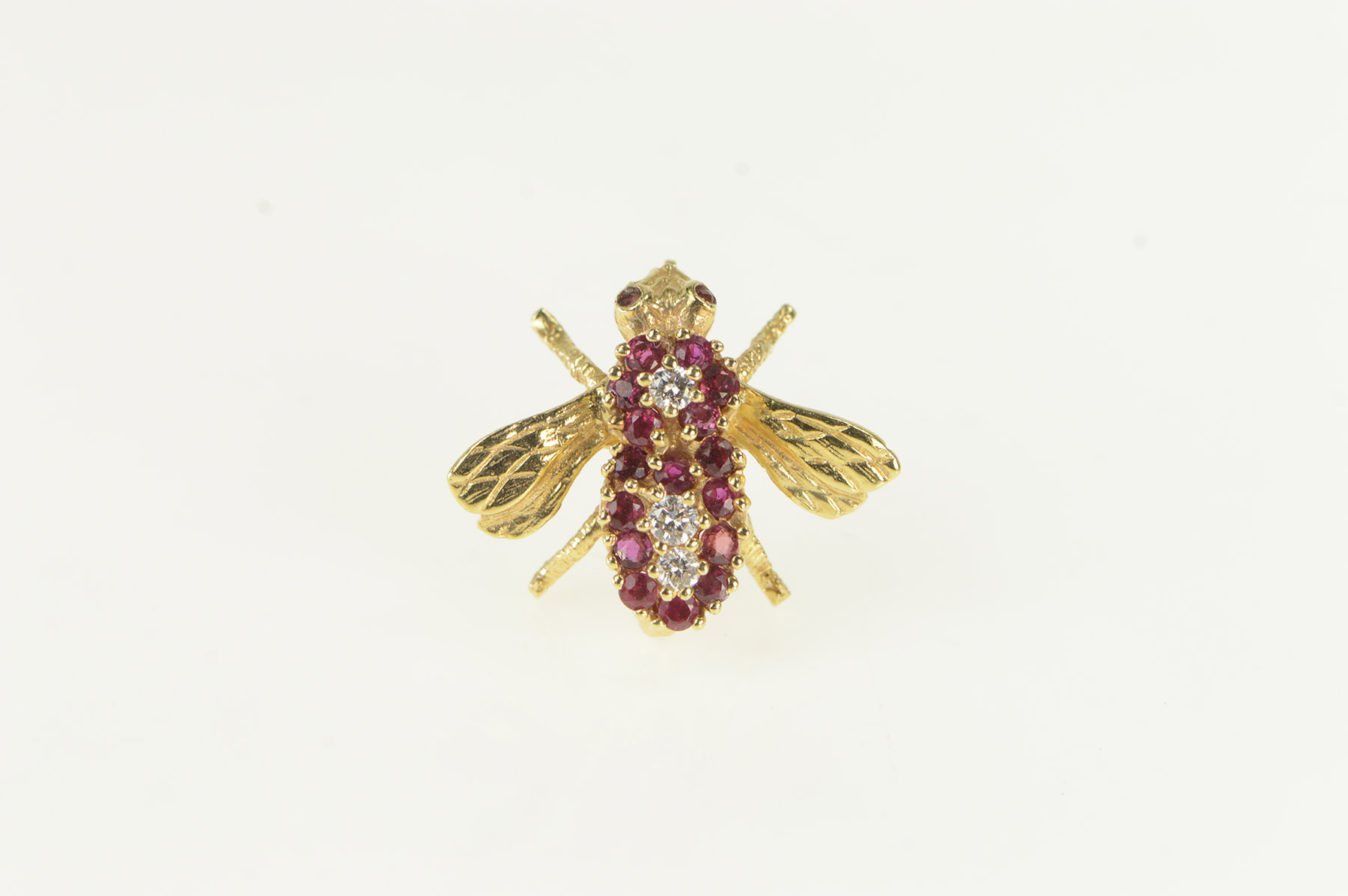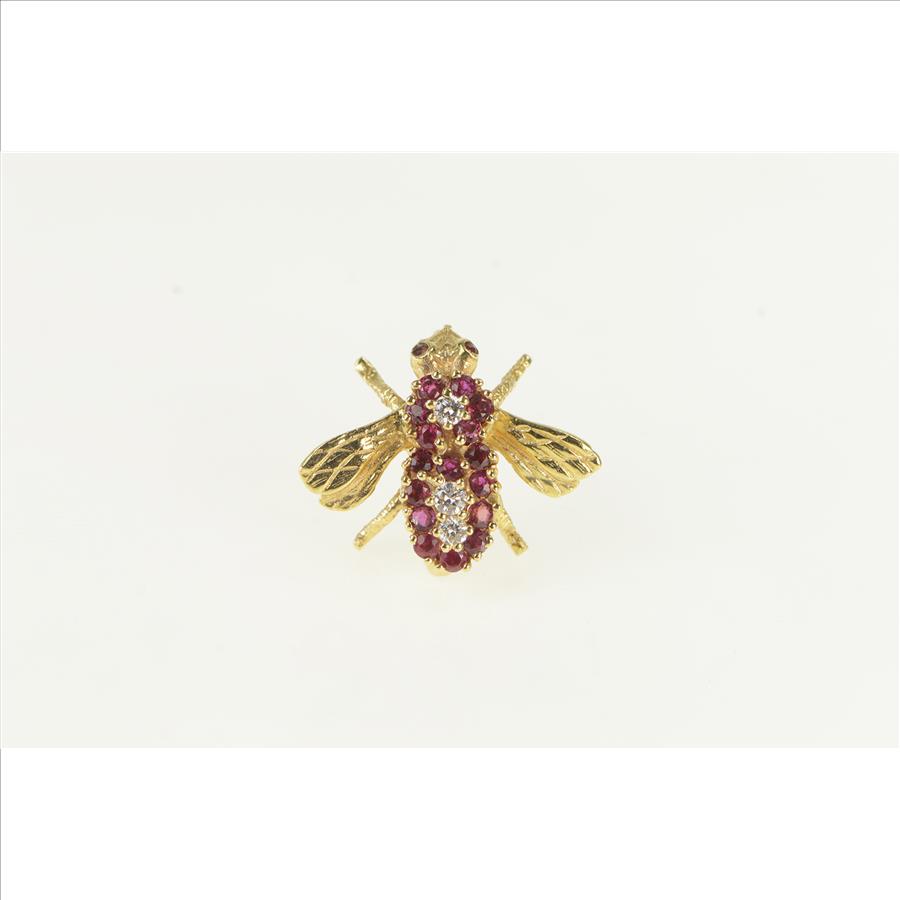 14K Diamond Ruby Honey Bumble Bee Lapel Yellow Gold Pin/Brooch