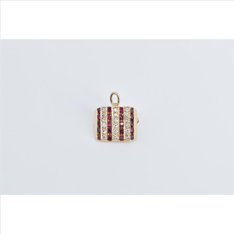 Item:  14K Diamond Ruby Vintage Striped Statement Square Yellow Gold Pendant/Pin